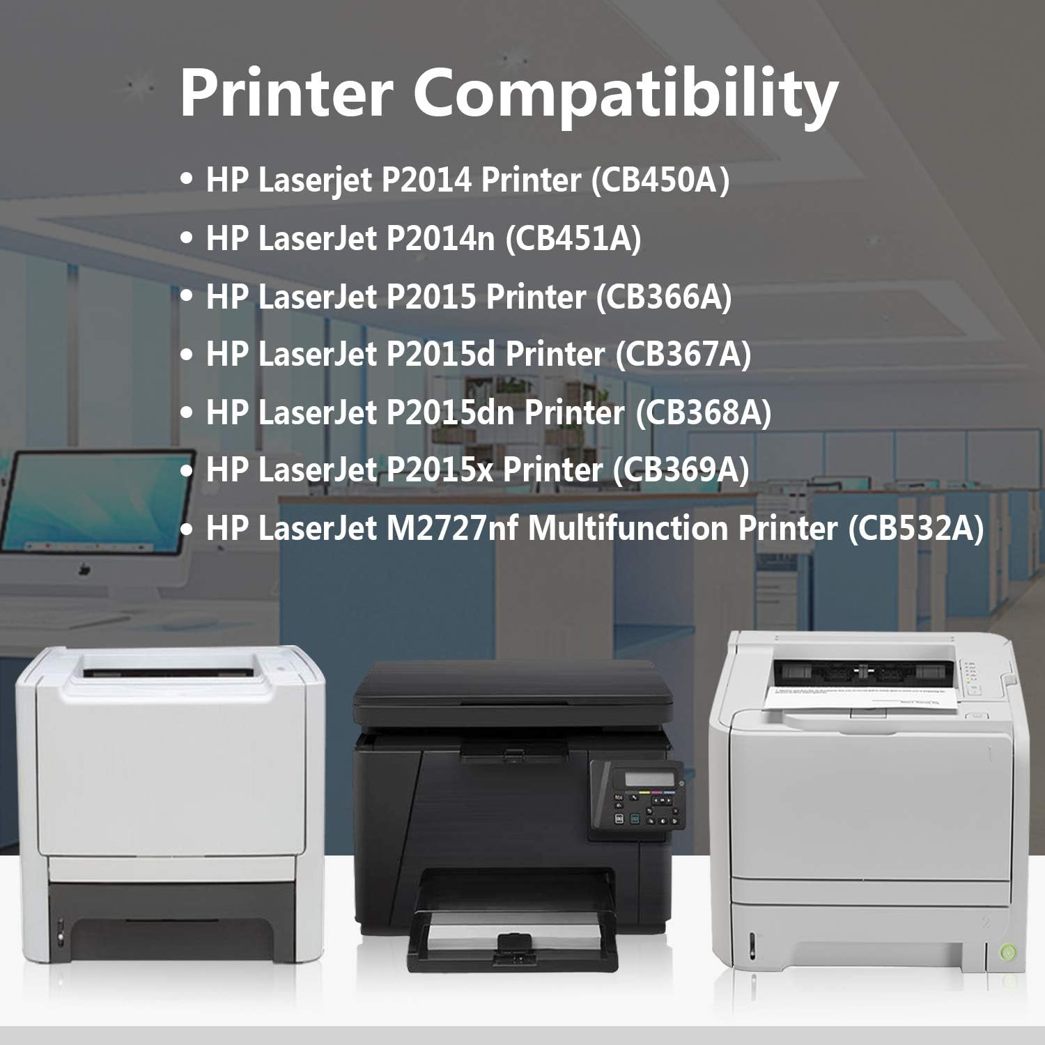 El paquete incluye: 1 cartucho de tóner negro, Rendimiento de páginas: cartucho de tóner negro de 3.500 páginas del 40% más de páginas utilizables, Adecuado para las siguientes impresoras: HP P2014 (CB450A) P2014n (CB451A) P2015 (CB366A) P2015d (CB367A), Compatible con las siguientes impresoras: HP P2015dn (CB368A) P2015x (CB369A) M2727nf (CB532A), Impresiones nítidas y que no se decoloran: utiliza tóner esférico refinado para imprimir texto de calidad láser y fotos realistas, no se decolora durante años, excelente para hospitales, escuelas, gobiernos, empresas comerciales, empresas financieras y más escenarios