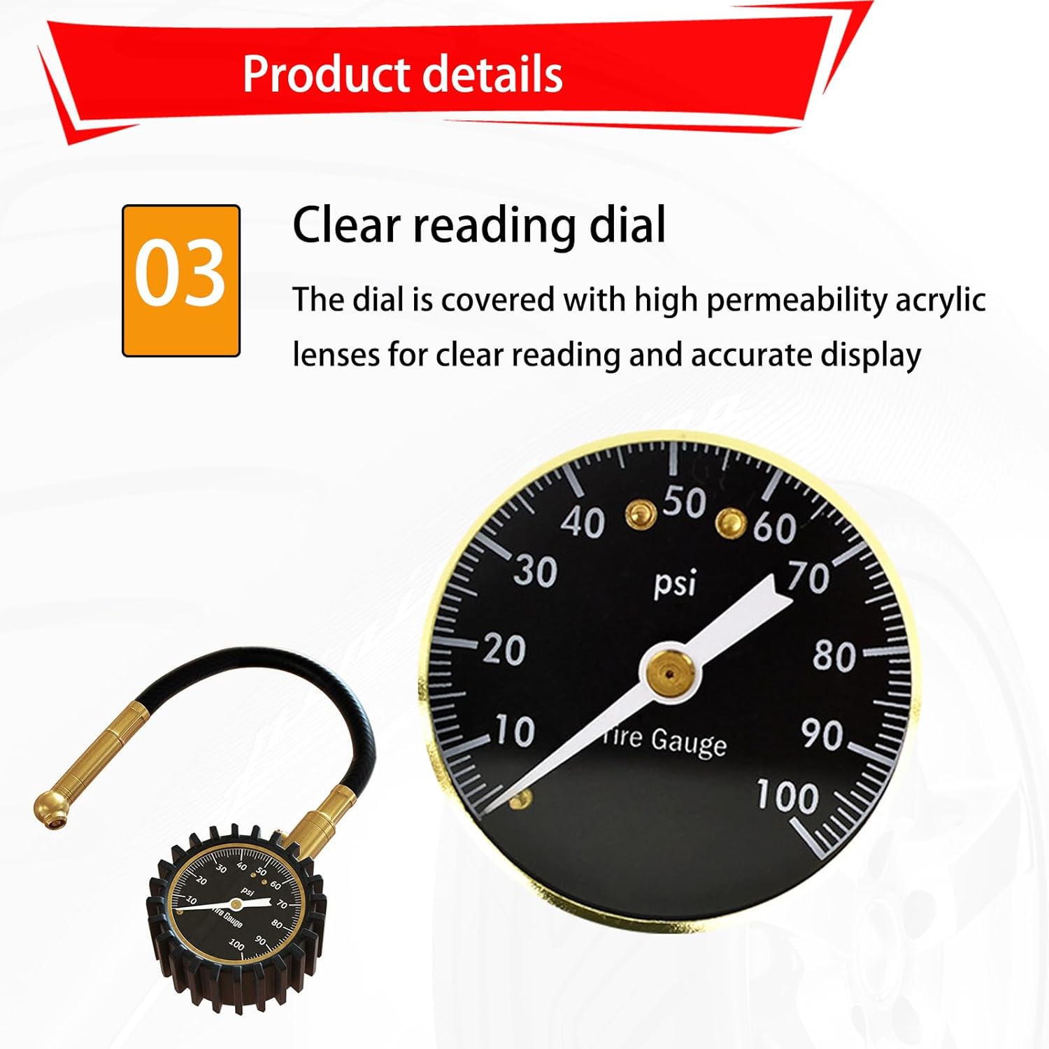 1 medidor de presión de neumáticos de automóvil con esfera redonda, equipo de prueba de neumáticos de vehículos de alta precisión de alta precisión,