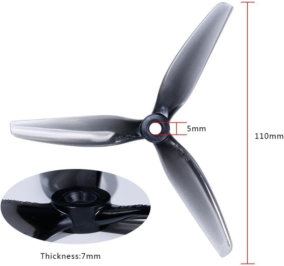 Especificación: Marca: HQDiámetro de la hélice: 5 pulgadas. Paso : 4 cuchillas: 3 Material: Poli carbonato 1 juego = 1 bolsa = 2 pares = 4 unidades