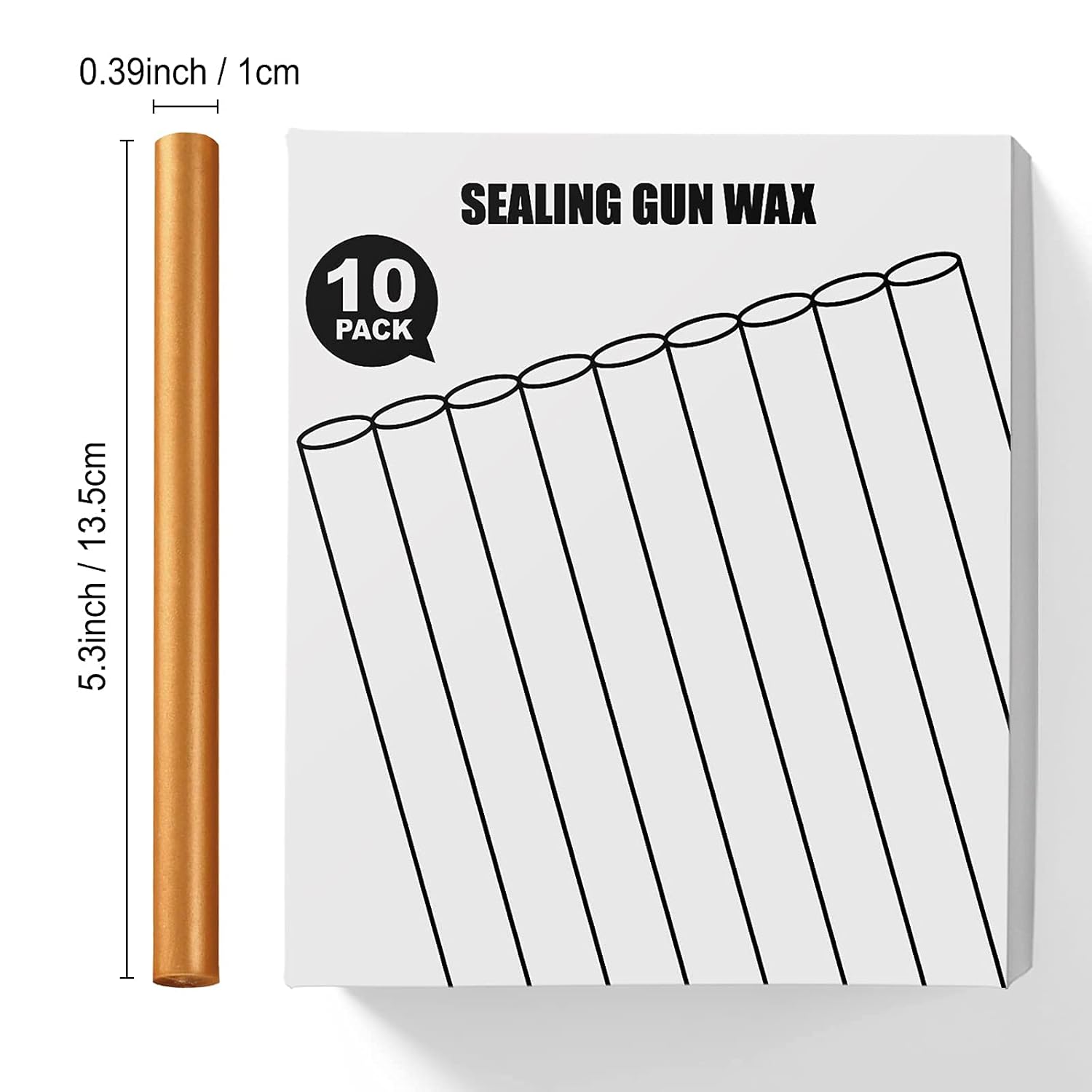 Una variedad de hermosos colores: palitos de cera de sellado de oro emperador, bronce, champán, borgoña, rosa polvorienta, suave y brillante, se utiliza con sello de cera para añadir una elegancia retro única a tu invitación., Producción perfecta de sellado de cera: prepara una bolsa de hielo o agua helada, enfría rápidamente el sello de cera de sellado entre dos usos, obtendrás un hermoso y perfecto sello de cera después de usarlo., Fácil de usar: Utilizar con una pistola de pegamento estándar de 0.44 pulgadas de baja temperatura, sin humo, inodoro, fácil de derretir. La pistola de pegamento se mantiene a baja temperatura y puede completar rápidamente docenas de sellos de cera. Es limpio y eficaz. No son pistolas de pegamento de tamaño pequeño., Amplias aplicaciones: la cera de sellado se utiliza para hacer invitaciones de boda y fiesta, cartas de Navidad, letras retro, sobres, tarjetas, manualidades, sellos de regalo, sellos de vino y otros proyectos de manualidades. También es un regalo para tu familia y amigos., El paquete incluye: 10 barras de cera doradas, el tamaño es: 0.43 pulgadas de diámetro x 5.5 pulgadas de longitud, cada barra de cera puede hacer alrededor de 12-15 sellos de cera, un paquete puede hacer 120-150, si tienes alguna pregunta con los palitos de cera, por favor ponte en contacto con nosotros, lo resolveremos en 12 horas.