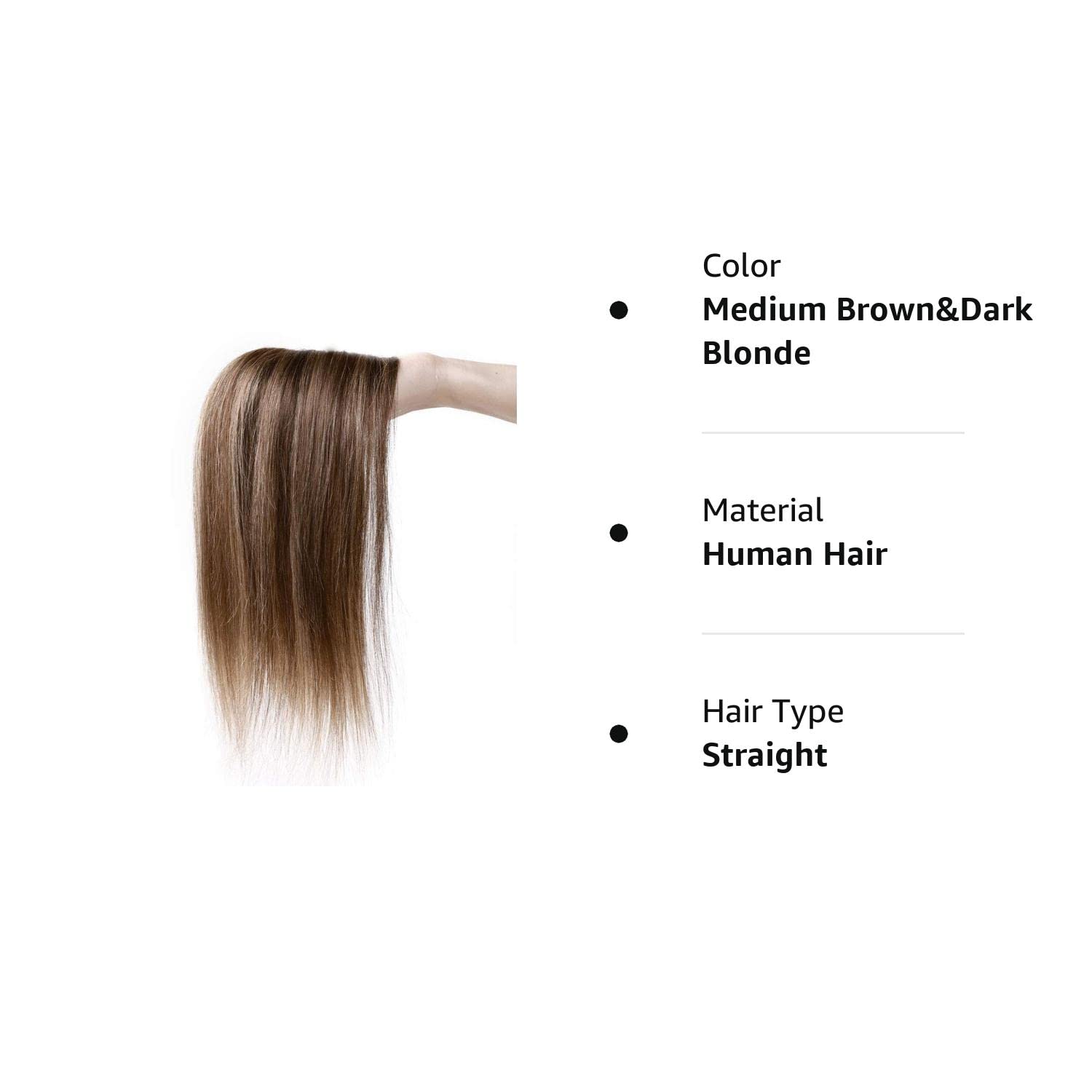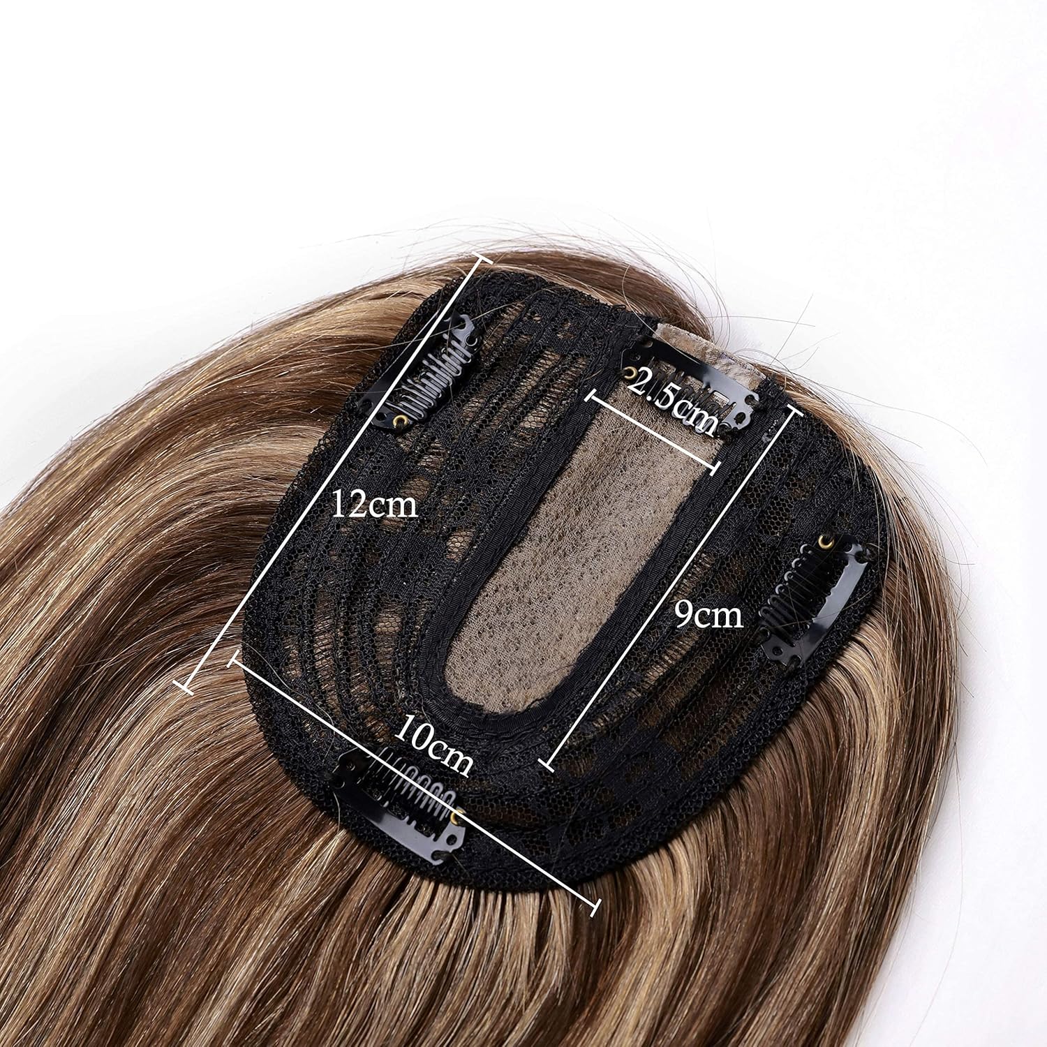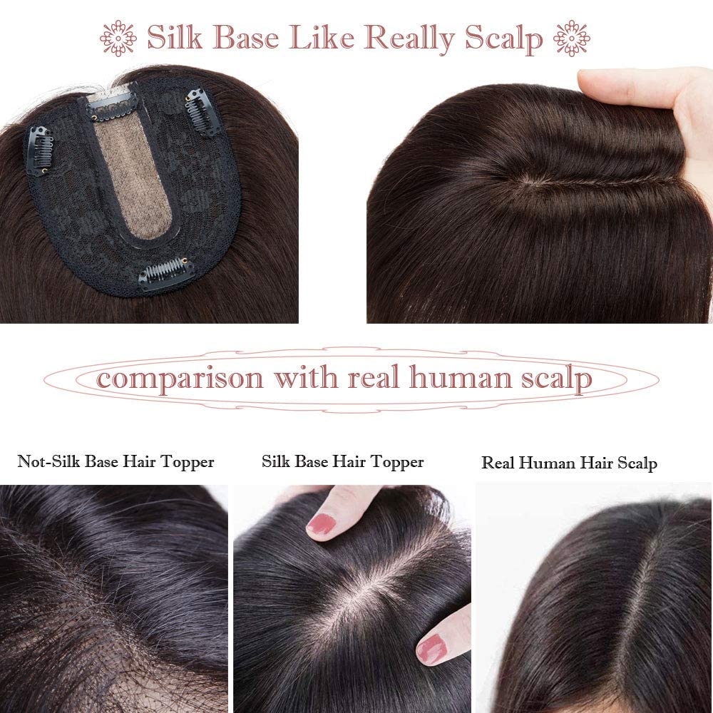❤ 100% cabello humano Remy: puedes peinar, lavar, alisar, hacer permanente, teñir o rizar como tu propio cabello. Sin enredos, sin desprendimiento. Pero recuerda que el peinado frecuente puede causar puntas secas o divididas. Usar acondicionador suave para el cabello puede prolongar el uso de extensiones., ❤ 120 % de densidad de seda base superior: en comparación con el 100% de densidad, nuestro cubrecolchón con clip tiene una línea de cabello más densa, cabello superior más grueso y la apariencia más cercana con el cuero cabelludo humano real, es muy natural y nadie encontrará tu secreto. Tamaño de la base: (3.9 x 4.7 pulgadas aproximadamente)., ❤ Parte superior para el cabello con clip: tenemos cuatro clips antideslizantes, que pueden hacerte más seguro y cómodo de llevar sin importar las ocasiones. Solo toma unos segundos para usarlo y se mezclará perfectamente con tu propio cabello. Pero no es muy adecuado para personas que quieren hacer una cubierta gruesa., Varias funciones: adecuado para mujeres con cabello delgado, canas, cabello blanco o mala calidad de cabello en la parte superior de la cabeza, puede ser parte media o lateral e incluso darte una línea de cabello perfecta. Pero si tienes muy poco cabello en la parte superior, nuestros clips pueden no quedarse bien., Ten en cuenta que teniendo en cuenta la luz y las diferentes pantallas, el color exacto puede ser ligeramente diferente al mostrado en la imagen. Puede proporcionar sus fotos y le daremos consejos.
