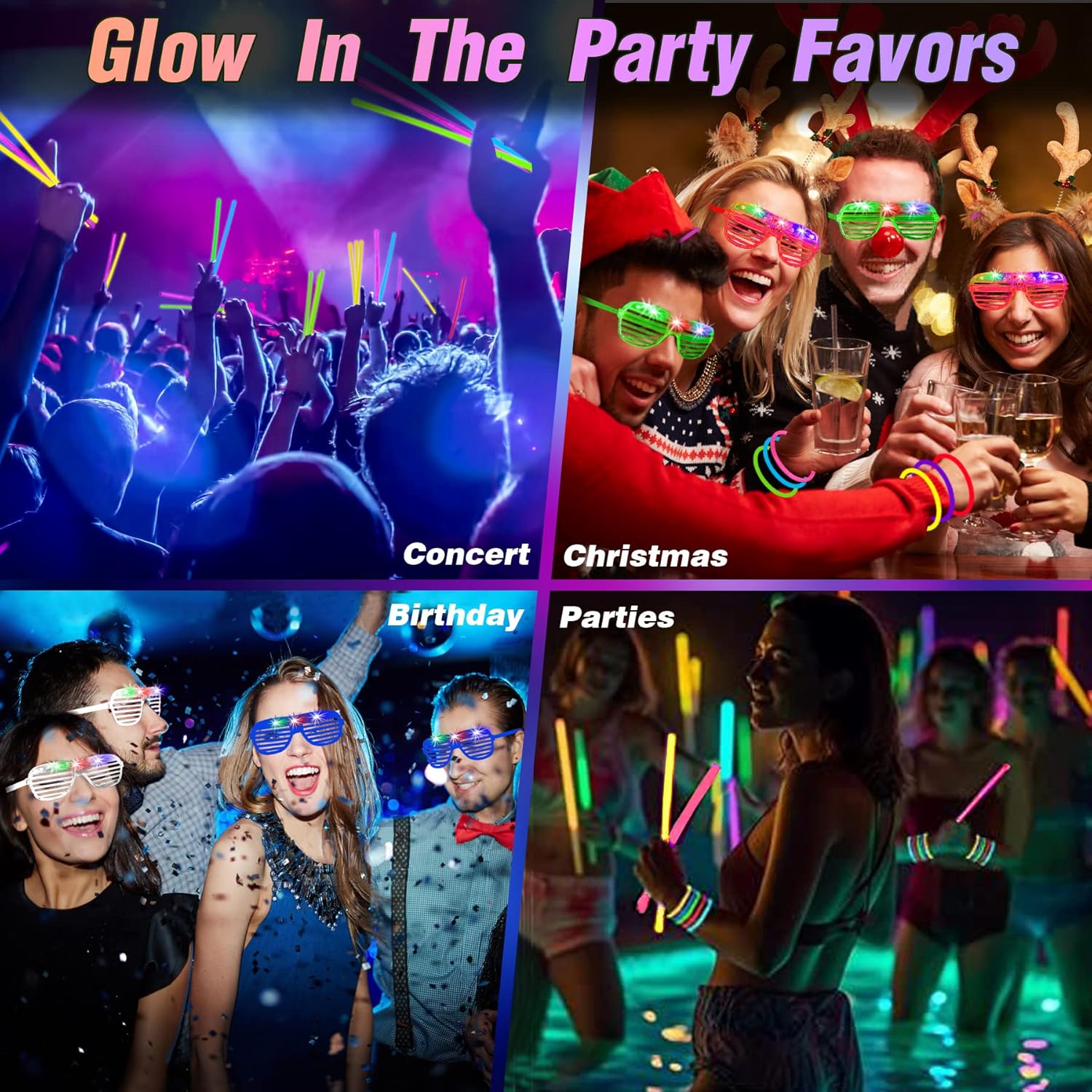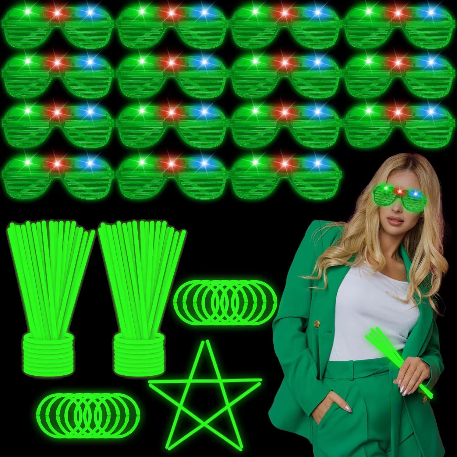115 piezas de suministros de fiesta que brillan en la oscuridad, 100 collares verdes brillantes a granel, 15 lentes LED para el 4 de julio, juguete
