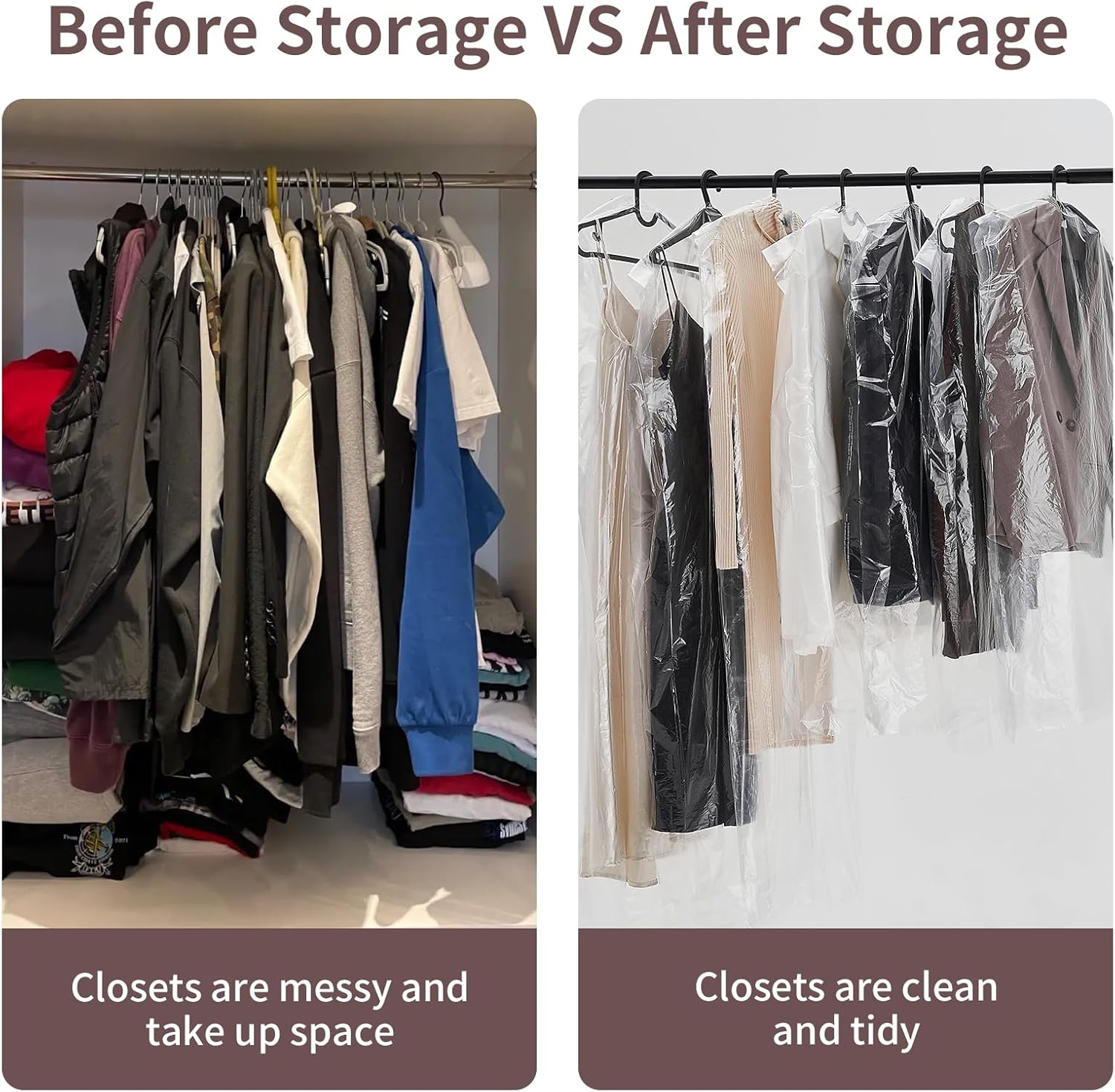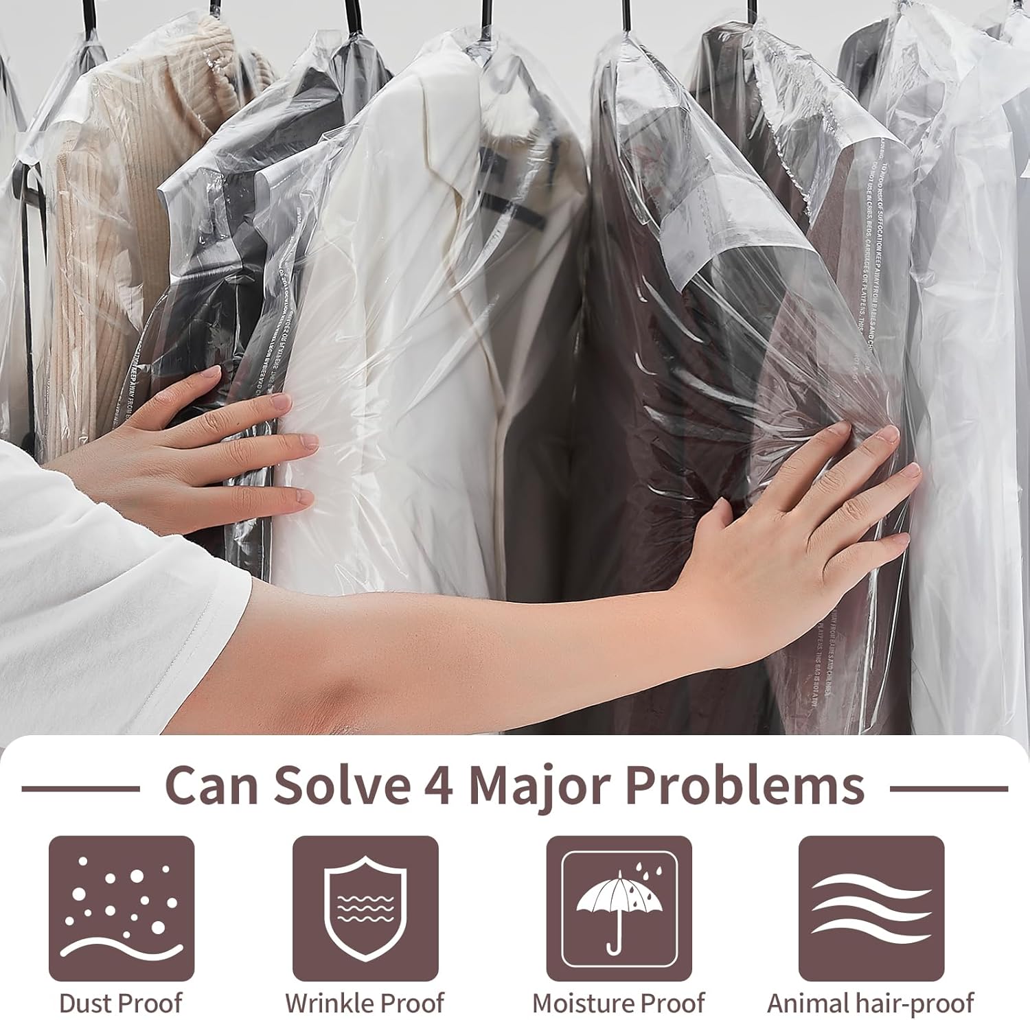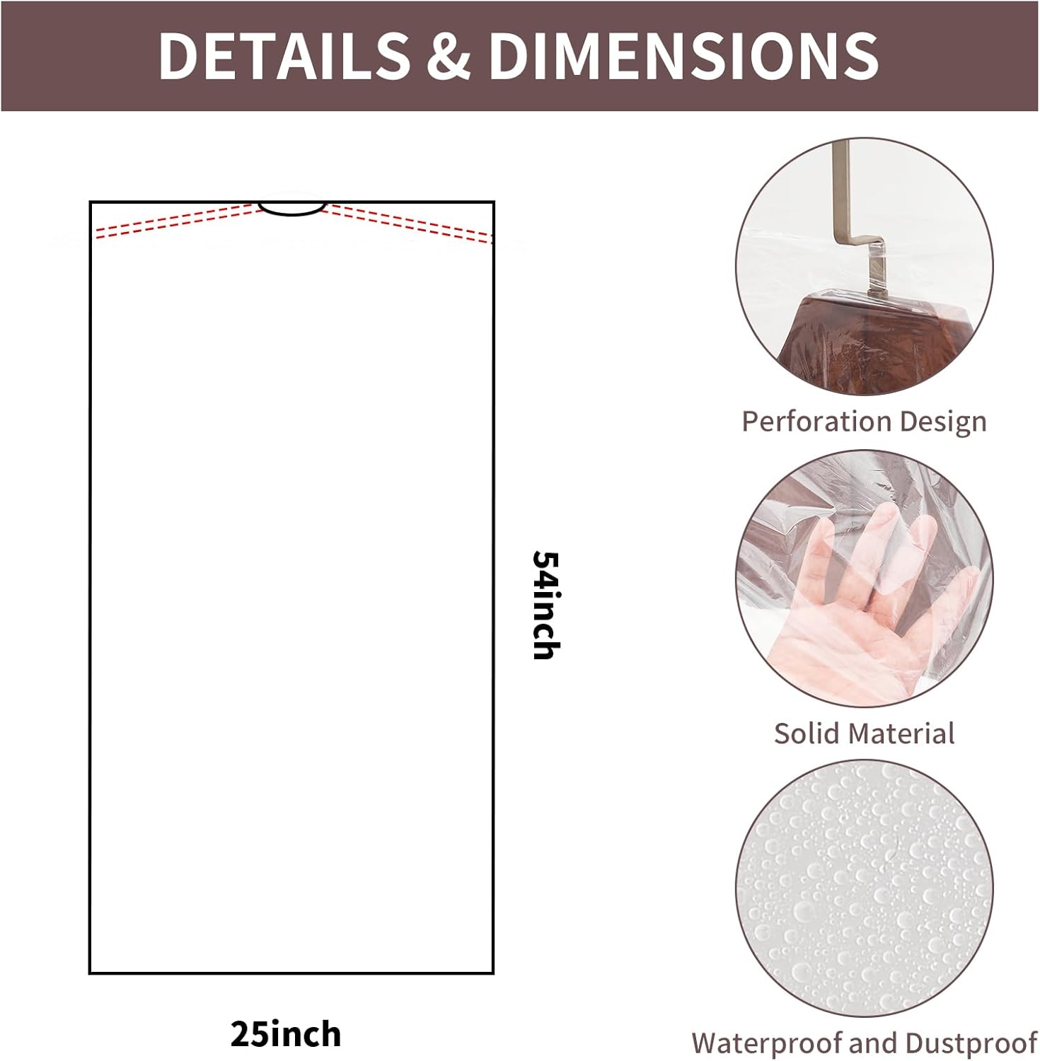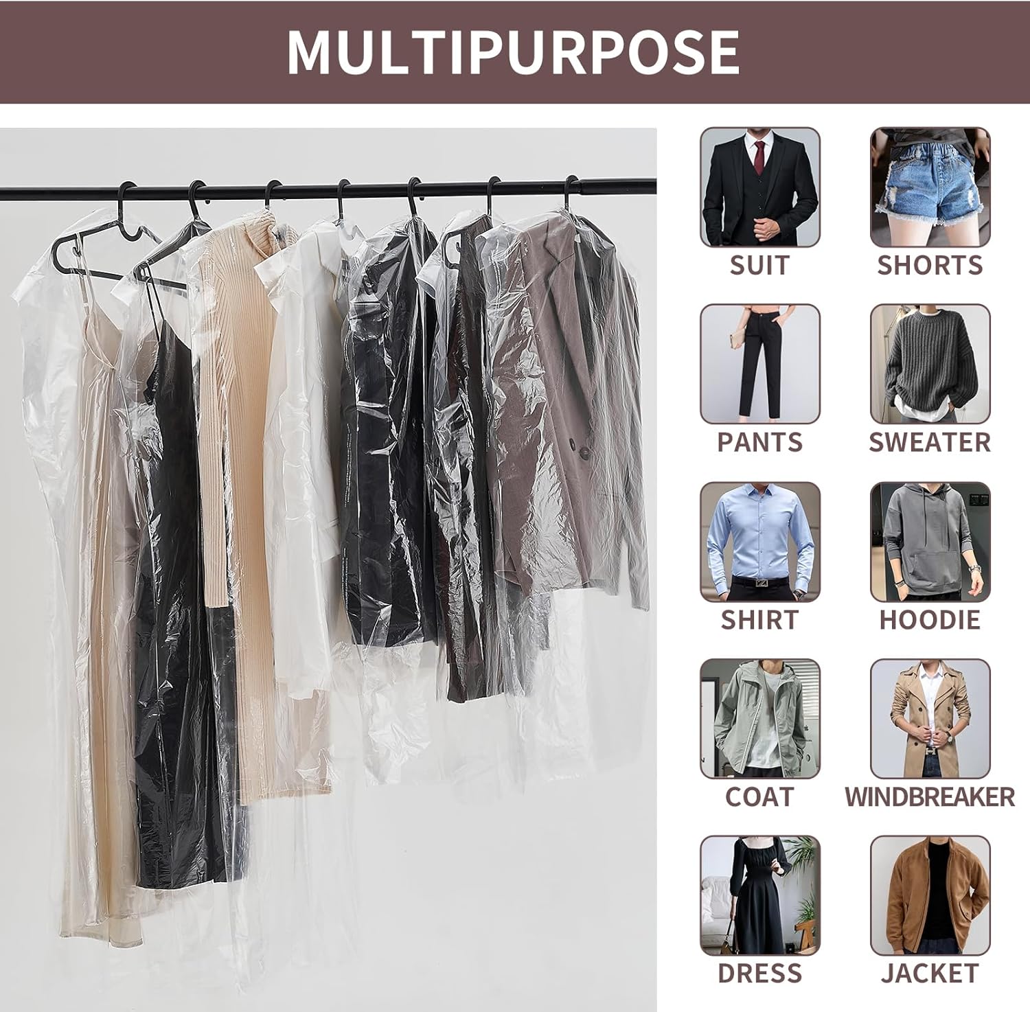 150 bolsas de limpieza en seco de 54 pulgadas para ropa de plástico transparente, bolsas de ropa tipo TopType para colgar ropa, bolsa de limpieza en