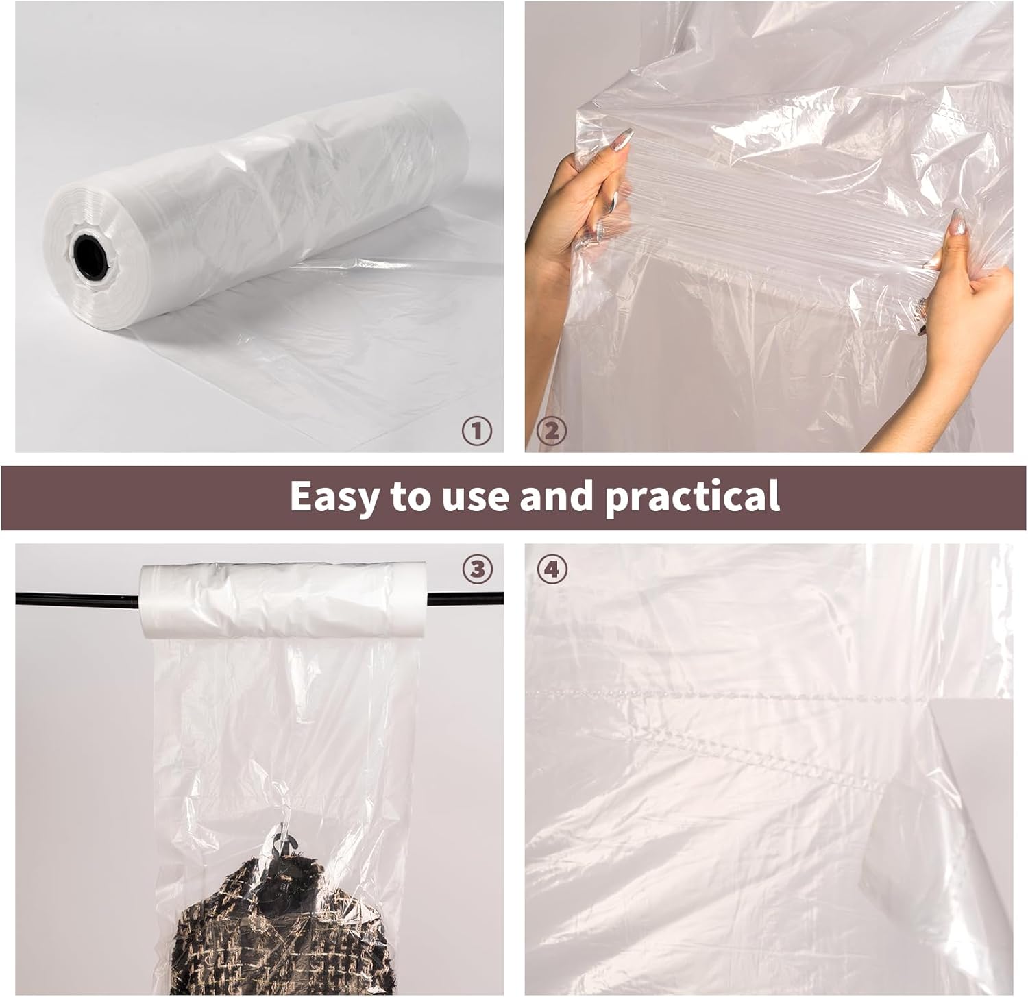 Tamaño: las bolsas de plástico transparente miden 25 x 54 pulgadas (largo x ancho) y recibirás 150 bolsas transparentes para colgar ropa. Las bolsas de plástico para ropa están empaquetadas en rollos para un fácil almacenamiento y uso, Diseño transparente: las bolsas de plástico para ropa son transparentes, ligeras y suaves, por lo que es fácil organizar tu ropa y llevarla contigo., Uso en todas partes: embalaje en rollo para un fácil almacenamiento. Las bolsas de limpieza en seco protegen la ropa de la suciedad, el polvo y los olores mientras se almacena o viaja. Tienen muchas aplicaciones, incluso en armarios, tintorerías, tiendas de ropa, hoteles y más., Material grueso: las bolsas de ropa para colgar ropa están hechas de material seguro y respetuoso con el medio ambiente, que es impermeable, a prueba de suciedad y polvo. Previenen el pelo y las arrugas de las mascotas, manteniendo la ropa limpia, fresca y ordenada., 【Después de la venta】Si tienes algún problema con tu compra, ponte en contacto con nosotros primero y te daremos una solución satisfactoria.