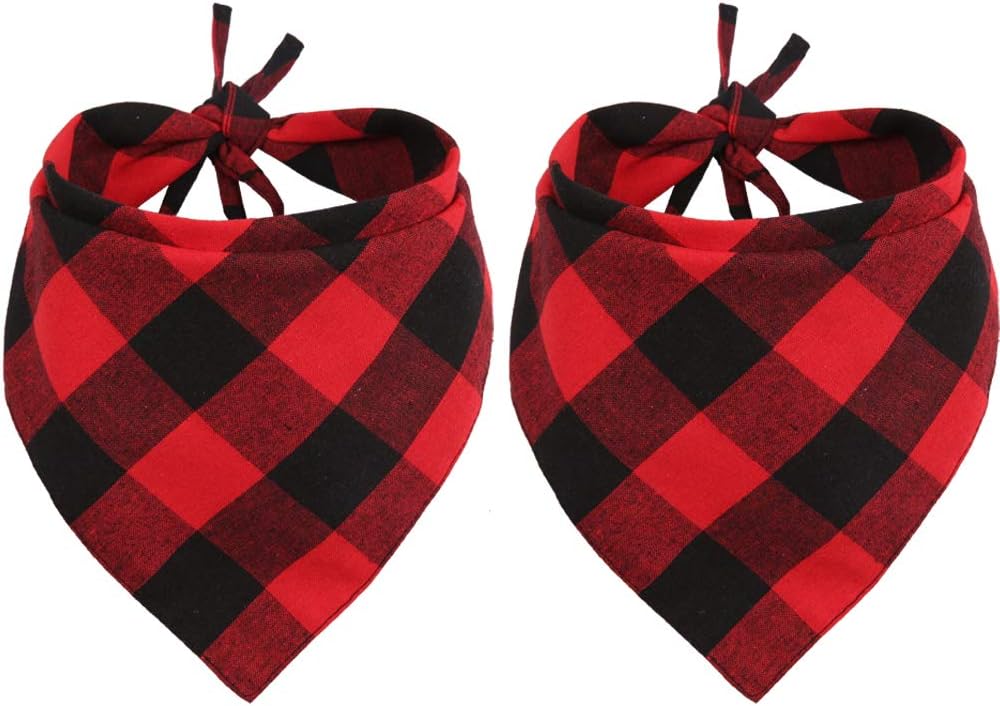 2 unidades de bandana para perro de Navidad para mascotas, bufanda triangular, accesorios baberos, rojo y negro, a cuadros, grande