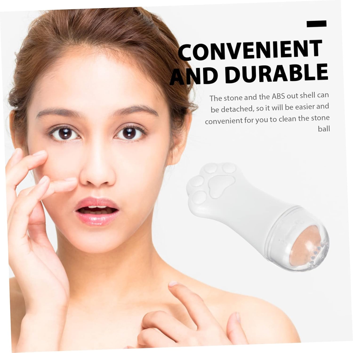 Bola de rodillo de masaje: el y el ABS fuera de la cáscara se pueden quitar, por lo que será más fácil y conveniente para usted limpiar la pelota., Masajeador facial con control de aceite: es ligero y portátil, perfecto para llevarlo en tu bolso en citas, sobre la marcha, en la oficina, en casa, etc., Rodillo absorbente de aceite de maquillaje: la piedra volcánica natural puede lograr los efectos de absorber aceite y agua para mantener tu cara limpia., Masajear piedra volcánica: es una práctica herramienta de absorción de aceite facial que te ayudará a mantener la belleza durante todo el día., Palo de piedra de volcán facial: es un regalo perfecto para tu novia o esposa a la que siempre le gusta maquillarse, y les gustará.