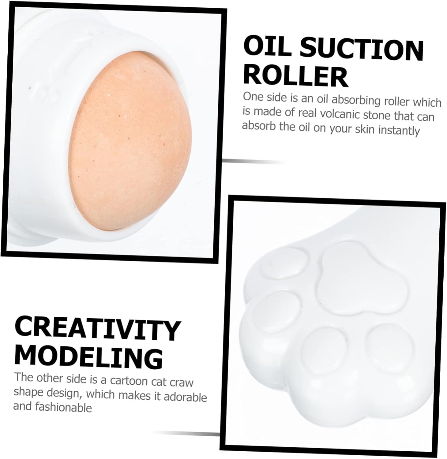 Bola de rodillo de masaje: el y el ABS fuera de la cáscara se pueden quitar, por lo que será más fácil y conveniente para usted limpiar la pelota. Masajeador facial con control de aceite: es ligero y portátil, perfecto para llevarlo en tu bolso en citas, sobre la marcha, en la oficina, en casa, etc. Rodillo absorbente de aceite de maquillaje: la piedra volcánica natural puede lograr los efectos de absorber aceite y agua para mantener tu cara limpia. Masajear piedra volcánica: es una práctica herramienta de absorción de aceite facial que te ayudará a mantener la belleza durante todo el día. Palo de piedra de volcán facial: es un regalo perfecto para tu novia o esposa a la que siempre le gusta maquillarse, y les gustará.