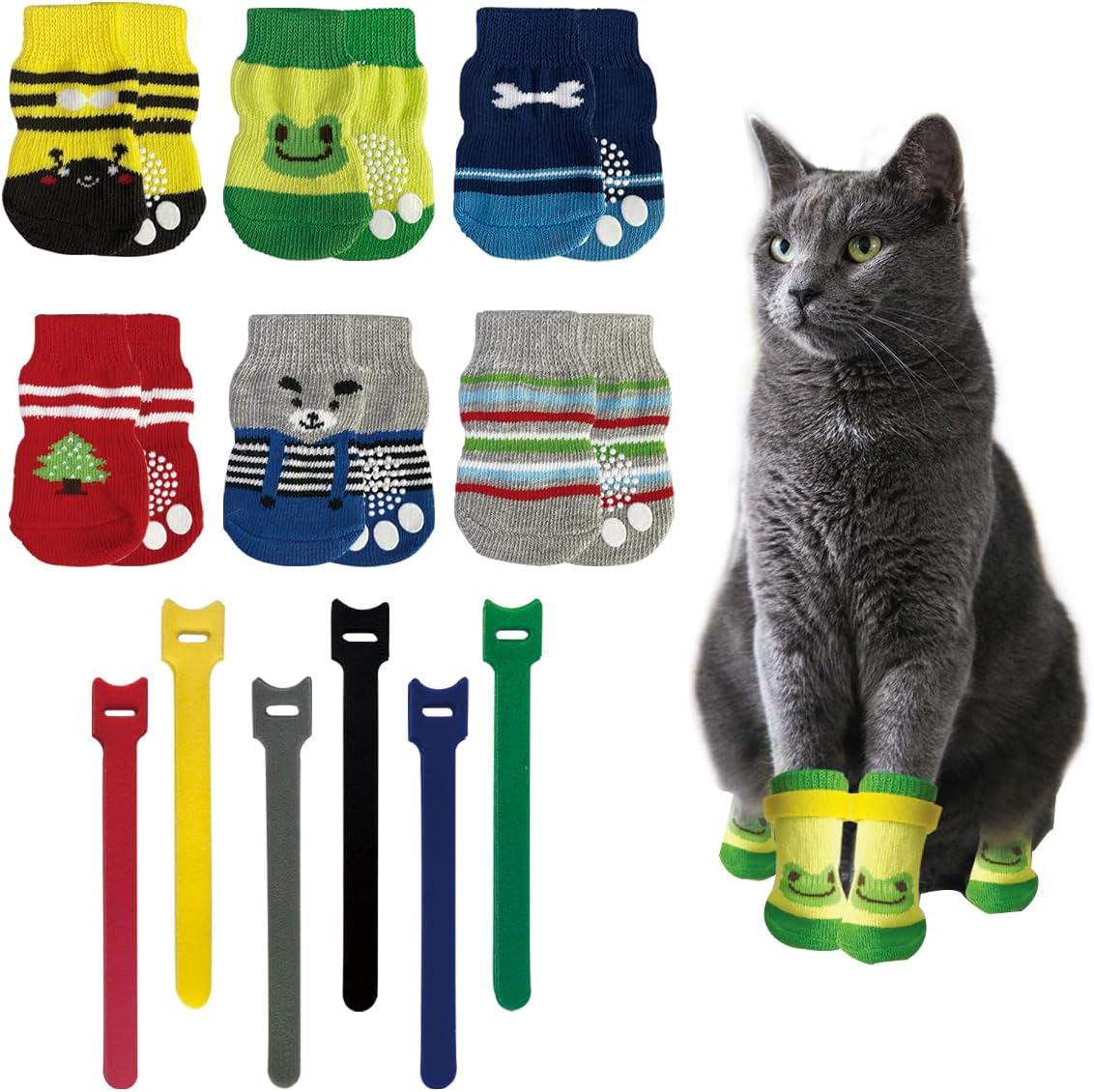 24 guantes para gatos para evitar arañazos, botines antideslizantes con bonitos diseños, zapatos de gato multicolor con pestañas adhesivas, ideales