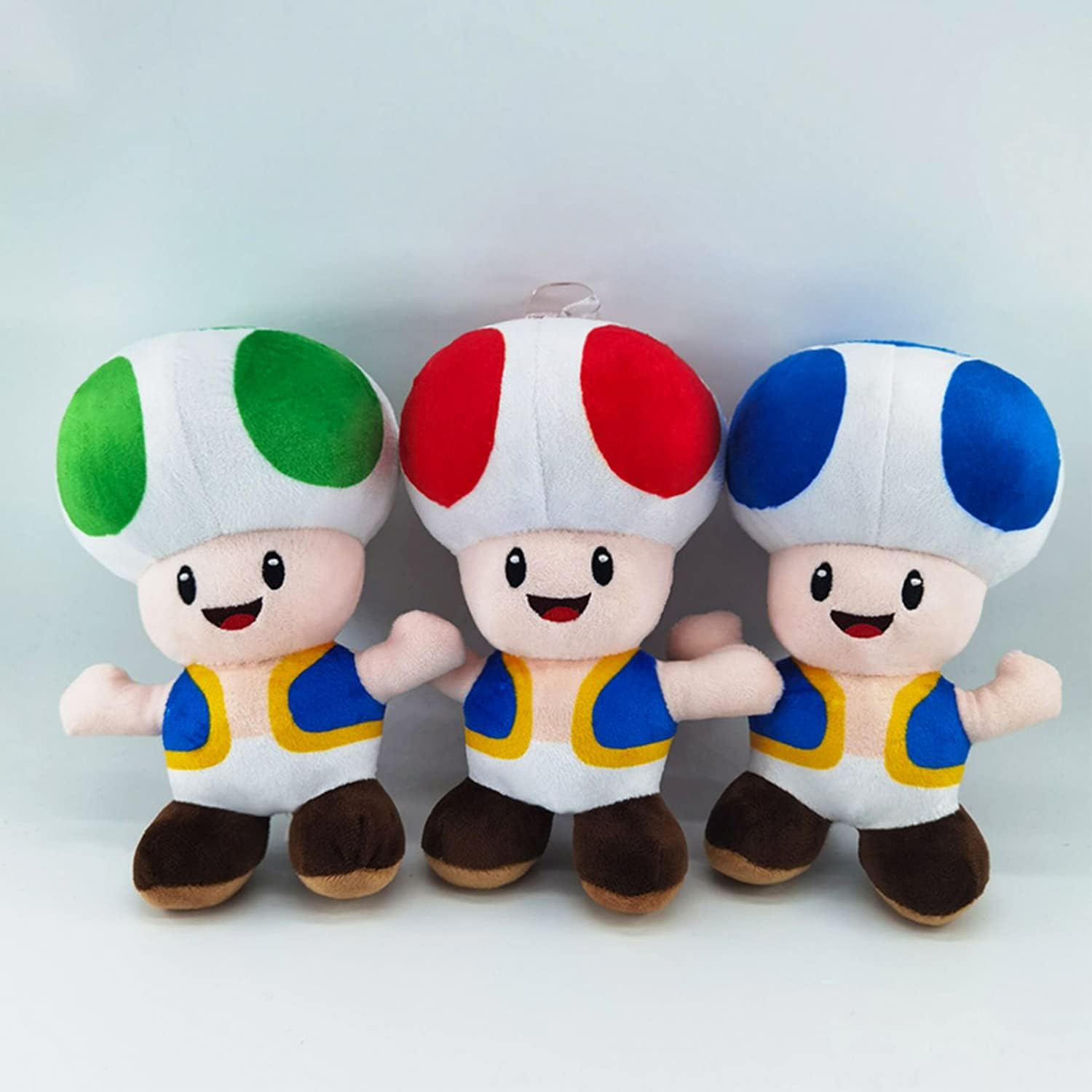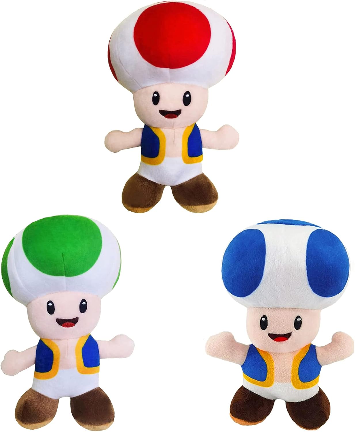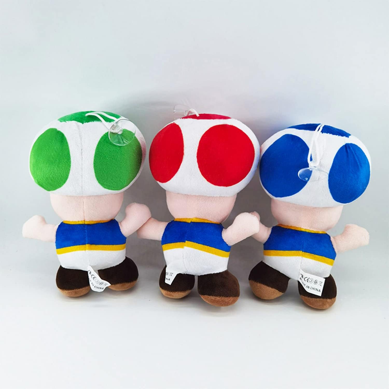 3 piezas de peluche de sapo de hongo, 3 colores de dibujos animados de peluche de 8 pulgadas, paquete de 3 unidades, rojoazulverde