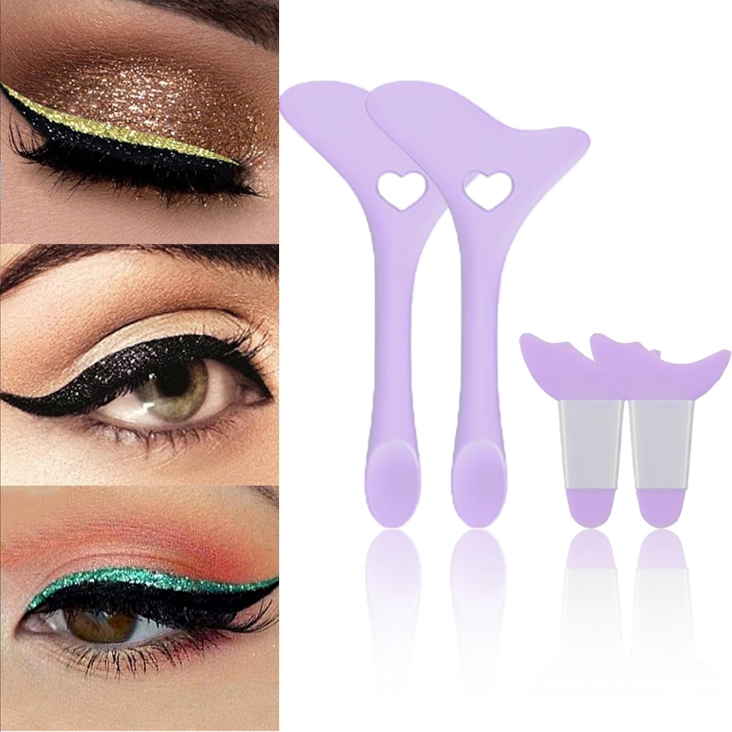 4 plantillas de delineador de ojos reutilizables de silicona, aplicadores de sombra de ojos, protectores de rímel, delineador de ojos, aplicador de