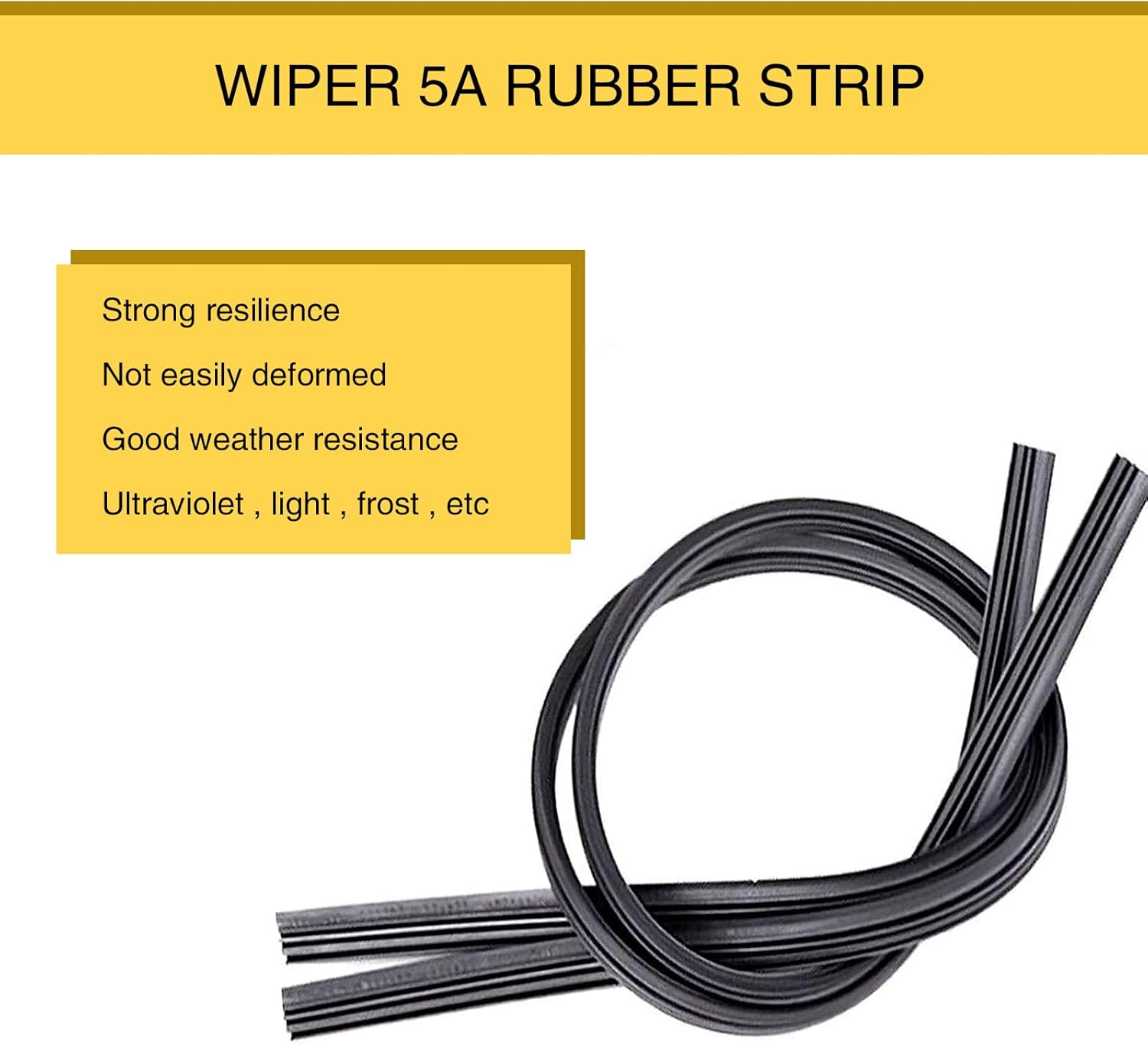 Material de goma: esta tira de repuesto para limpiaparabrisas de automóvil está hecha de material de caucho natural importado de grado AAAAA, que tiene una excelente resistencia al desgaste y flexibilidad y se puede doblar a voluntad. Tratamiento SPSN, ruido de uso a largo plazo. Vida útil más larga., Función: A medida que pasa el tiempo, la escobilla del limpiaparabrisas envejece y se endurece, lo que resulta en un contacto desigual entre la tira del limpiaparabrisas y el vidrio. Por lo general, hay un fuerte sonido chirriante al raspar. Esta tira se puede utilizar como pieza de repuesto para realizar trabajos de limpieza silenciosos y silenciosos, eliminando objetos extraños del parabrisas, como hojas, agua de lluvia, guijarros y polvo, etc., para mejorar la visión del conductor. Reduce el peligro y facilita la conducción segura., Detalles del producto: recibirás 4 tiras de goma para limpiaparabrisas. La longitud del producto es de 24 pulgadas y el ancho es de 0.23 pulgadas (0.236 in). Se puede cortar y ajustar libremente. Te proporciona una visión clara de conducción durante todo el día, aportando seguridad y comodidad., Amplia aplicación: adecuado para la mayoría de automóviles, camiones, SUV, etc., adecuado para limpiaparabrisas sin hueso y sin marco. Extiende la vida útil de tus limpiaparabrisas y logra una limpieza silenciosa y suave. También se puede utilizar en puertas correderas, ventanas correderas, puertas de armario, etc., Cómo instalar: Primero use una herramienta u otras cosas para desmontar el clip en la escobilla del limpiaparabrisas, retire la tira del limpiaparabrisas vieja y luego reemplácelo por uno nuevo. Finalmente instala el clip de limpiaparabrisas original y listo.