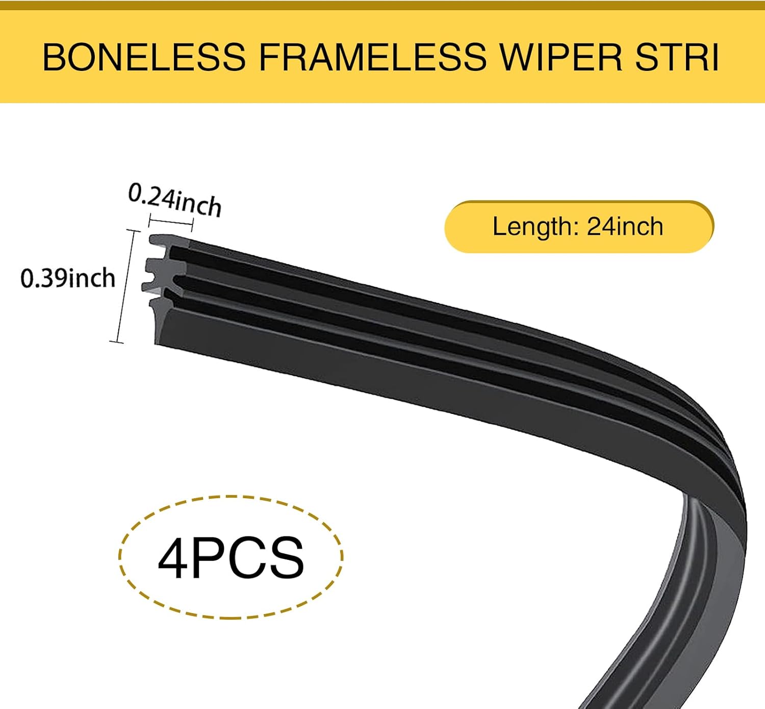4 tiras de goma flexible para limpiaparabrisas de automóvil, tamaño ajustable de 24 pulgadas, repuesto resistente al desgaste, repuesto de hoja de