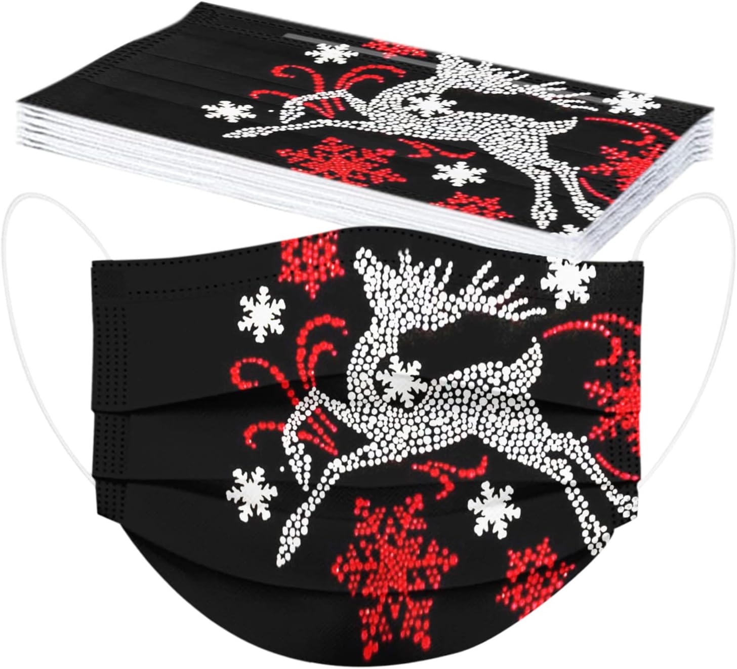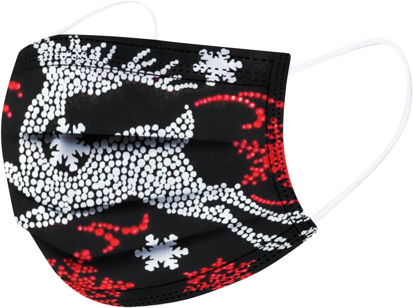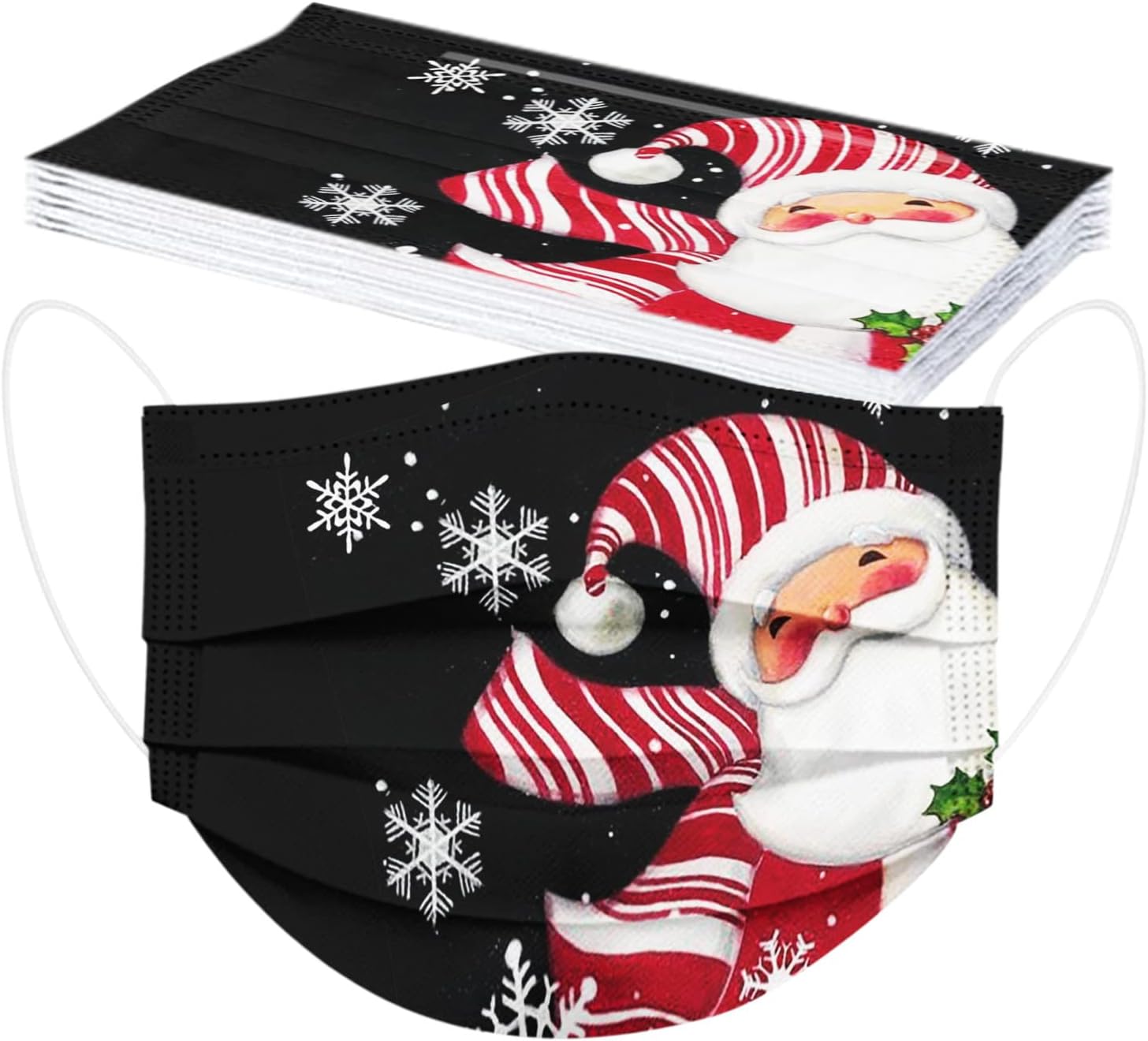 50 cubrebocas desechables de invierno para adultos, 3 capas con alambre para la nariz, diseño de copos de nieve, Papá Noel, renos
