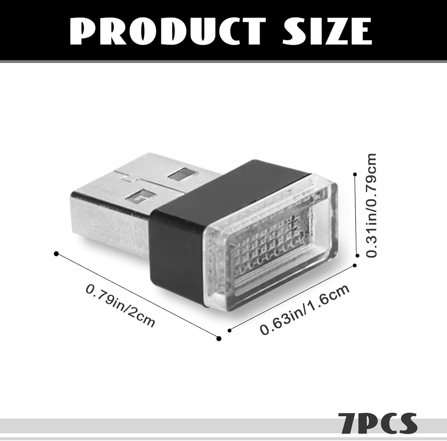 7 lámparas LED USB para el interior del automóvil, mini luces LED USB para decoración del automóvil, kit de iluminación ambiental, interfaz USB