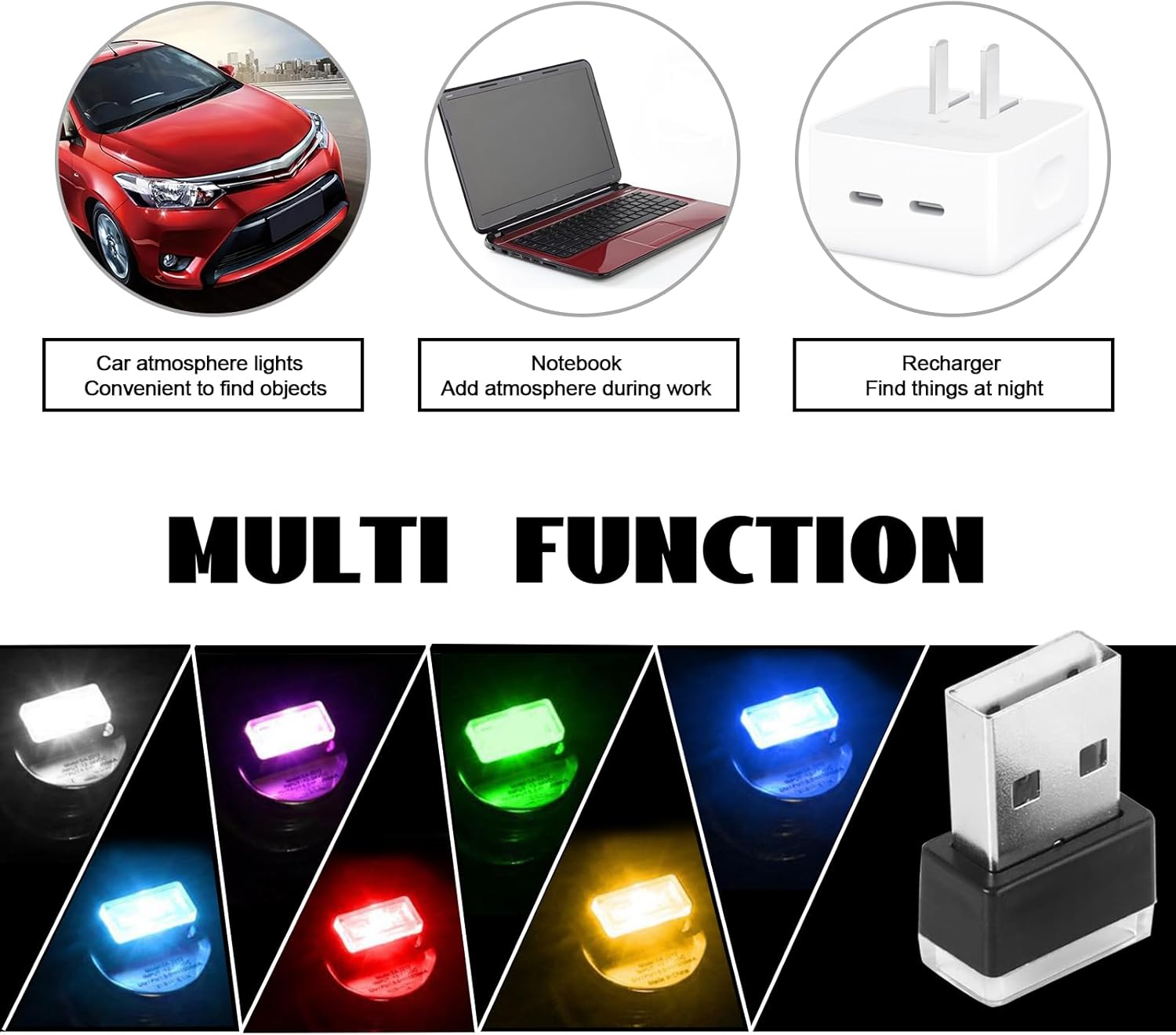 Materiales de calidad: esta mini luz ambiental USB para automóvil está hecha de plástico ABS y LED. La luz es suave y no irrita tus ojos, bajo consumo de energía, ahorra energía. Puede crear un ambiente cómodo en el automóvil, aumentar el placer de conducir, pero también puede ayudarlo a buscar algo más fácilmente en la oscuridad., Función: ahorro de energía, respetuoso con el medio ambiente, ahorra espacio, utilizado para puerto USB a prueba de polvo, iluminación., [Tamaño mini]: esta luz ambiental mini USB para automóvil es de 0.79 x 0.31 x 0.59 pulgadas/0.8 x 0.3 x 0.6 in, el tamaño mini es ligero y flexible, fácil de llevar, plug and play, cómodo de usar, [Uso versátil]: apto para todos con puerto USB como automóviles, computadoras, portátiles, banco de energía, etc. Además, se puede utilizar como un regalo para tu familia y amigos., [DESPUÉS DE VENTA]: 7 mini luces ambientales USB para automóvil. Si tienes alguna pregunta sobre el uso, ponte en contacto con nosotros en cualquier momento directamente, resolveremos el problema en 24 horas los días laborables.