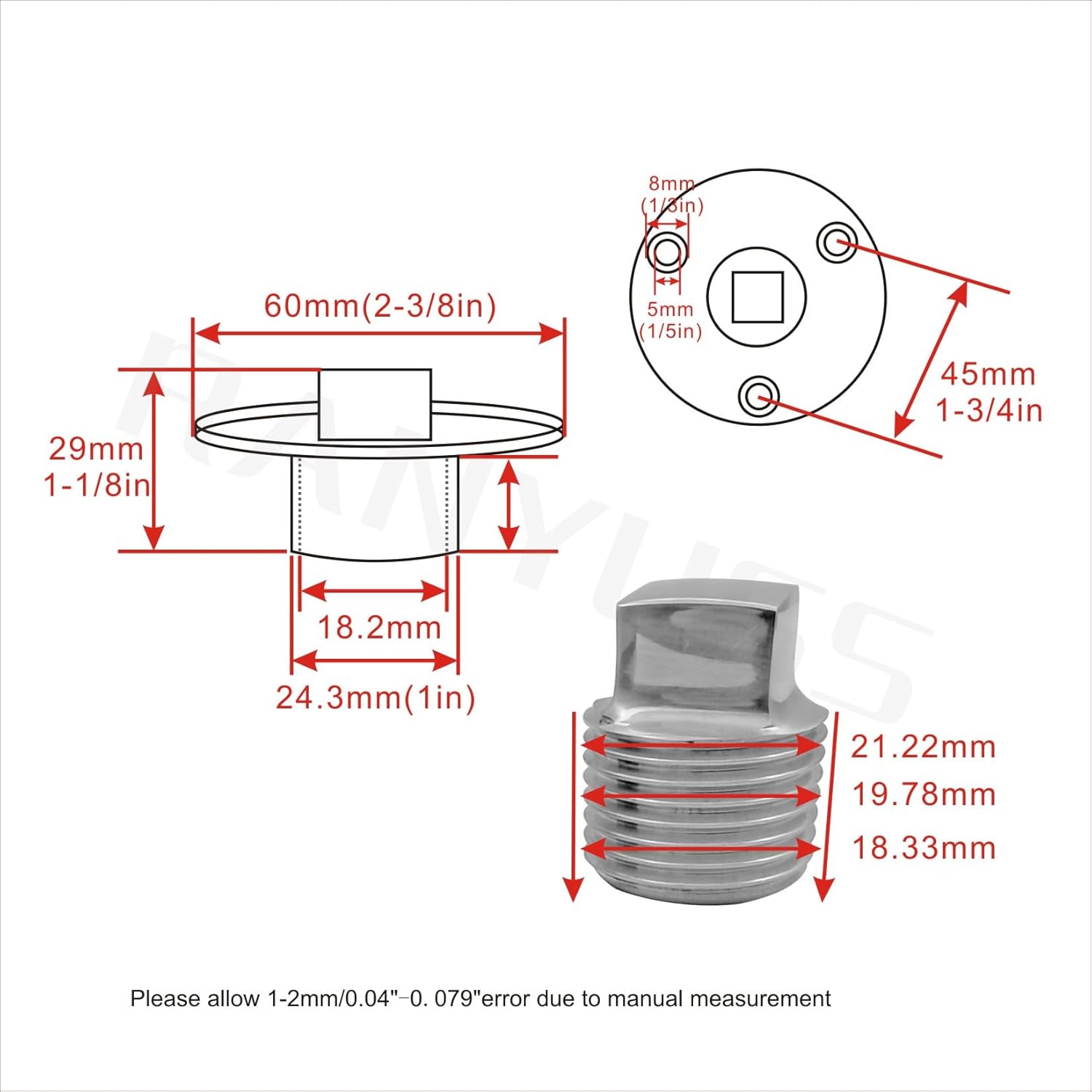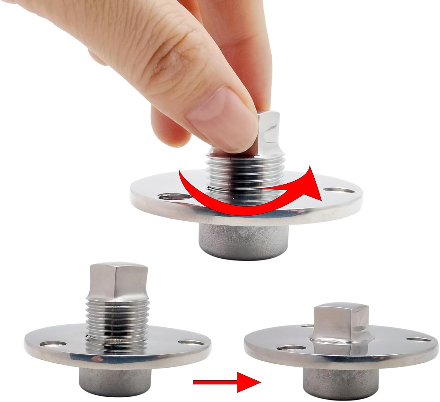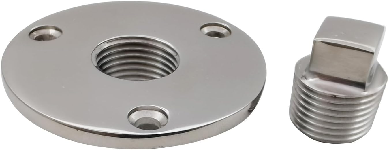 Material: acero inoxidable, tapón de drenaje de acero inoxidable 316; el tapón de drenaje de barco se adapta al agua salada y resistente a los rayos UV, Una pieza de buque Garboard Drain Plug Marine Stainless Steel W/Tornillos, Kit de tapón de drenaje para garboard de barco con sujetadores, 1 unidad; se vende como el pitcutre, Tapón para barco que se adapta a 1 orificio de 1 pulgada, el diámetro de la brida es de aproximadamente 2-3/8 pulgadas (2.343 in), El enchufe inoxidable del barco tiene la parte superior cuadrada para la llave o la llave del zócalo;