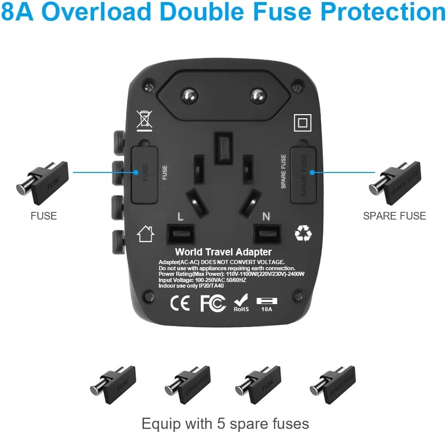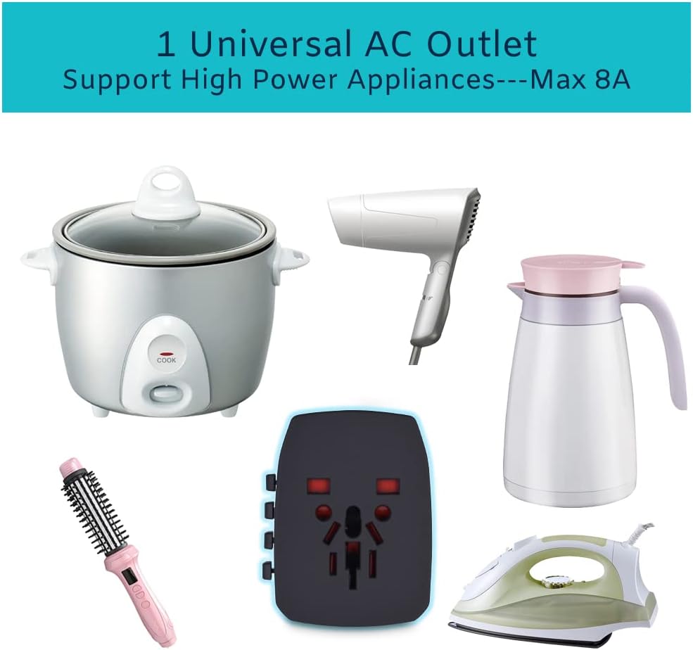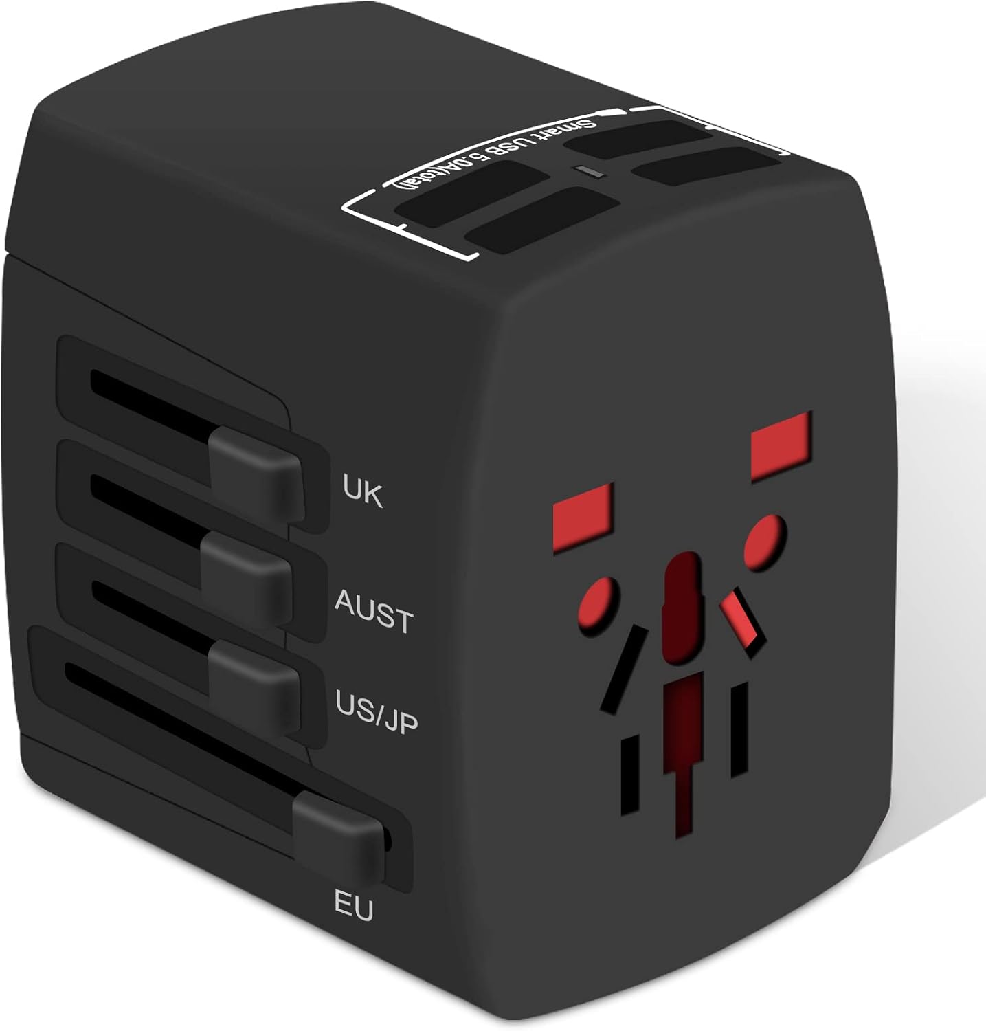 Adaptador de corriente de viaje universal en todo el mundo, adaptador internacional de 2000 W con 4 puertos USB, Reino UnidoUEAUEE. UU. (más de 200