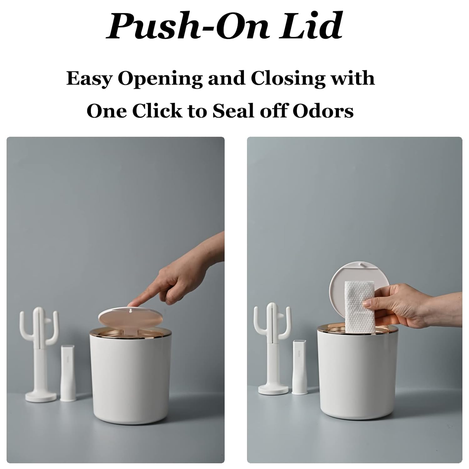 Diseño cuidadoso: presiona el diseño de la tapa para evitar eficazmente el desbordamiento de olores, sellado y antiolor, evita que la basura se derrame, la basura no esté expuesta, cubre la tapa para evitar que el olor se emita, lo que te permite disfrutar mejor de la comodidad de este mini bote de basura., Duradero: mini bote de basura de escritorio hecho de materiales ABS y PET, sin BPA, suave por dentro y por fuera, fácil de limpiar y lavar. Estos elegantes botes de basura de escritorio o escritorio son perfectos para cualquier hogar u oficina, harán que tu espacio sea más limpio e higiénico., Dimensiones del bote de basura de escritorio: altura: 1.5 l / 0.4 galones Mini bote de basura para encimera, largo x ancho x altura: 5.7 x 5.7 x 5.9 in (5.7 x 5.7 x 5.9 pulgadas), 3 rollos de bolsas de basura a juego serán enviados bajo pedido. Satisface tus necesidades diarias de almacenamiento y mantén tu escritorio, habitación, oficina ordenada todos los días., Diseño práctico: la tapa es extraíble y diseñada para una fácil extracción de bolsas de basura o limpieza con agua, manteniéndola limpia donde quiera que vayas, la apariencia de moda también puede decorar la habitación o el escritorio, por lo que este bote de basura debe ser un buen ayudante., Si no estás satisfecho con nuestros productos de basura o tienes alguna pregunta, no dudes en ponerte en contacto con nosotros. ¡Definitivamente te proporcionaremos una solución satisfactoria! Confirma que el tamaño y la capacidad son lo que necesitas antes de comprar.