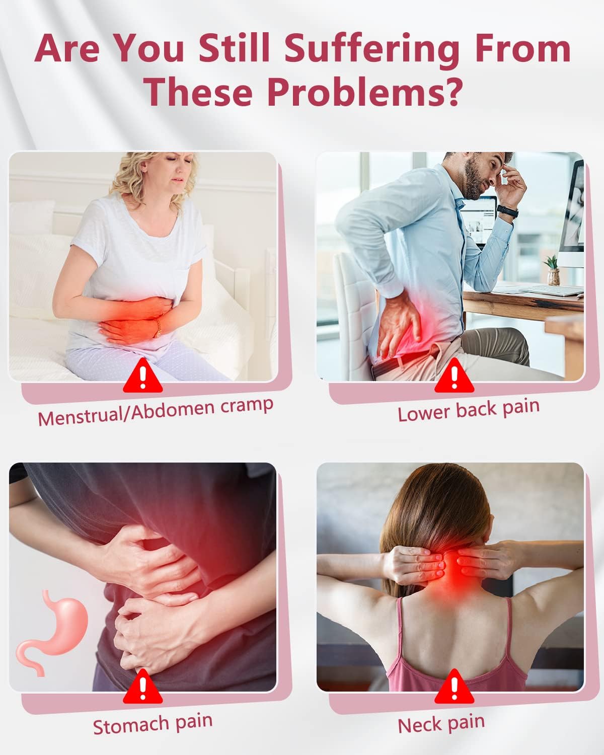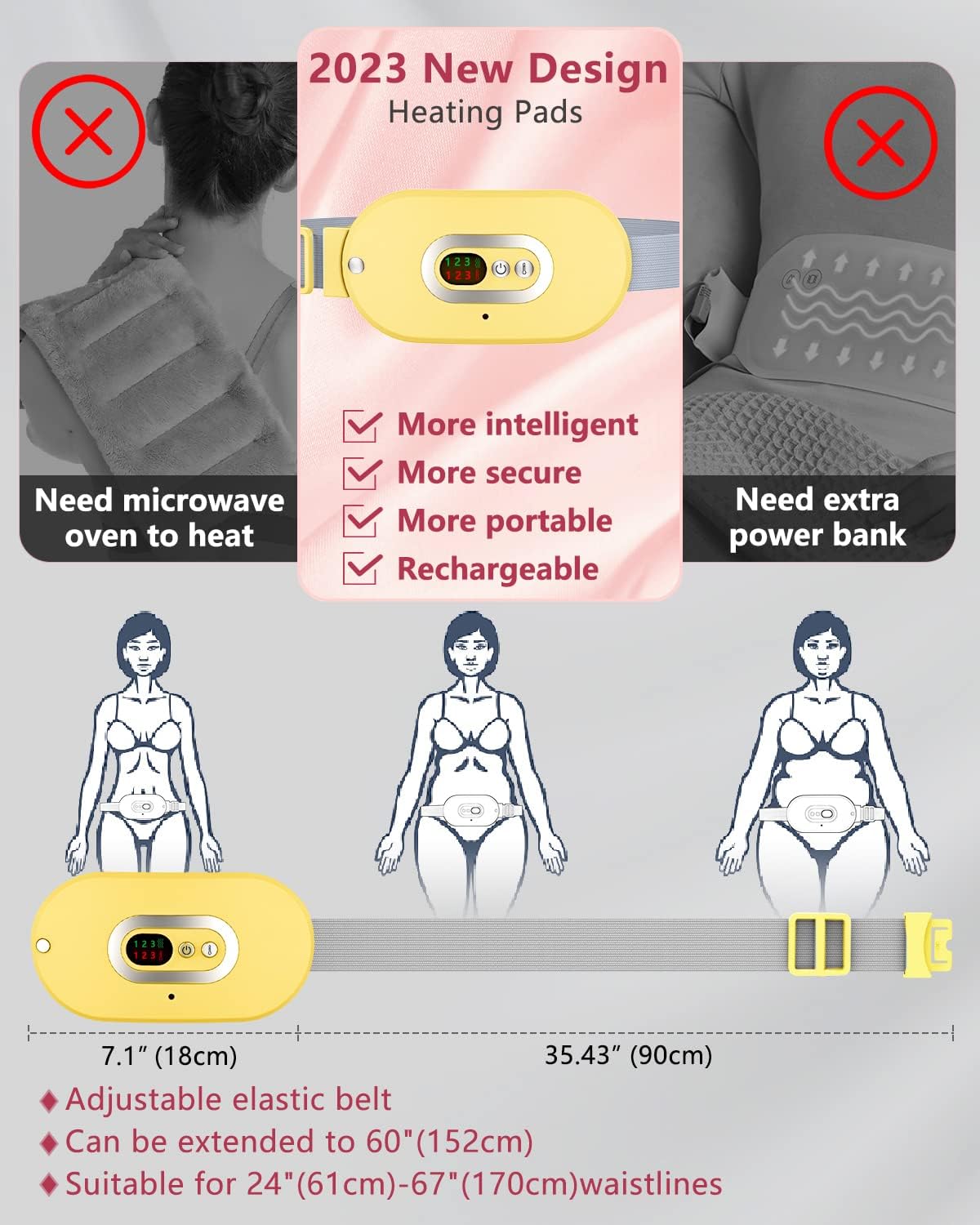 🔥【Diseño automático y seguridad】Las almohadillas térmicas para calambres están diseñadas para apagarse automáticamente. Especialmente cuando te quedas dormido, después de 30 minutos de uso se apaga automáticamente, mejor para proteger su seguridad, Portátil y fácil de usar: diseñada para ser compacta y portátil, la almohadilla térmica inalámbrica portátil es fácil de llevar contigo a donde quiera que vayas, ya sea que estés de viaje, trabajando o simplemente en movimiento. No encontrarás una almohadilla térmica de viaje más fácil de usar para los calambres menstruales, Batería de larga duración: la almohadilla térmica con masajeador cuenta con una batería de larga duración, asegurando que tengas mucha potencia para durar todo el día. Las calcomanías de cintura cálida no requieren una fuente de alimentación externa, solo necesitan cargarse completamente a tiempo, puedes disfrutar del calor, Cinturón ajustable, masaje y calor: la almohadilla térmica de masaje viene con una cintura elástica ajustable que se adapta a cualquier tamaño de cintura. La funda de tela cómoda y suave te da una comodidad óptima al tacto, 🎁 【El mejor regalo para tu amor】Ya sea que estés buscando el regalo perfecto para tu hija, novia o esposa, las almohadillas térmicas son un regalo reflexivo y práctico que muestra que te preocupas por su comodidad y bienestar, 🔥【Aprobado por la FSA HSA】La almohadilla térmica portátil viene con 1 año de garantía. Si tienes algún problema con la almohadilla térmica, ponte en contacto con nosotros lo antes posible y estamos encantados de manejarlo por ti