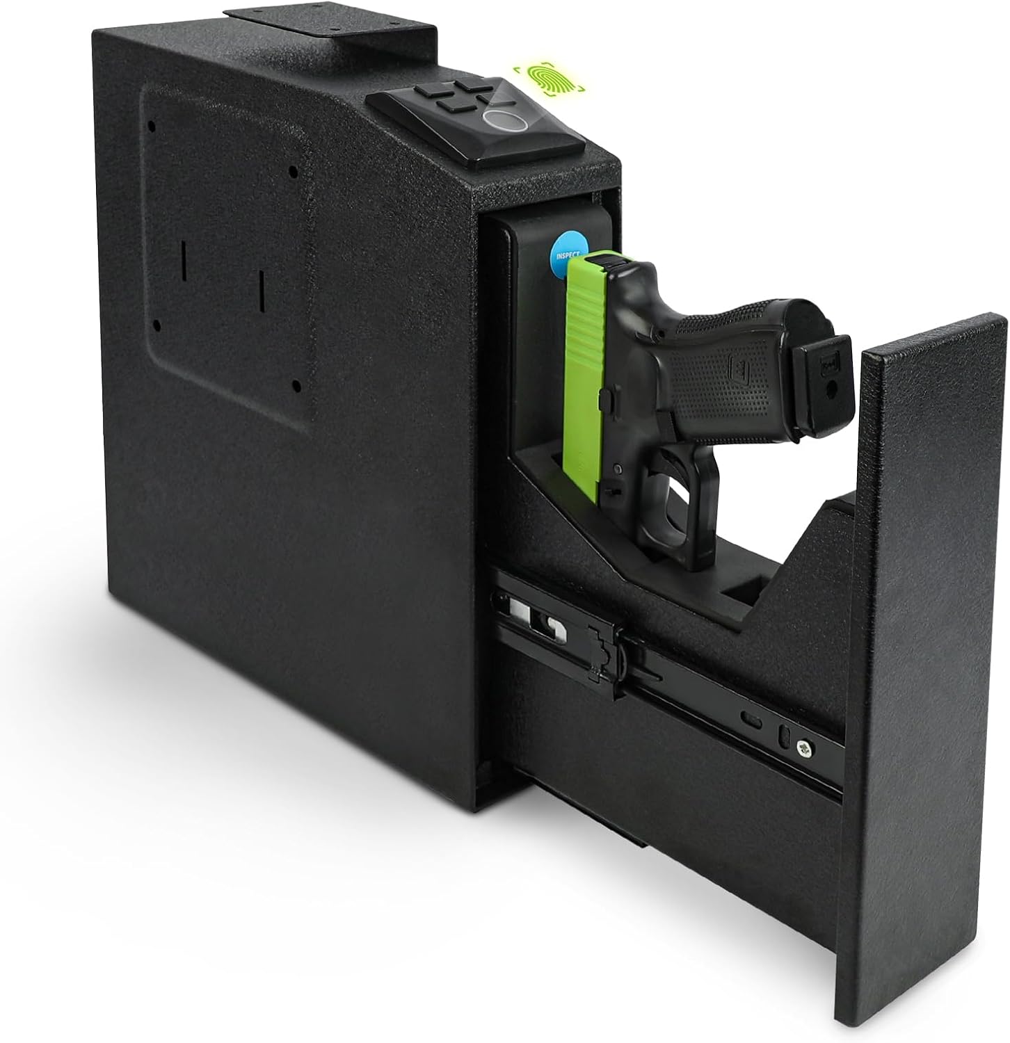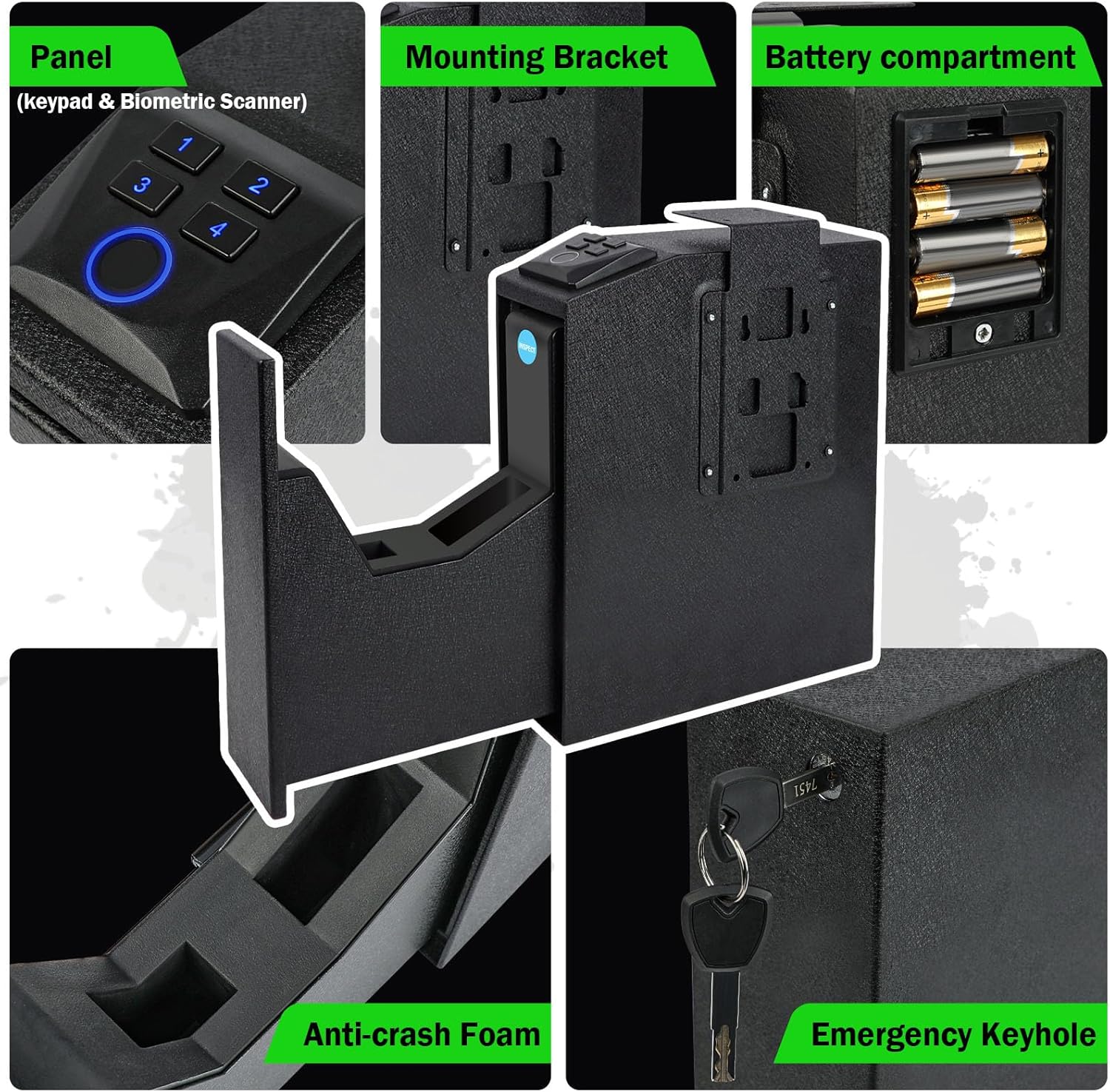 AUREOLE Caja fuerte biométrica de acceso rápido para pistola deslizante con bloqueo de teclado de huellas dactilares, caja fuerte para pistola de