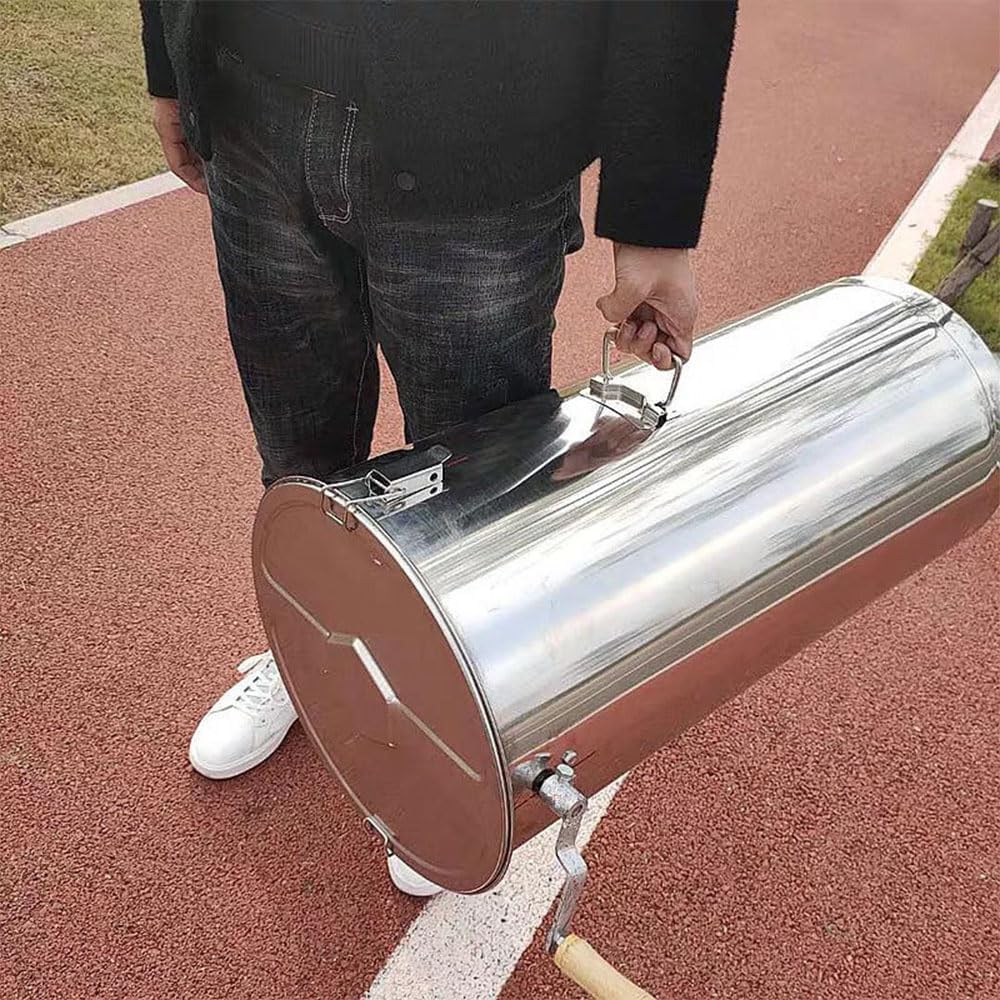 Fácil de usar: este extractor de miel viene con una garantía limitada del fabricante de 1 año, así como soporte técnico amigable para ayudar con cualquier pregunta o inquietud. El montaje es realmente fácil con sencillos pasos. Simplemente coloca el panal en los marcos y manivela el mango resistente para girar en poco tiempo. Ideal para el aficionado o pequeño apiarista. ACTUALIZACIONES: el cuerpo del extractor de miel Upgrades está hecho de acero inoxidable y enrollado con una máquina de soldadura sin costuras. Marco de acero inoxidable pulido de grado alimenticio, menos propenso a la oxidación y al desgaste. Extractor de miel manual de 2 marcos: resistente, capaz de manejar hasta 2 marcos estándar profundos, medianos o poco profundos, con cestas en el interior que pueden acomodar hasta 2 marcos a la vez. Los engranajes cerrados en el marco no contaminarán la miel. Tambor de acero inoxidable: el tambor de acero inoxidable en este extractor de miel de dos marcos mide 27.5 pulgadas de alto y 13.8 pulgadas de diámetro, perfecto para extraer mucha miel a la vez. Diseño de manivela resistente: el mango tiene una abolladura cuadrada para una fácil instalación, por lo que es fácil de girar con una manivela. La manivela de metal sólido gira ambas cestas de forma suave y eficaz.