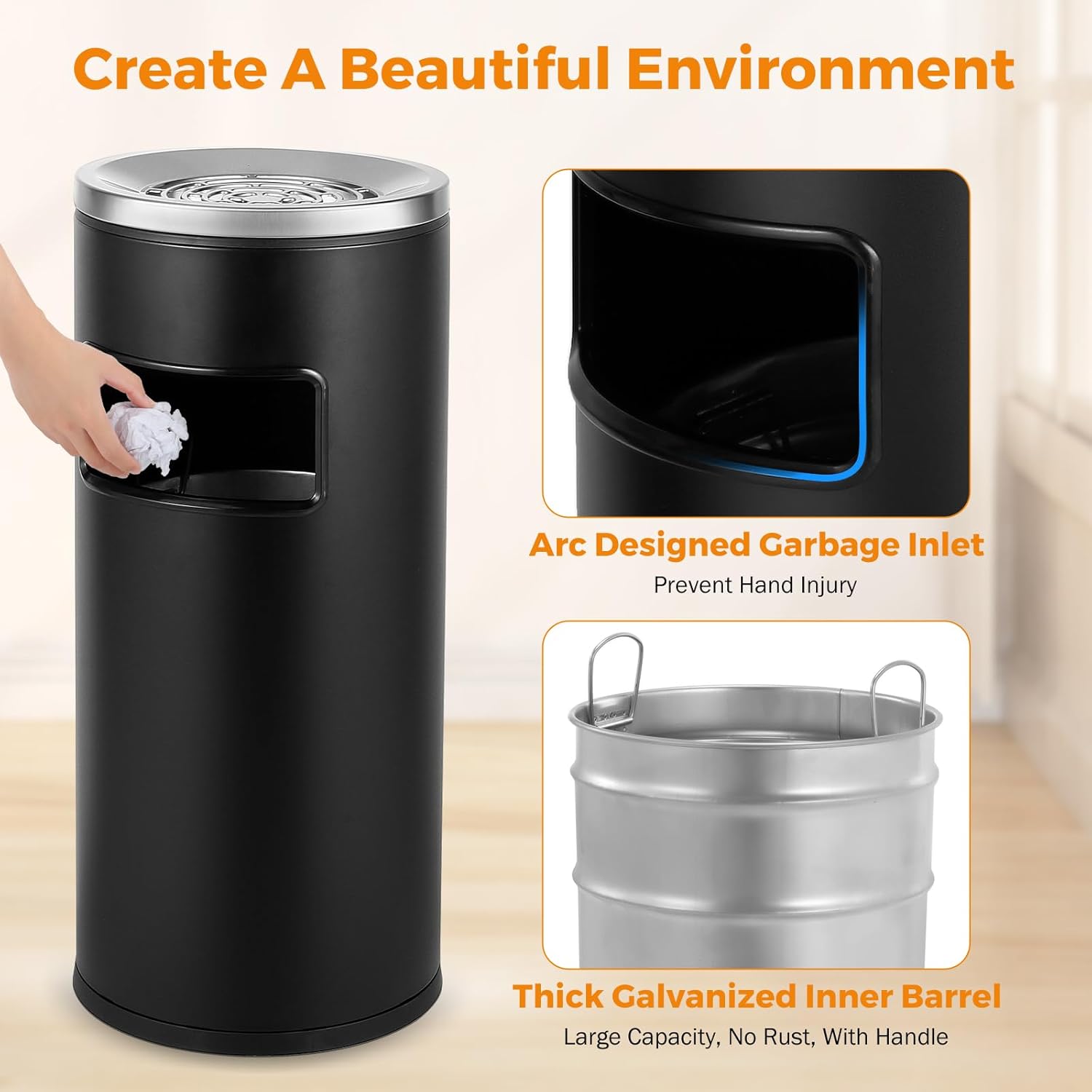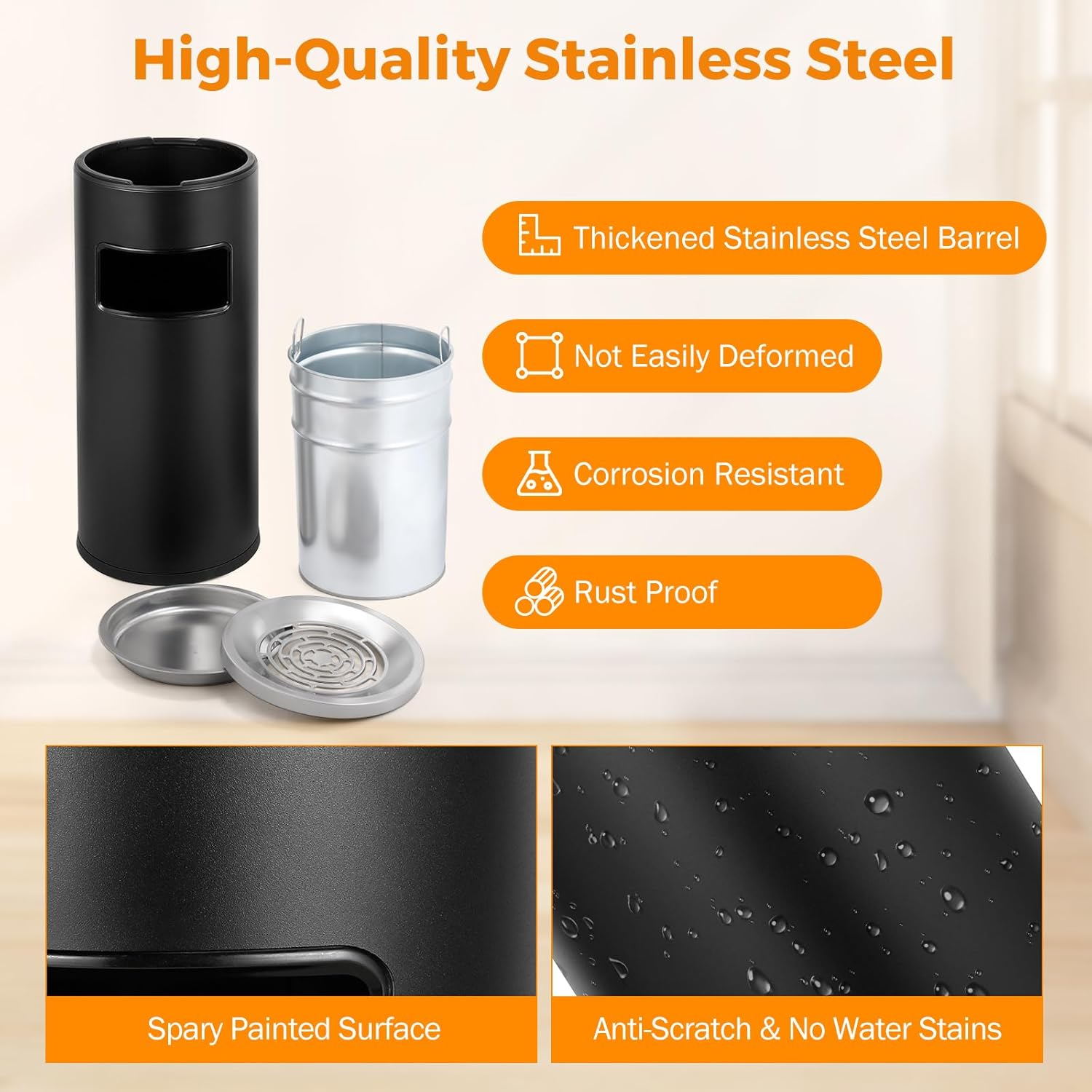 Dimensiones: 11.8 x 24.1 pulgadas., Material: acero inoxidable., Diseño simple y moderno: cuerpo cilíndrico con bordes redondeados para evitar raspaduras de manos., Acero inoxidable mejorado: los botes de basura BEAMNOVA para exteriores se han actualizado de metal a acero inoxidable grueso, lo que los hace más resistentes a la corrosión y adecuados para uso en interiores y exteriores. La capa superficial es de material pintado o cepillado a prueba de óxido, hermoso y duradero. Se puede colocar al aire libre sin temor al viento y al sol., Fácil de limpiar: el bote de basura BEAMNOVA para exteriores viene con un forro galvanizado desmontable de alta calidad y una bandeja de tartán extraíble en la parte superior. Recomendado para poner arena, agua o pequeños guijarros. Fácil de limpiar, práctico y conveniente., Uso en interiores y exteriores: para uso en interiores y exteriores. Se puede colocar en la cocina, sala de estar, dormitorio, patio, inodoro, etc. También se puede utilizar para fines industriales, médicos e industriales, en pasillos de hospitales, junto a ascensores de hoteles, parques al aire libre, etc.