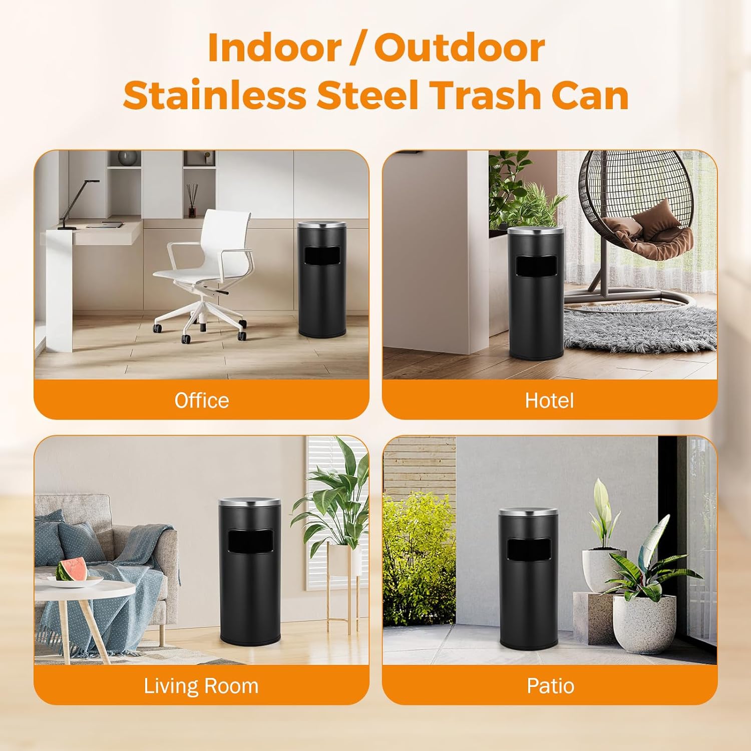 BEAMNOVA Bote de basura al aire libre con tapa, contenedor de basura comercial negro de acero inoxidable para patio, garaje interior, contenedor de