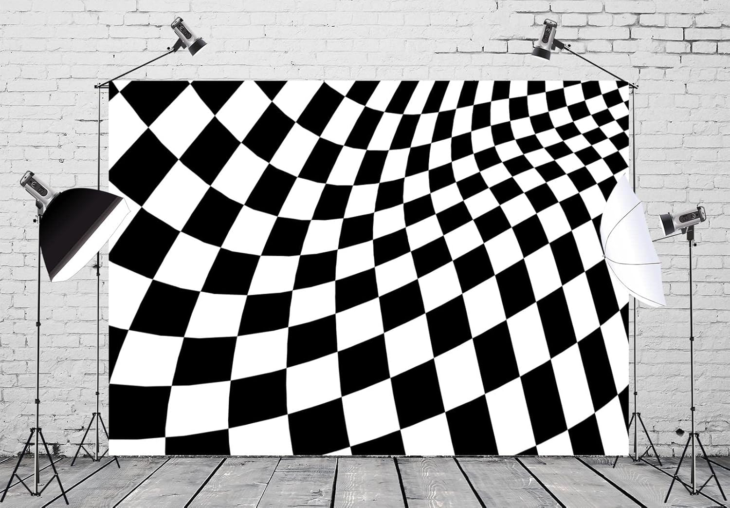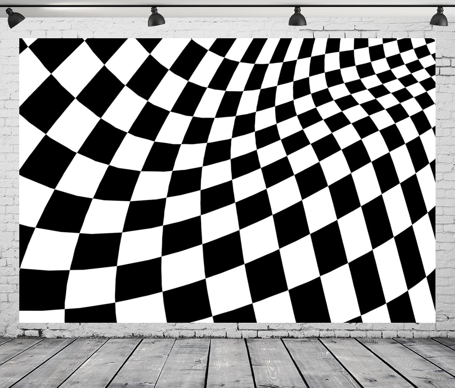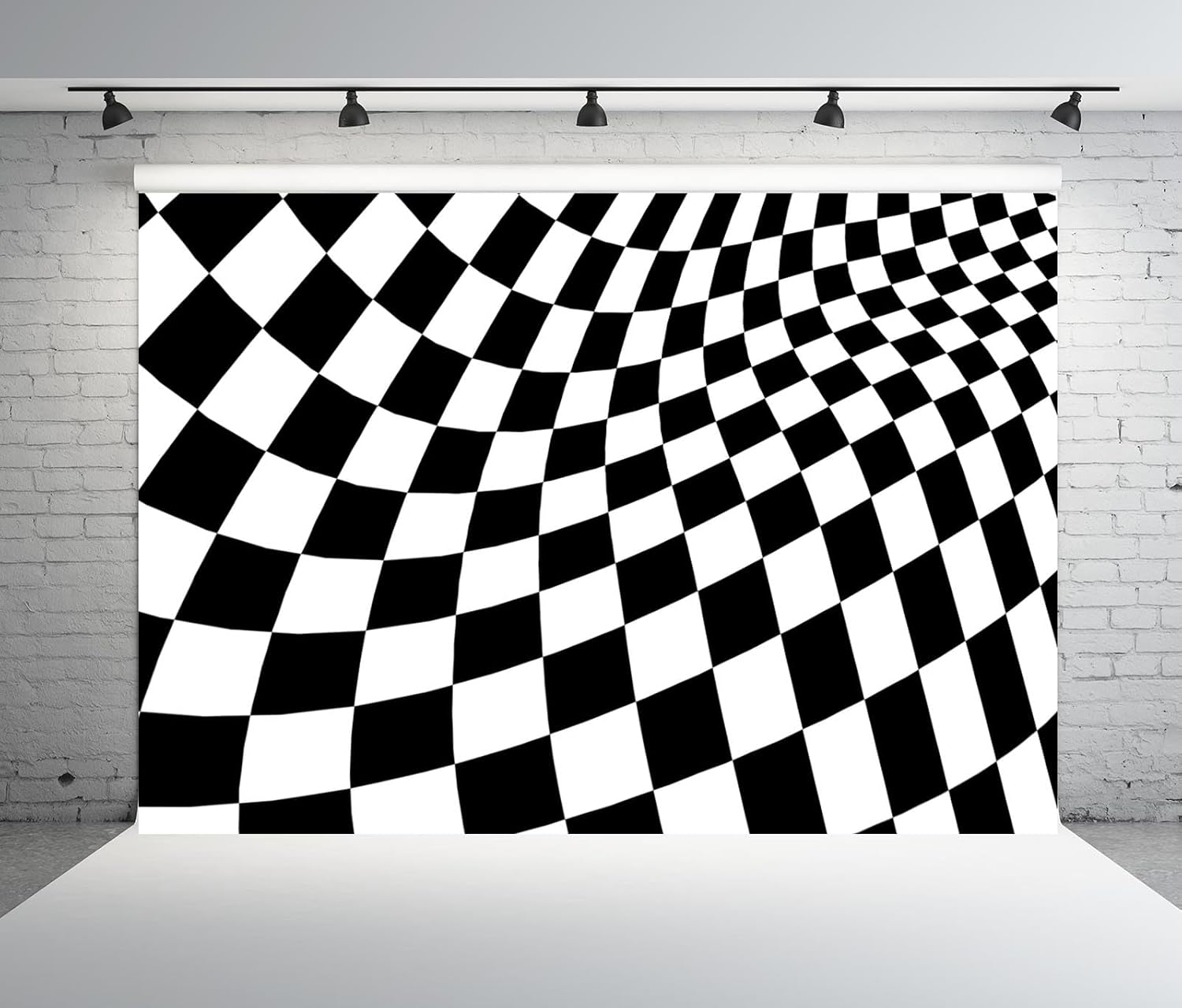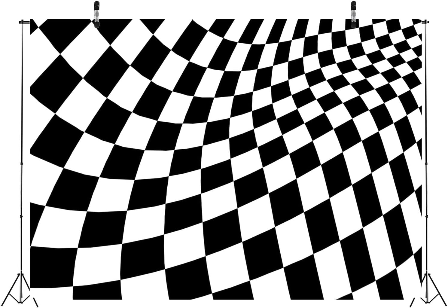 BELECO Telón de fondo de tela a cuadros blanco y negro de 12 x 8 pies, tablero de ajedrez, textura cuadrícula, fondo de ondas, suministros de fiesta