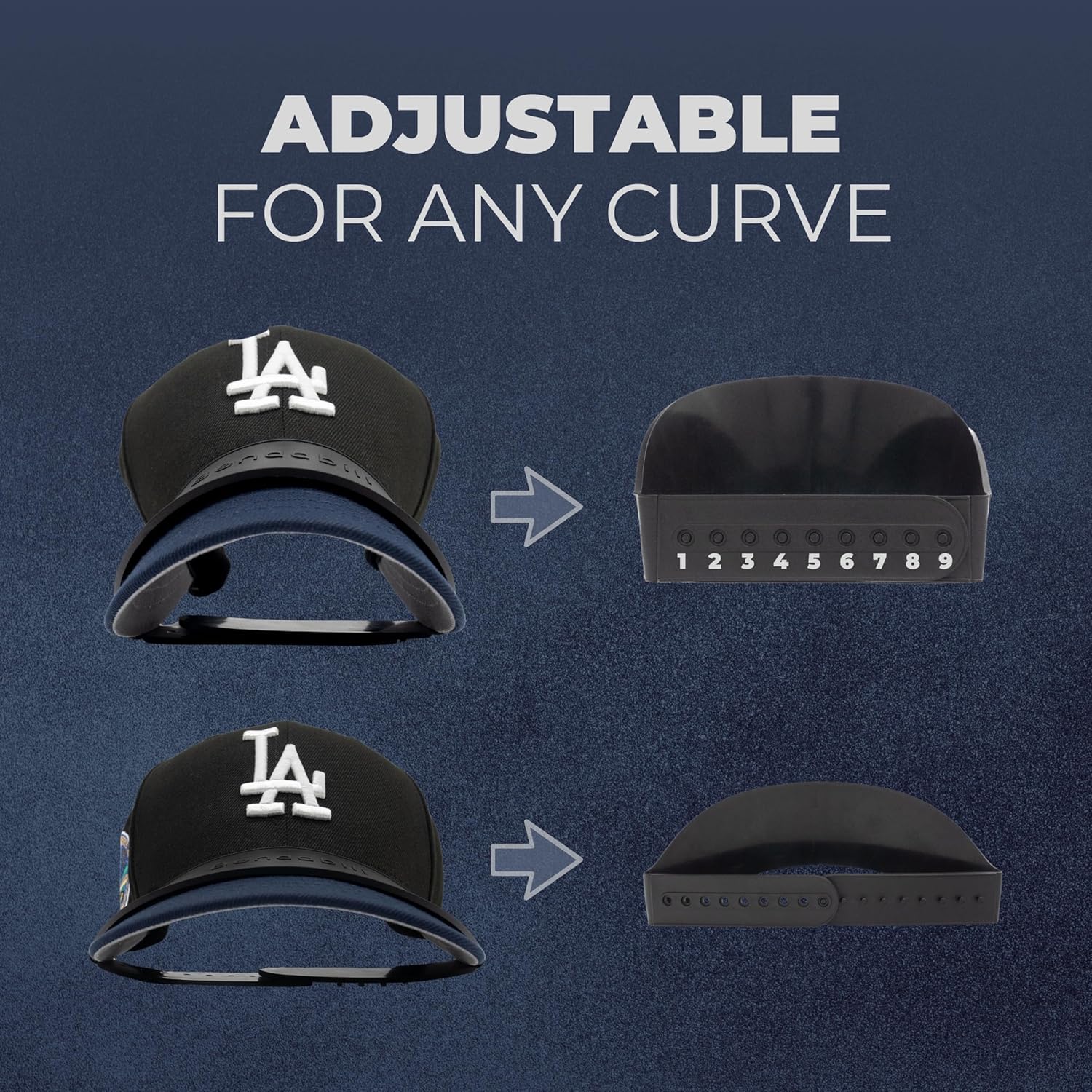 Curva perfecta garantizada: logra la curva ideal del sombrero sin esfuerzo con nuestra herramienta especializada para curvar sombreros. Fabricado para garantizar la curva correcta, sin dañar el borde., Múltiples opciones de curva: realza tu juego de sombrero con nuestra dobladora con una colección de más de 9 curvas a presión. A diferencia de las opciones limitadas de la competencia, nuestra herramienta te permite personalizar el aspecto y el ajuste de tu sombrero., Ajuste seguro cada vez: a diferencia de las bandas de goma endebles, nuestro moldeador de billetes de sombrero abraza de forma segura todo el borde. Fabricado con plástico de alta calidad y duradero para un uso repetido., Ajuste universal: diseñado para todos los tamaños de sombrero, gorras de béisbol y viseras con bordes de hasta 8 pulgadas de ancho. Tu accesorio ideal para la curva perfecta, sin importar el sombrero., Resultados simples y durante la noche: ajusta la correa sin esfuerzo en la factura, selecciona tu forma preferida y déjala reposar durante la noche. Despierta con la curva definitiva del sombrero, vaporizando opcional.