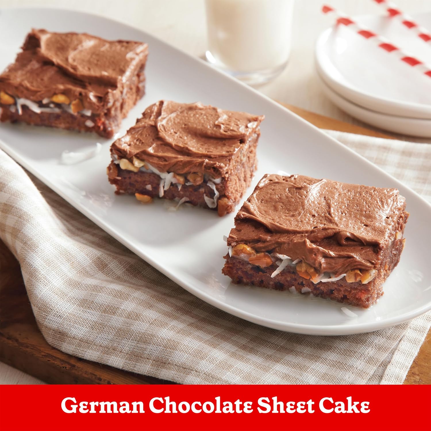 Si estás buscando decadencia de chocolate, prueba la rica y deliciosa mezcla de pastel de chocolate alemán súper húmedo de Betty Crocker Delights. Listo para hornear en minutos, este pastel de chocolate alemán se puede cubrir con un delicioso glaseado y coco para una toma clásica, o prueba algo nuevo con una de las muchas recetas de mezcla para hornear de Betty Crocker. Además, también se puede utilizar como mezcla de cupcakes. Reúne a tu familia con el equilibrio perfecto de sabor dulce y comodidad. Durante más de un siglo, Betty Crocker ha sido un creador popular de recetas fáciles y deliciosas. Hoy en día, la cocina Betty Crocker todavía proporciona mezclas de postres convenientes y sabrosas, glaseados y convenientes opciones de comidas y guarniciones. Y hoy, todavía puedes encontrar los mismos productos con los que creciste en los estantes de los supermercados.