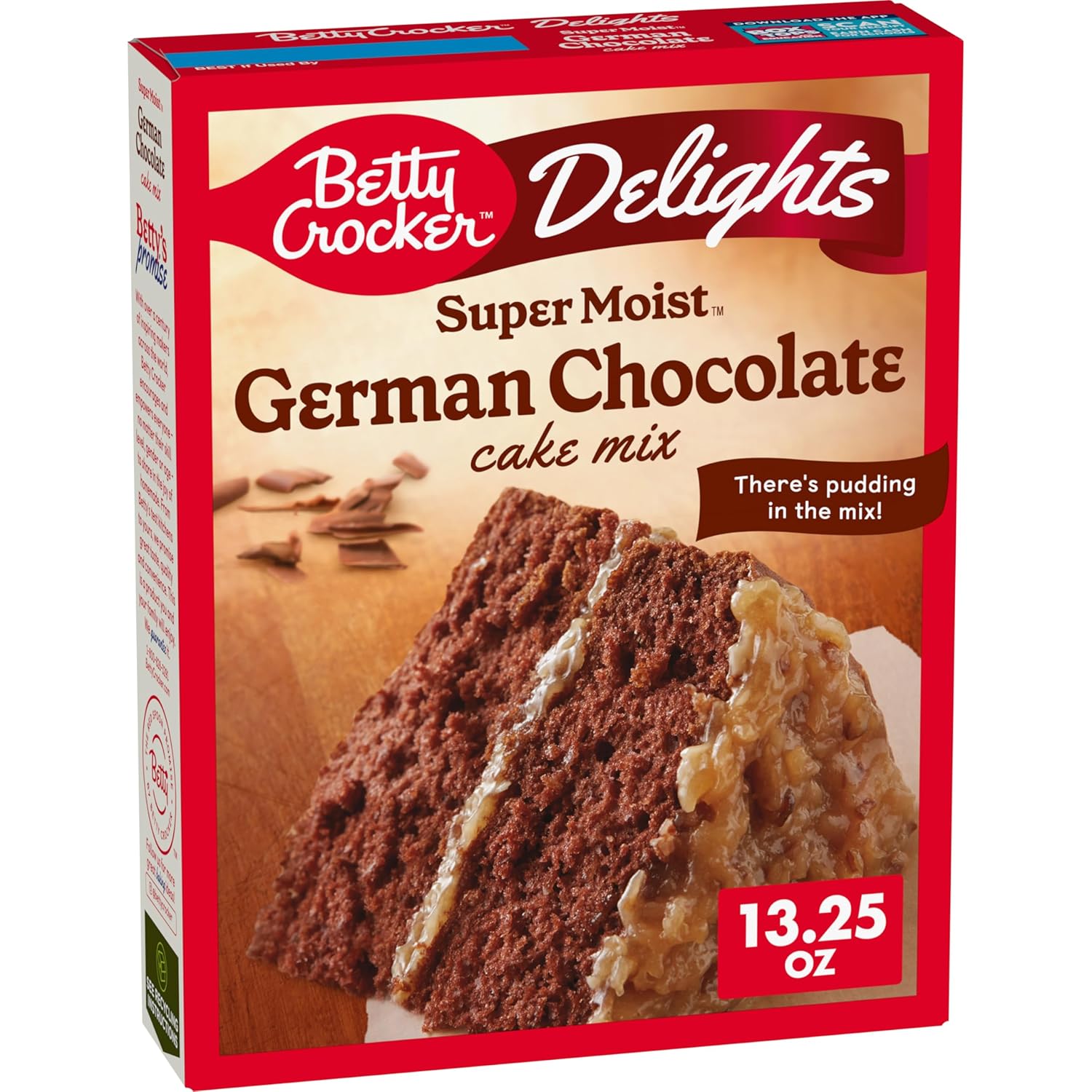 Betty Crocker Delights Mezcla de pastel de chocolate alemán súper húmedo, 13.25 onzas (paquete de 12)