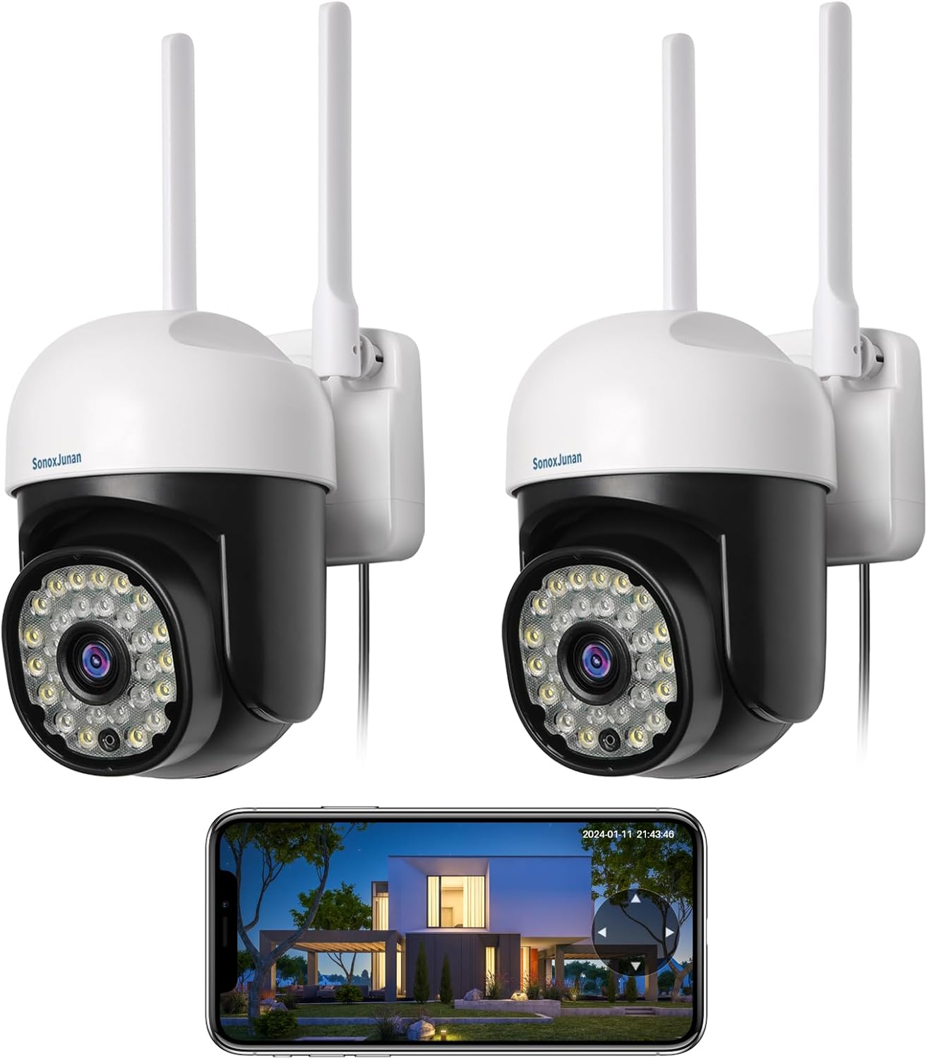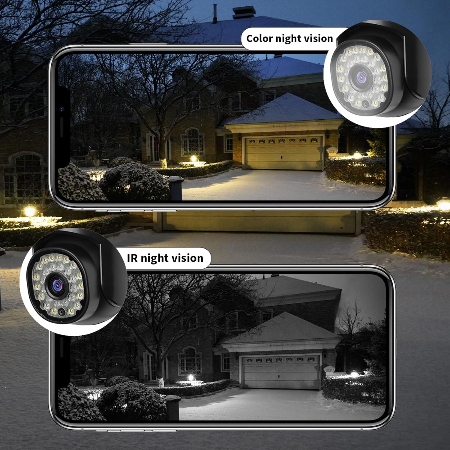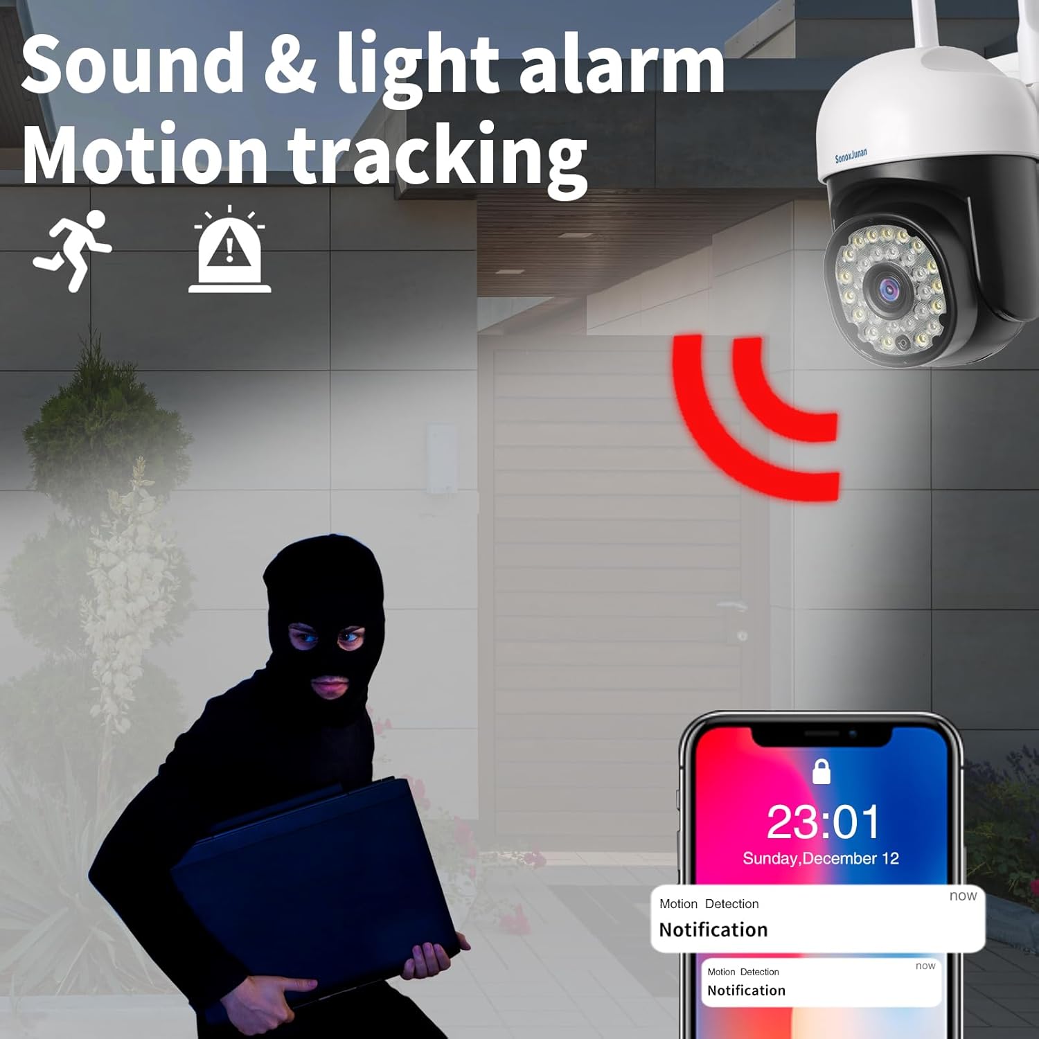 Seguridad con clasificación IP66 y visión de 360°: la cámara de seguridad para exteriores puede funcionar normalmente en entornos de 14 °F a 140 °F (14.0 °F ~ 140.0 °F), y puede funcionar en lluvia, nieve y clima cálido. La cámara de seguridad se puede maniobrar para una rotación panorámica de 355° e inclinar la cabeza de 90° para monitorear áreas más grandes. Wi-Fi 2.4G/5G y fácil instalación: cámara de seguridad al aire libre con señal fuerte, compatible con Wi-Fi de doble banda 2.4G/5G. Las cámaras de seguridad al aire libre son fáciles de instalar, siga las instrucciones en la aplicación de la cámara para configurar rápidamente la cámara en 10 minutos. Almacenamiento en la nube gratuito y almacenamiento local: la cámara de seguridad para exteriores cuenta con almacenamiento gratuito en la nube en un ciclo de 18 meses y 2 días, que se activa automáticamente después de completar la primera configuración de la cámara de seguridad. La cámara de seguridad para exteriores también admite almacenamiento local de tarjetas Micro SD (hasta 128 GB). Audio conversaciones bidireccionales y visión nocturna a todo color: cámara de seguridad para el hogar con micrófono y altavoz para llamadas de audio bidireccionales a aplicaciones móviles. Las cámaras de seguridad para exteriores tienen luz blanca incorporada y luz infrarroja para proporcionar imágenes de alta definición por la noche. Control remoto y seguimiento de movimiento: puede usar su dispositivo iOS/Android/Windows para controlar la cámara de seguridad exterior en cualquier momento y en cualquier lugar. cámara de seguridad al aire libre rastreará automáticamente el objeto, luego grabará video en tiempo real y enviará un mensaje a un teléfono celular. (la función se puede activar o desactivar)