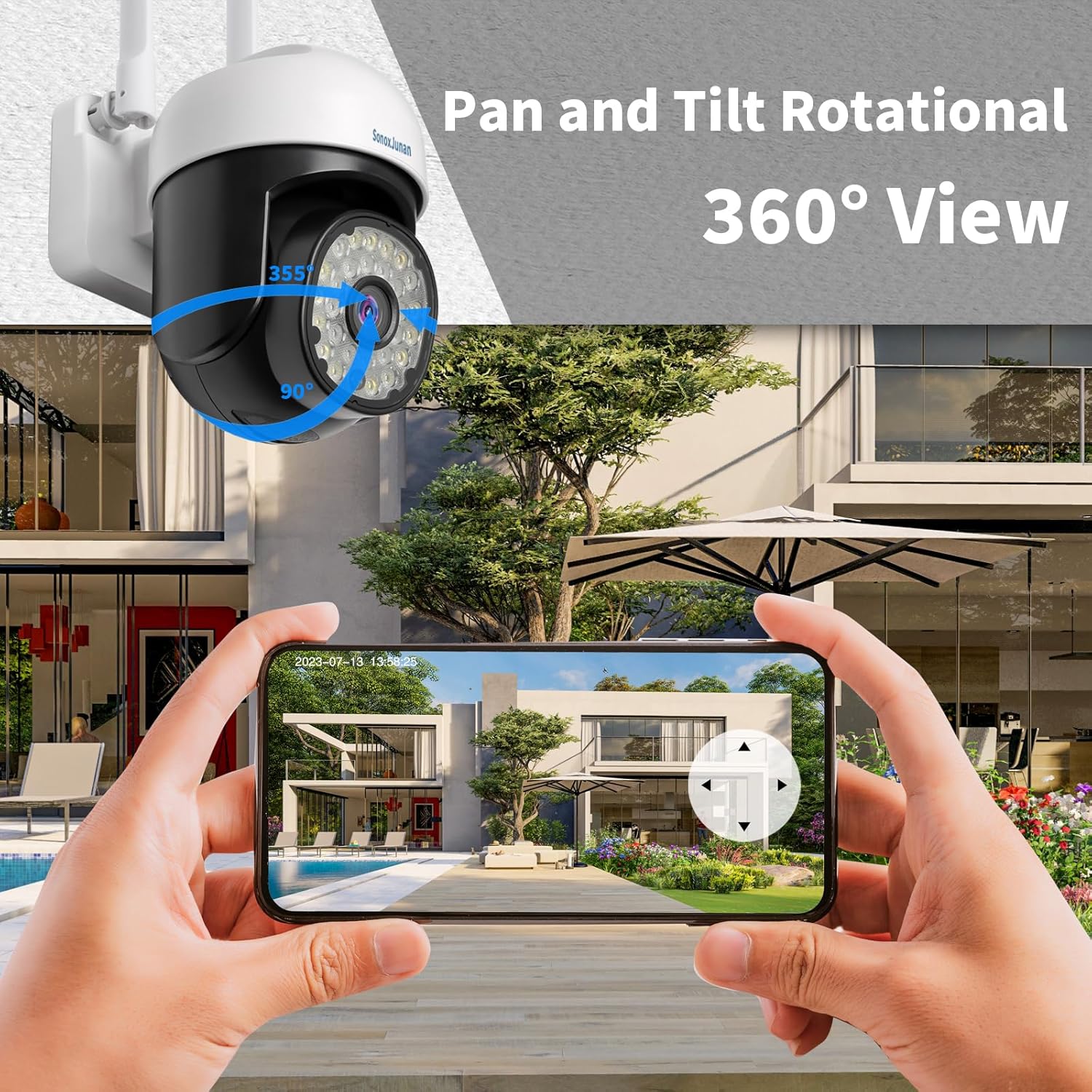 Seguridad con clasificación IP66 y visión de 360°: la cámara de seguridad para exteriores puede funcionar normalmente en entornos de 14 °F a 140 °F (14.0 °F ~ 140.0 °F), y puede funcionar en lluvia, nieve y clima cálido. La cámara de seguridad se puede maniobrar para una rotación panorámica de 355° e inclinar la cabeza de 90° para monitorear áreas más grandes., Wi-Fi 2.4G/5G y fácil instalación: cámara de seguridad al aire libre con señal fuerte, compatible con Wi-Fi de doble banda 2.4G/5G. Las cámaras de seguridad al aire libre son fáciles de instalar, siga las instrucciones en la aplicación de la cámara para configurar rápidamente la cámara en 10 minutos., Almacenamiento en la nube gratuito y almacenamiento local: la cámara de seguridad para exteriores cuenta con almacenamiento gratuito en la nube en un ciclo de 18 meses y 2 días, que se activa automáticamente después de completar la primera configuración de la cámara de seguridad. La cámara de seguridad para exteriores también admite almacenamiento local de tarjetas Micro SD (hasta 128 GB)., Audio conversaciones bidireccionales y visión nocturna a todo color: cámara de seguridad para el hogar con micrófono y altavoz para llamadas de audio bidireccionales a aplicaciones móviles. Las cámaras de seguridad para exteriores tienen luz blanca incorporada y luz infrarroja para proporcionar imágenes de alta definición por la noche., Control remoto y seguimiento de movimiento: puede usar su dispositivo iOS/Android/Windows para controlar la cámara de seguridad exterior en cualquier momento y en cualquier lugar. cámara de seguridad al aire libre rastreará automáticamente el objeto, luego grabará video en tiempo real y enviará un mensaje a un teléfono celular. (la función se puede activar o desactivar)