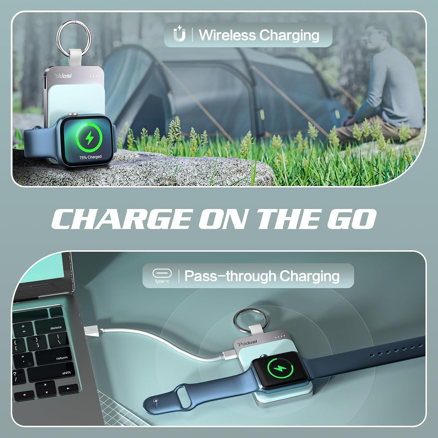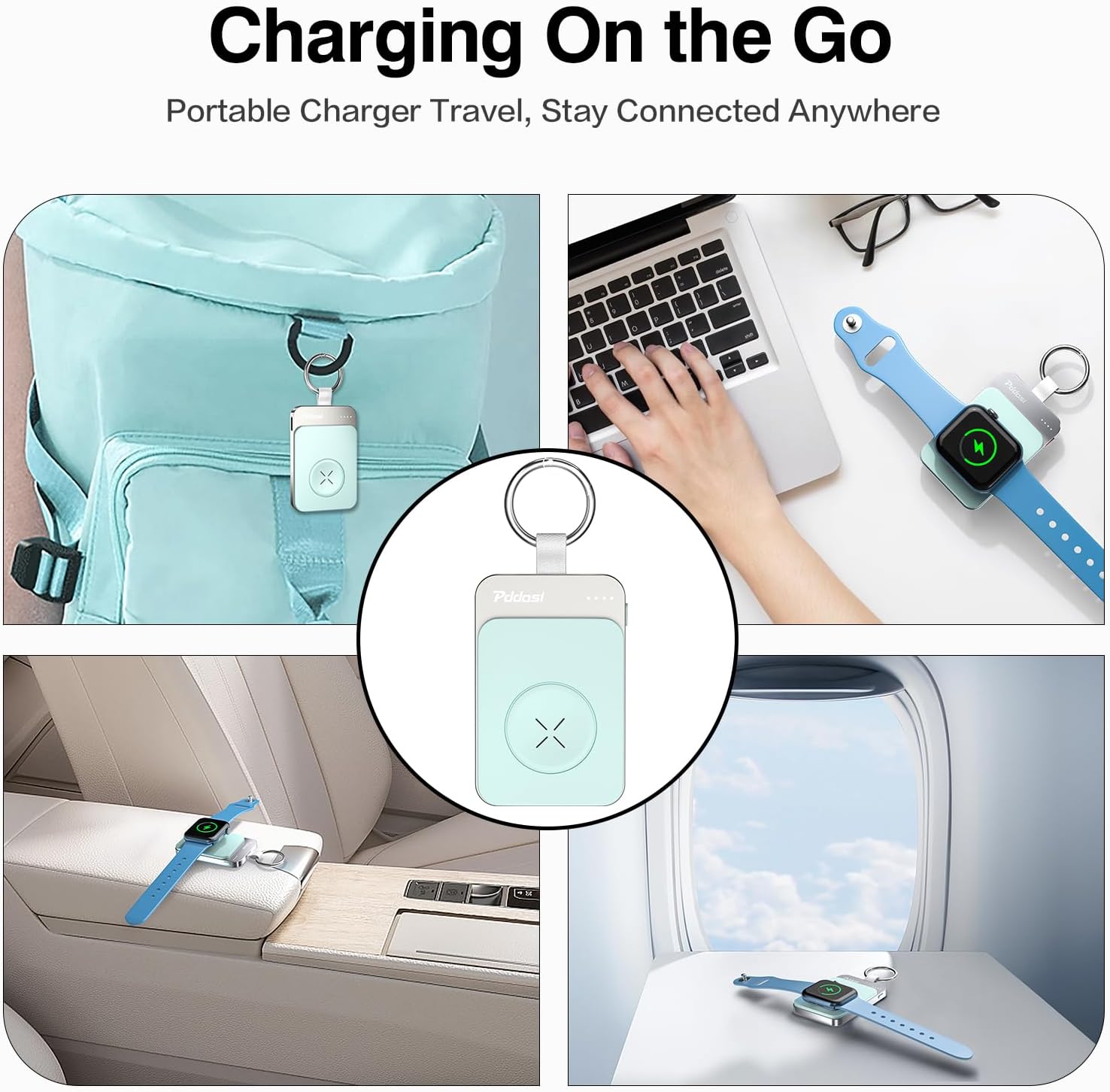 Cargador inalámbrico portátil para Apple Watch, cargador magnético de 1500 mAh para iWatch de viaje, cargador de reloj portátil, llavero de batería