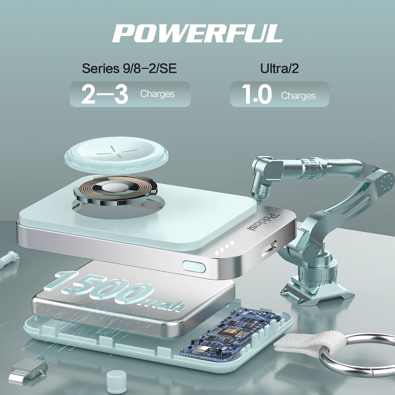 Capacidad de carga de 1500 mAh: con una batería potente integrada más grande, este banco de energía portátil suministrará suficiente energía en una emergencia cuando la batería del reloj está baja. Experimenta una carga rápida con nuestro cargador inalámbrico de vanguardia para Apple Watch, proporciona hasta 2-3 cargas para iWatch 1-9/SE, completamente cargado en 2-3 horas y una carga para Ultra, completamente cargado en 4 horas, 2 horas de carga completa del cargador iWatch, cable USB tipo C incluido., Carga magnética: este cargador inalámbrico portátil para Apple Watch está equipado con un potente módulo de adsorción magnética, conecta tu cargador portátil en el imán y la carga comenzará inmediatamente después del contacto, permanece conectado en cualquier lugar. Fácil de usar, simplemente haz clic en el botón lateral para iniciar la carga inalámbrica y haz doble clic para detener. 4 tipos de indicadores led muestran diferentes estados de la batería fácilmente (0–40%–60%–80%–100%)., Diseño de llavero portátil: nuestro cargador portátil para iWatch es perfecto para viajeros en movimiento. La batería externa de reloj de tamaño llave de automóvil es ligera de 1.8 onzas con grosor de solo 0.5 pulgadas, tamaño práctico y compacto es muy conveniente para llevar en tu bolso, bolsillo o una bolsa cuando estás en el trabajo, viajes, viajes de negocios, campamento. Un llavero de metal resistente permite una fácil fijación a tu bolsa o mochila, hace que tu viaje sea más fácil, Diseñado para Apple Watch: este bonito cargador de reloj portátil está diseñado solo para iWatch todas las series 9/8/7/6/5/4/3/2/SE/Ultra con 49/45/44/42/41/40/1.496 in, esencial para escapadas de fin de semana, viajes en automóvil, campamento y cualquier momento que quieras carga rápida a toda potencia. Este cargador de reloj inteligente es un regalo emocionante para hombres, mujeres, estudiantes, padres, compañeros de trabajo en cumpleaños, Navidad, aniversario y cualquier ocasión, Carga segura y fiable: el cargador portátil de reloj portátil está equipado con protección múltiple para protección contra sobrecorriente, sobretensión, cortocircuito y sobretemperatura, asegurando un entorno de carga seguro tanto para tu iWatch como para cargador portátil. Se apaga automáticamente después de 30 segundos sin carga, y soporta cargar tu reloj mientras carga este banco de energía., Paquete bien envuelto: aspecto elegante y dinámico con curvas y líneas suaves, el proceso mate fino presenta un tacto delicado y suave, colores de tendencia de moda para añadir un sentido de estilo y personalidad al producto. Como cargador de respaldo, di adiós a la ansiedad por batería baja y mantén tu reloj cargando sobre la marcha., Nota: cárgalo completamente antes de usarlo la primera vez después de recibirlo, 2 horas de carga completa del cargador del iWatch, el cable USB tipo C está incluido.
