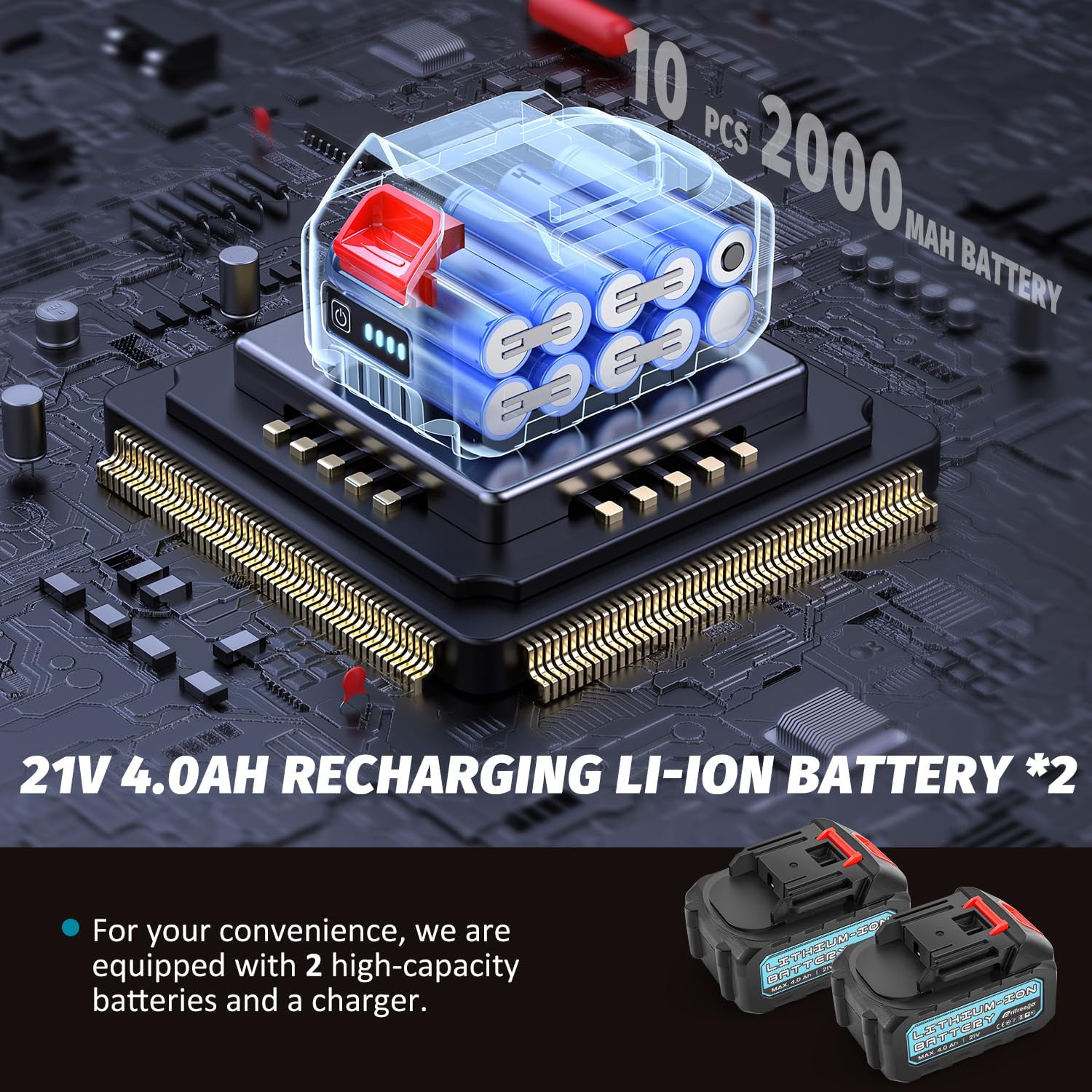 Cepilladora eléctrica de 21 V, cepilladora recargable inalámbrica con dos baterías de litio de 4.0 Ah y recargador, herramienta de carpintería sin