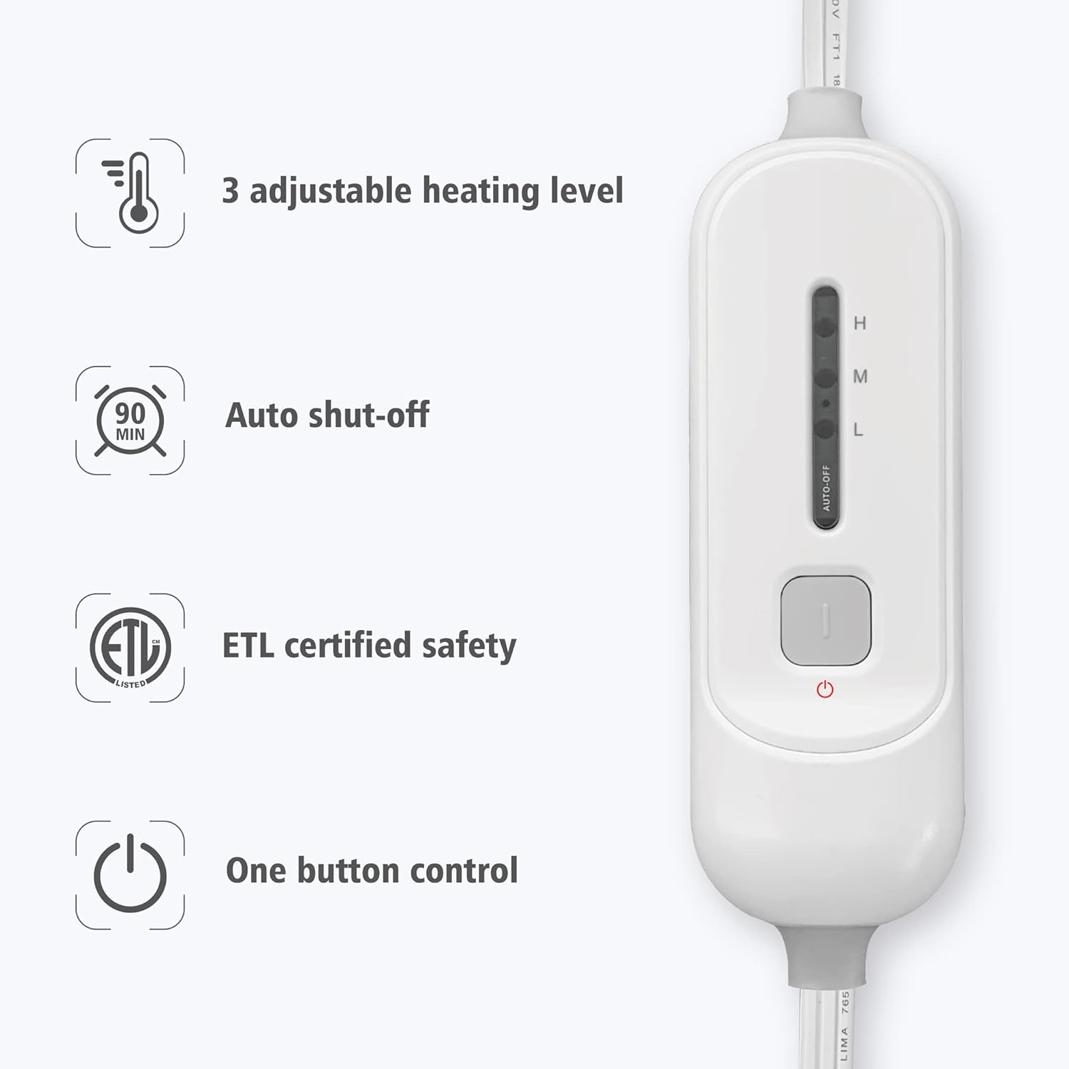 🔥Calefacción rápida y segura🔥La almohadilla térmica Comfier para cuello y hombros puede proporcionarte un calor distribuido uniformemente en segundos, cuenta con 3 ajustes de calefacción (100 ℉ a 150 ℉) para satisfacer tus diferentes necesidades; esta almohadilla térmica trasera ha pasado la certificación ETL y también tiene protección contra sobrecalentamiento y función de temporizador de apagado automático de 90 minutos, puedes usarla con confianza., 🔥Almohadilla térmica grande: la almohadilla térmica Comfier (24 x 33 pulgadas) puede cubrir completamente tus hombros, espalda y cintura para mantenerte caliente en días fríos; el diseño de cuello alto puede cubrir bien el cuello y reducir los dolores, la rigidez y el dolor de la columna vertebral, los músculos y las articulaciones., 🔥Lavable y portátil: la almohadilla térmica trasera Comfier es ligera y fácil de transportar. Es duradero y fácil de mantener con controlador desmontable y cable. Puedes desmontar el controlador y lavar la almohadilla térmica a máquina o a mano para mantenerla limpia, suave y utilizable durante años., Franela súper suave: la almohadilla térmica cómoda para el dolor de espalda está hecha de tela de franela súper suave que te proporciona la máxima comodidad y el tacto corporal. Las envolturas térmicas eléctricas pueden proporcionar una distribución uniforme del calor para calentar el cuerpo, aliviar el dolor muscular, mejorar la circulación sanguínea y mejorar el sueño., 🔥Fácil de usar y regalo ideal🔥 Es fácil de operar utilizando el controlador. Esta almohadilla térmica es un regalo ideal para papá, mamá, hombres, mujeres y amigos. Por cualquier razón, si esta almohadilla caliente no cumple con tus expectativas, devuélvelo para un reembolso completo dentro de los 30 días.