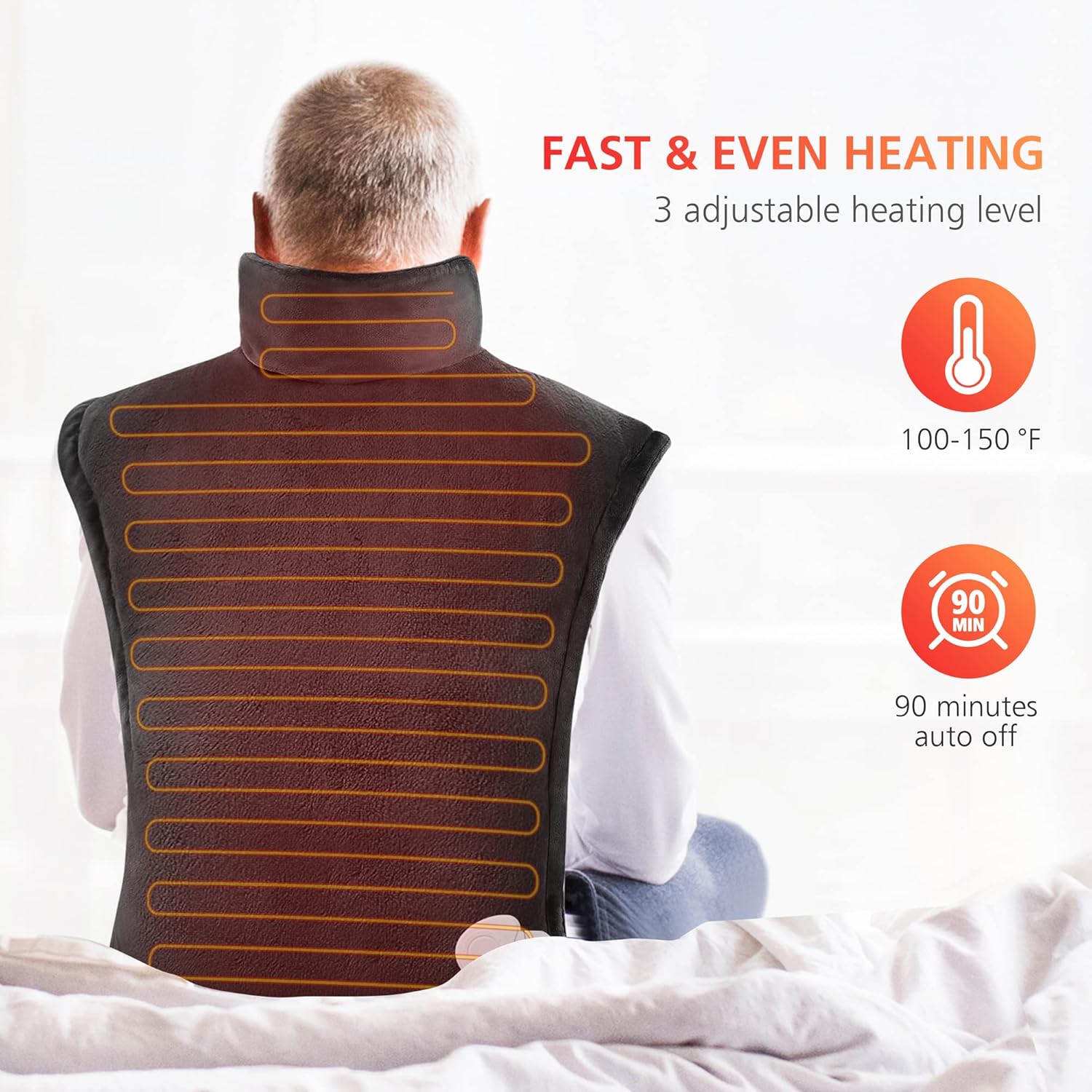 COMFIER Almohadilla térmica grande para aliviar el dolor de espalda, regalos para él, almohadilla térmica para cuello y hombros, almohadillas