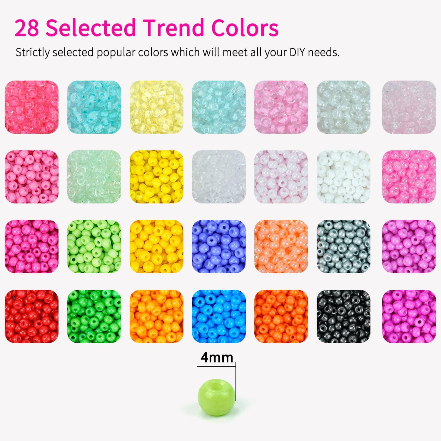 Cuentas de cristal de 0.157 pulgadas, 28 colores, 6500 cuentas de semillas 60 para hacer pulseras, 1000 cuentas de letras, para nombres, pulseras de