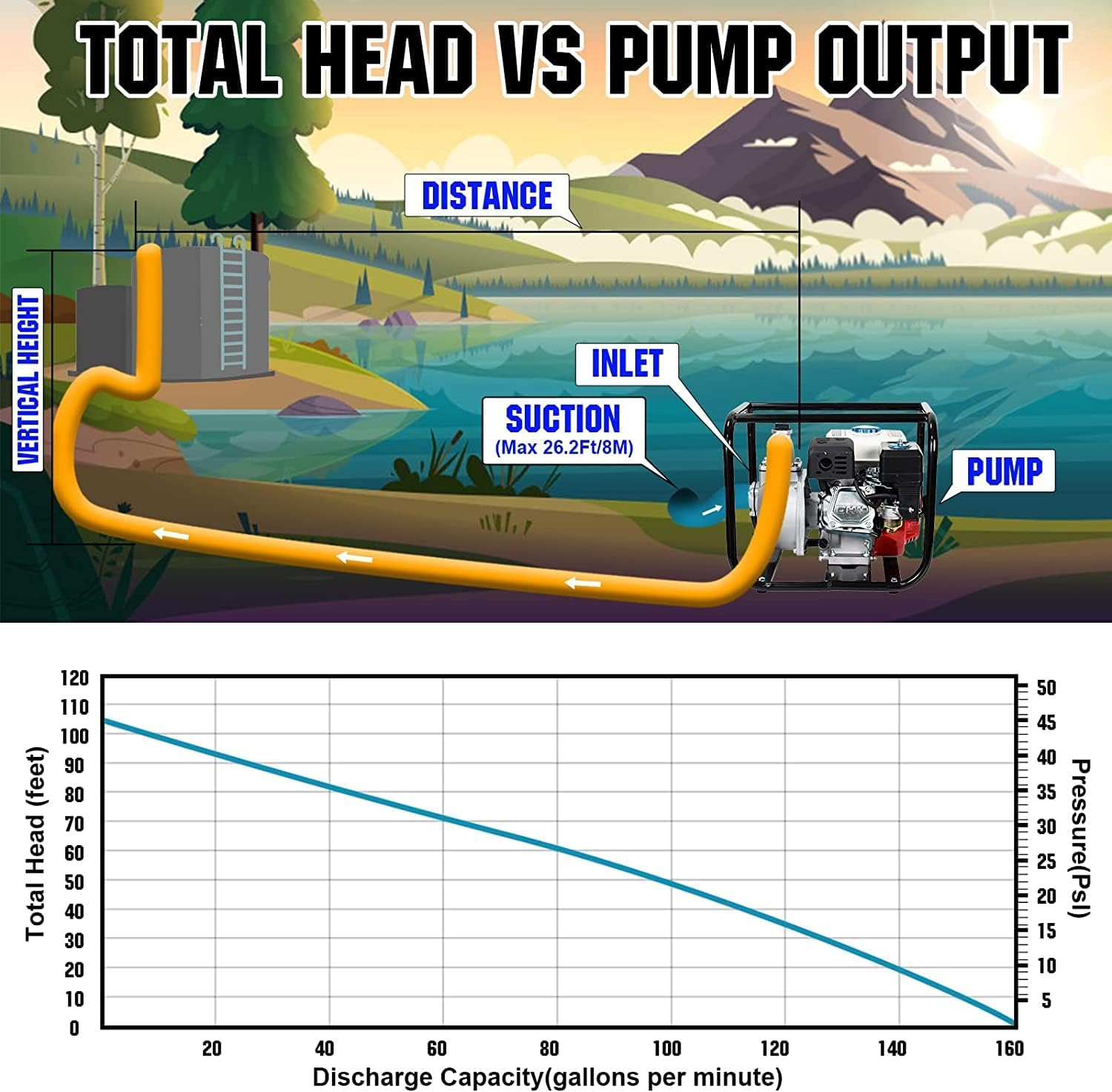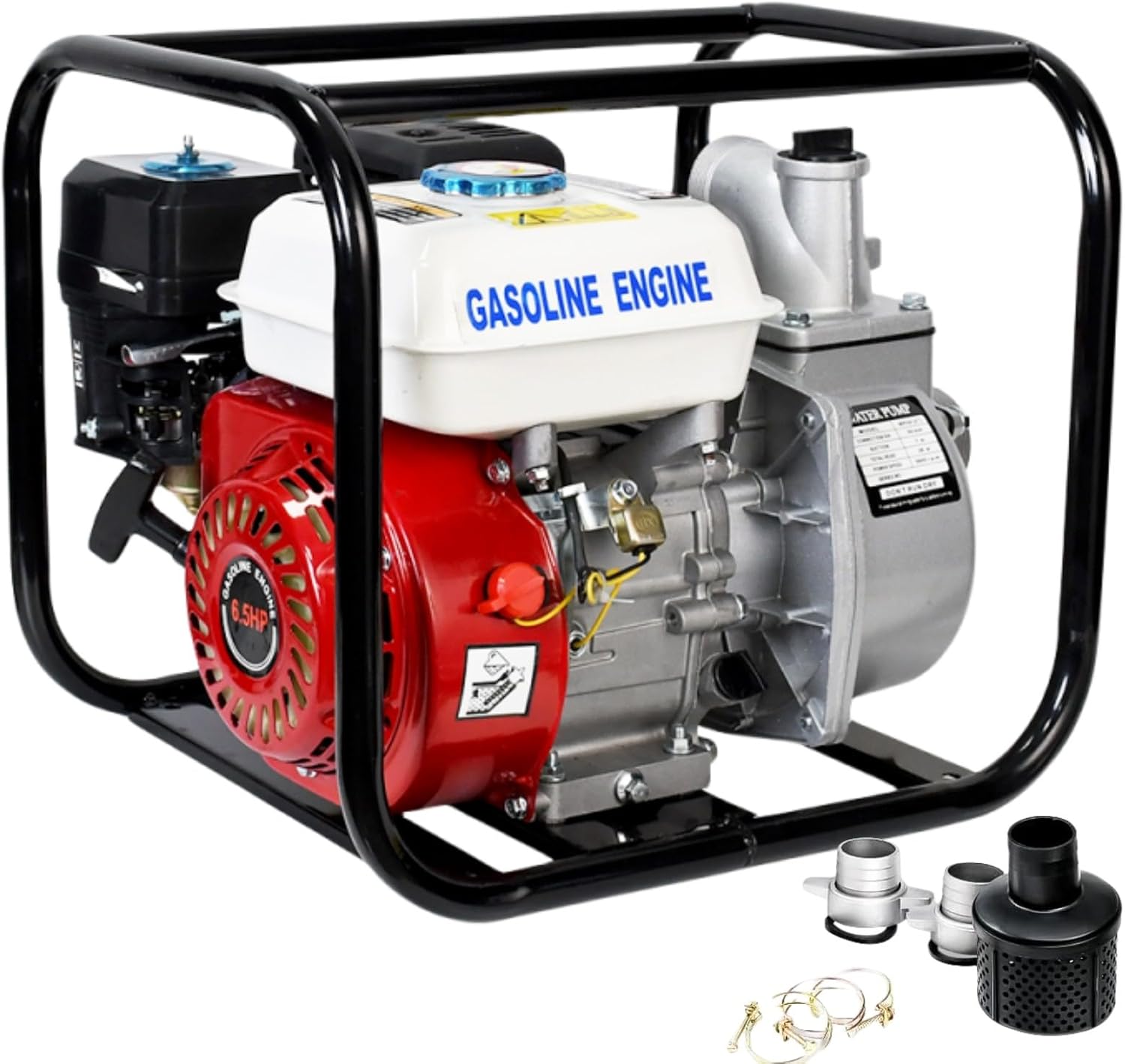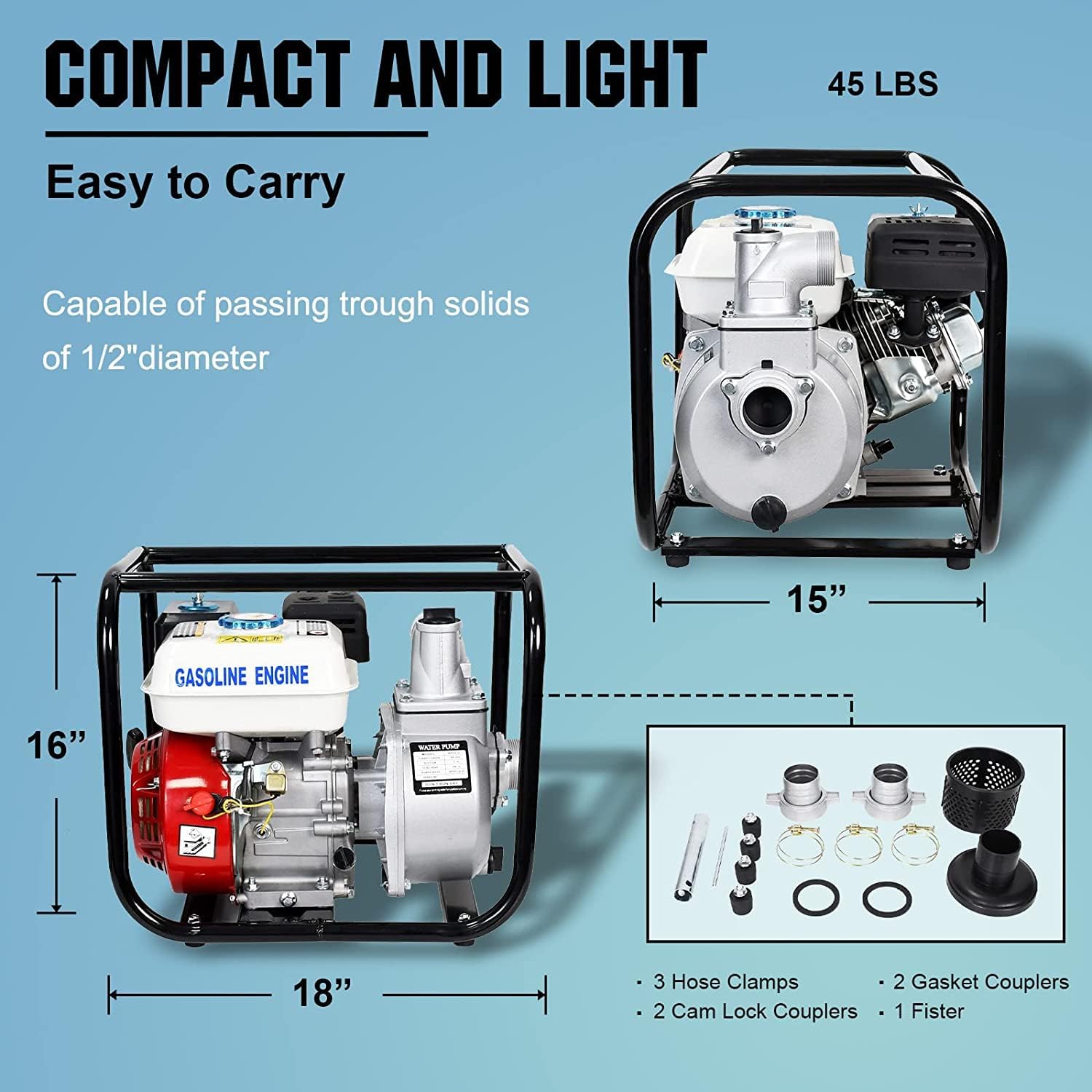 Funciona muy bien: eficiente en combustible, funcionamiento de alto rendimiento: el diseño de árbol de levas de precisión ofrece una sincronización precisa de la válvula y una superposición óptima de la válvula para una mejor eficiencia de combustible, diseño OHV para una mayor eficiencia y una transferencia de potencia óptima., Buen valor: motores 6.5HP 212CC confiabilidad y rendimiento superiores. Mueve mucha agua hasta 158 galones por minuto, incluso aspira un poco de lodo, pero recomendaría, para fines de longevidad, tratar de evitar esa situación. Cuanta más agua haya en la mezcla, mejores resultados. Se recomienda limpiar el área de la bomba después. Es lo suficientemente fácil de limpiar., Fácil de usar y mantener: control de acelerador simple, caja de control fácil, conveniente, resistente, bujía de fácil acceso, tanques de combustible grandes, tapón de combustible tipo automóvil., APLICACIONES COMUNES: Riegue acres de césped, jardín y uso general, eliminación de agua de estanque de tierra limpia semibasura comunitaria., Confiabilidad de calidad: el nuevo revestimiento de la cámara del carburador y el filtro del carburador ayudan a proteger, manguito del cilindro de hierro fundido, contra impurezas de combustible, válvula de combustible.