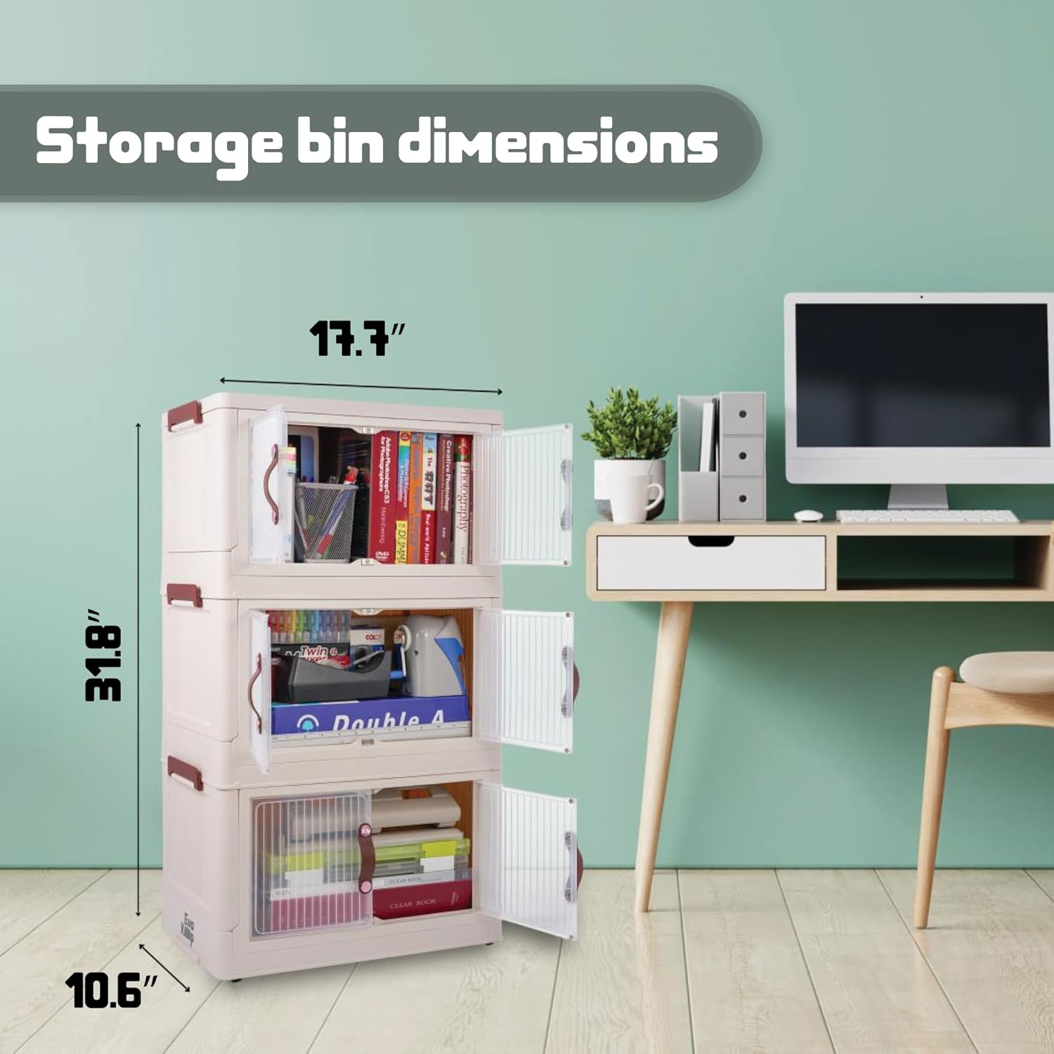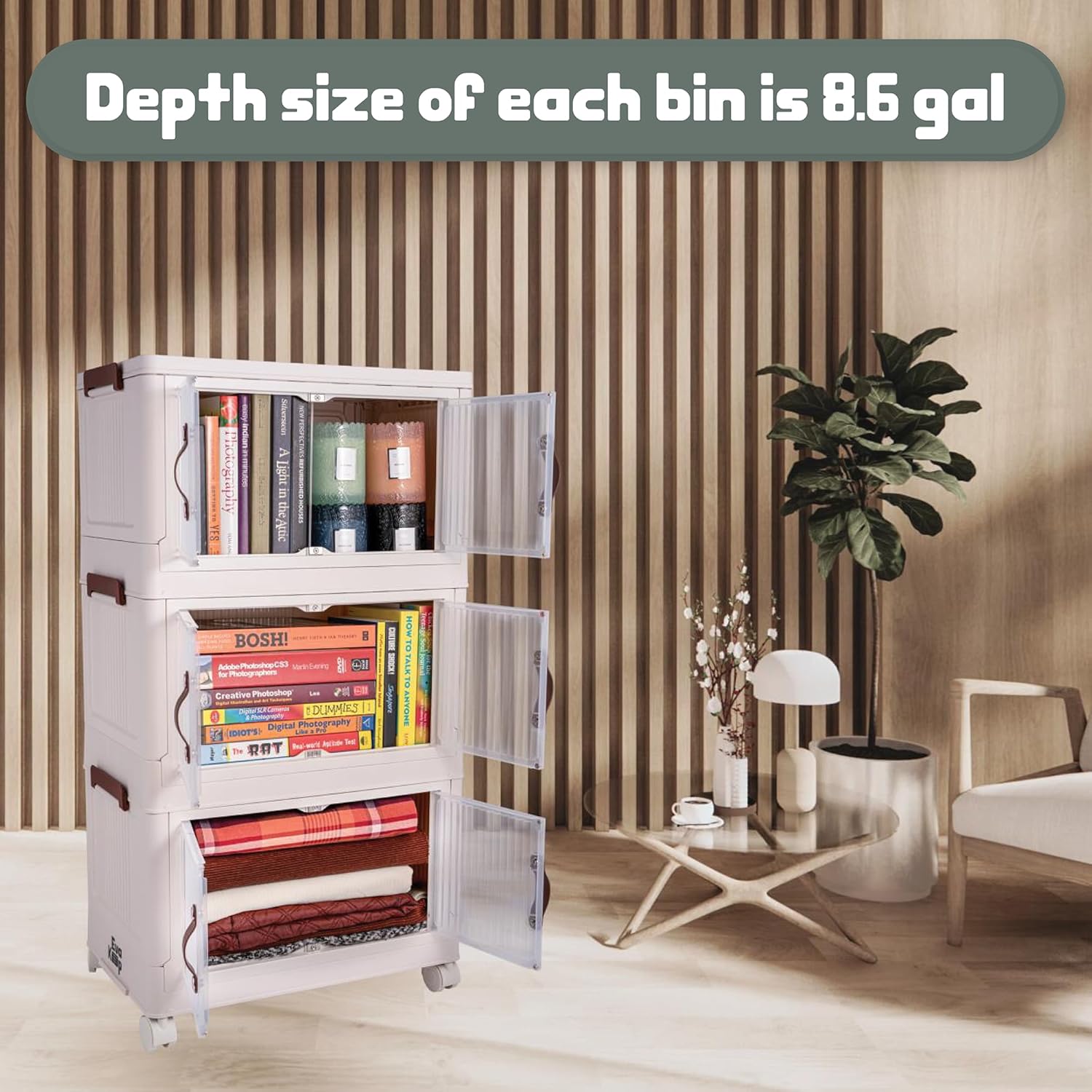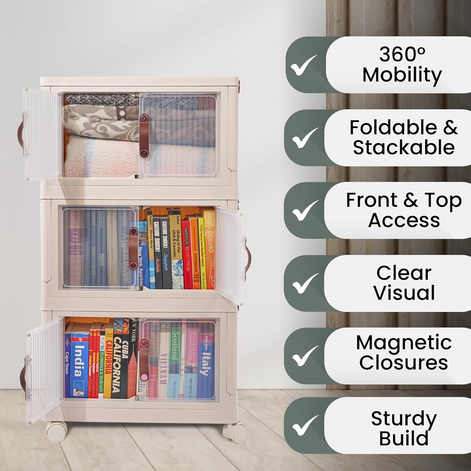 Evakeep – Contenedores de almacenamiento plegables de 3 niveles, contenedores de almacenamiento apilables con puertas dobles transparentes y ruedas,