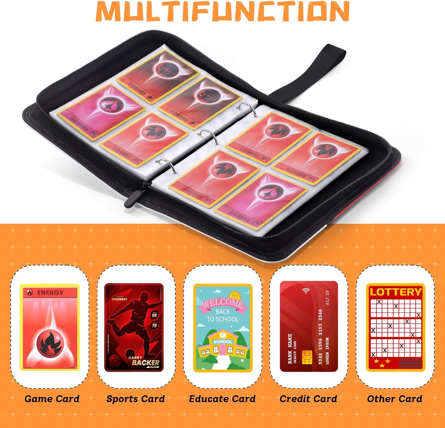 FAMOMI Carpeta de tarjetas de 4 bolsillos, coleccionista de tarjetas coleccionables con 50 fundas extraíbles, 400 bolsillos para tarjetas portátil