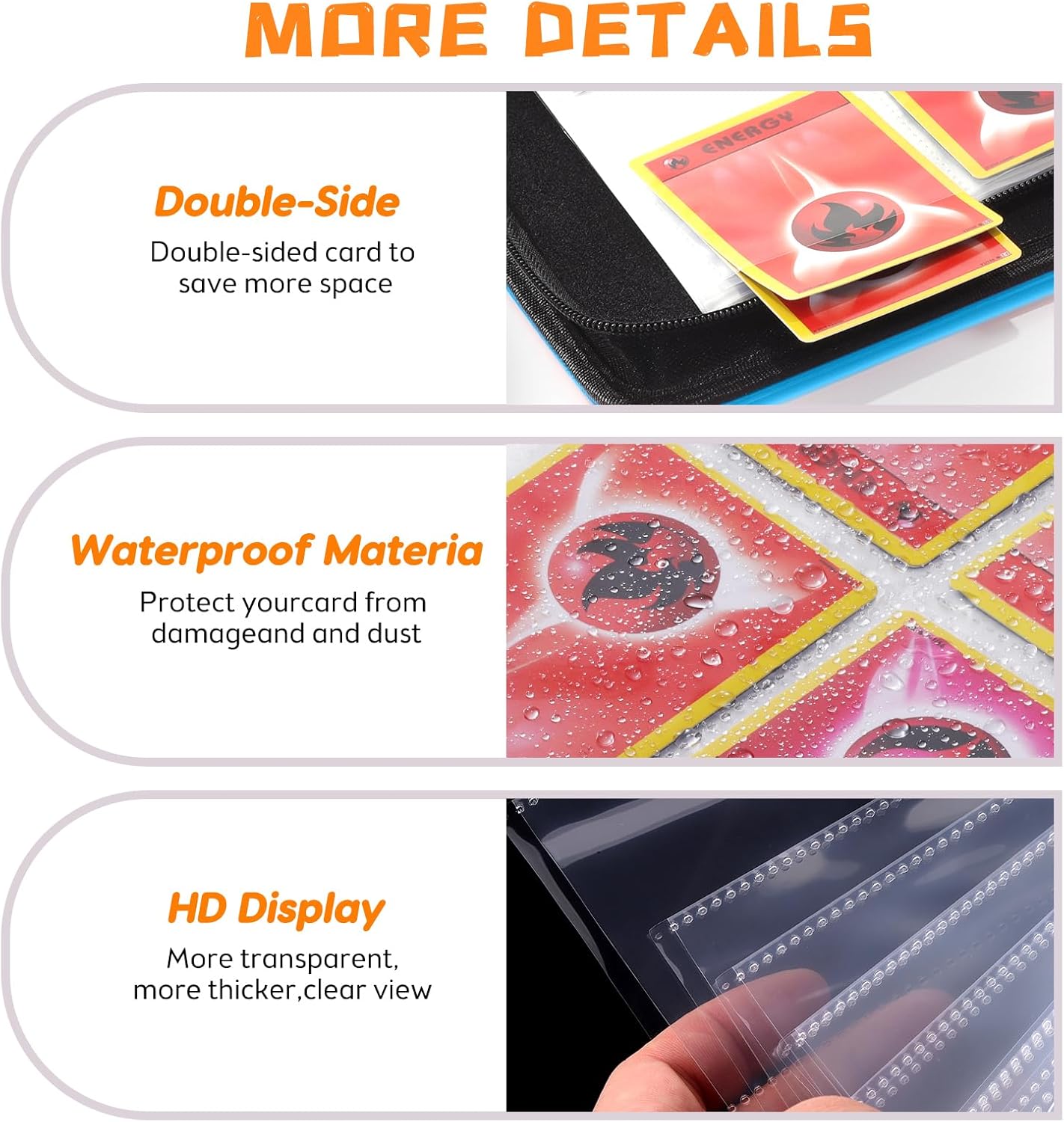 ⚡【Amplia capacidad de almacenamiento】Tamaño: nuestra carpeta de tarjetas te permite almacenar y mostrar hasta 400 tarjetas, asegurando que tu colección permanezca organizada y de fácil acceso. Con 50 fundas de doble cara, cada una capaz de contener 8 tarjetas, cada tamaño de bolsillo: 2.63 x 3.66 pulgadas. Mantener las tarjetas nuevas y sin daños. ⚡【Protección de alta calidad】La superficie de nuestra carpeta de tarjetas está hecha de material de piel sintética, ofreciendo una excelente protección contra el agua, el polvo y el desgaste. El bolsillo para tarjetas está hecho de material transparente de alta definición, lo que te permite verlo con claridad. Sus valiosas tarjetas permanecerán seguras y bien conservadas, listas para ser exhibidas o intercambiadas. ⚡【Seguro y duradero】Equipado con una fuerte cremallera de metal de doble cara, nuestra carpeta de tarjetas garantiza que tus tarjetas se almacenen de forma segura y no se caigan accidentalmente. La artesanía de alta calidad garantiza una durabilidad duradera, incluso con un uso frecuente. ⚡【Compatibilidad versátil】El libro de carpetas de tarjetas es compatible con varias tarjetas de tamaño estándar, por lo que es adecuado para una amplia gama de coleccionables y juegos. Ya sea para tarjetas deportivas, cartas de juego, juegos de cartas comerciales, tarjetas de béisbol, tarjetas de fútbol, tarjetas de crédito, juegos de cartas MTG, juegos de cartas Yu-Gi-Oh, esta carpeta es la elección perfecta. ⚡Regalo perfecto para niños: ideal para ocasiones especiales como Navidad, cumpleaños o Halloween, nuestra carpeta de tarjetas es un fantástico regalo para niños. Su atractivo diseño y funcionalidad cautivarán su interés y brindarán una experiencia encantadora para organizar y mostrar sus colecciones de tarjetas.