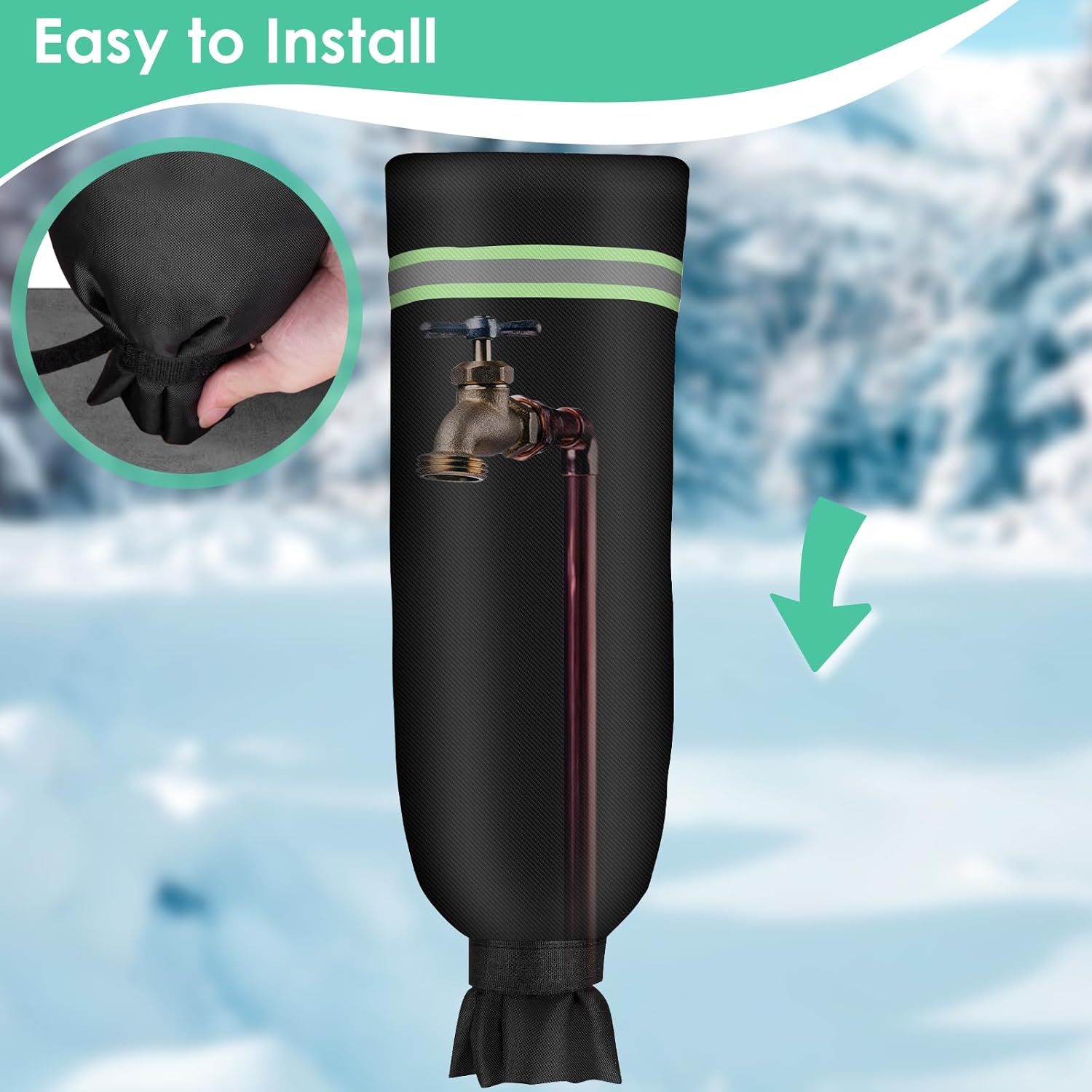 [Evita los grifos congelados]: nuestras cubiertas de boquilla de agua para exteriores están diseñadas específicamente para proteger tus grifos y tuberías al aire libre de la congelación y el estallido en condiciones climáticas invernales adversas. La gruesa capa de aislamiento proporciona un excelente rendimiento de aislamiento, asegurando que tu grifo funcione correctamente y permanezca intacto durante todo el invierno. Con esta cubierta protectora, ya no tendrá que pagar costosos costos de reparación causados por tuberías congeladas., [Más grande, más resistente y más aislado]: los aisladores de grifos para exteriores son más grandes que las cubiertas tradicionales, proporcionando una protección completa para grifos exteriores y tuberías expuestas. El diseño de protección de tres capas consta de un material de aislamiento premium y dos capas de revestimiento impermeable Oxford 420D. Nuestro revestimiento impermeable Oxford es más grueso y más eficaz que el revestimiento 210D que se encuentra comúnmente en el mercado. La tela Oxford también es más duradera y se puede reutilizar varias veces., Tira reflectante y fácil identificación: nuestra cubierta para grifo de agua es de color negro, resistente a la suciedad y fácil de limpiar. El color negro también es mejor para absorber el calor, proporcionando una mejor protección para las cubiertas de grifo para el invierno. Además, hay una tira reflectante en la cubierta de la manguera al aire libre, que te permite encontrar rápidamente el grifo incluso por la noche. Las cubiertas de tuberías para exteriores utilizan un cierre de velcro para sujetar de forma segura la cubierta, evitando que los perros u otros animales se la quiten., [Amplia aplicación para varios grifos]: nuestro grifo de invierno para exteriores es adecuado para varios grifos estándar de césped de jardín, grifos de patio, grifos al aire libre, bocas de incendios, grifos de camping RV y mucho más. Su uso no requiere ninguna instalación montada en la pared como cubiertas de grifos de espuma, ni requiere herramientas. Su instalación y desmontaje solo tardan unos segundos y son muy convenientes. Después del desmontaje, se puede almacenar plano y no ocupa espacio como las cubiertas de espuma para grifos., [Satisfacción 100% garantizada]: antes de comprar, mide tu grifo para asegurarte de que nuestra funda para grifo de calcetín se ajuste perfectamente. Aposhion nos dedicamos a proporcionar la cubierta del grifo de alta calidad y un servicio posventa excepcional. Si por alguna razón no estás satisfecho con nuestra cubierta de grifo, ponte en contacto con nosotros inmediatamente para una devolución, reemplazo o reembolso completo.
