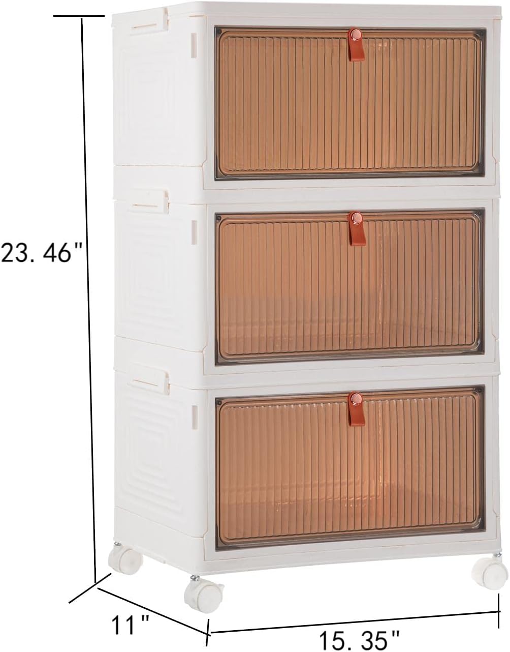 Gabinetes de almacenamiento de plástico de 3 niveles, contenedores de almacenamiento apilables de 23 cuartos de galón, organizador de contenedores