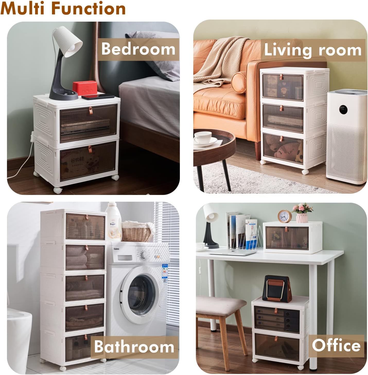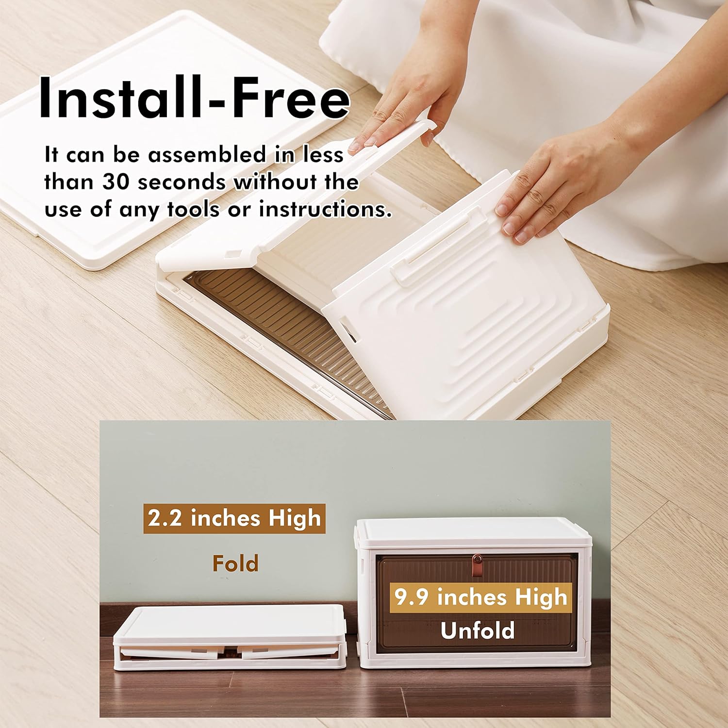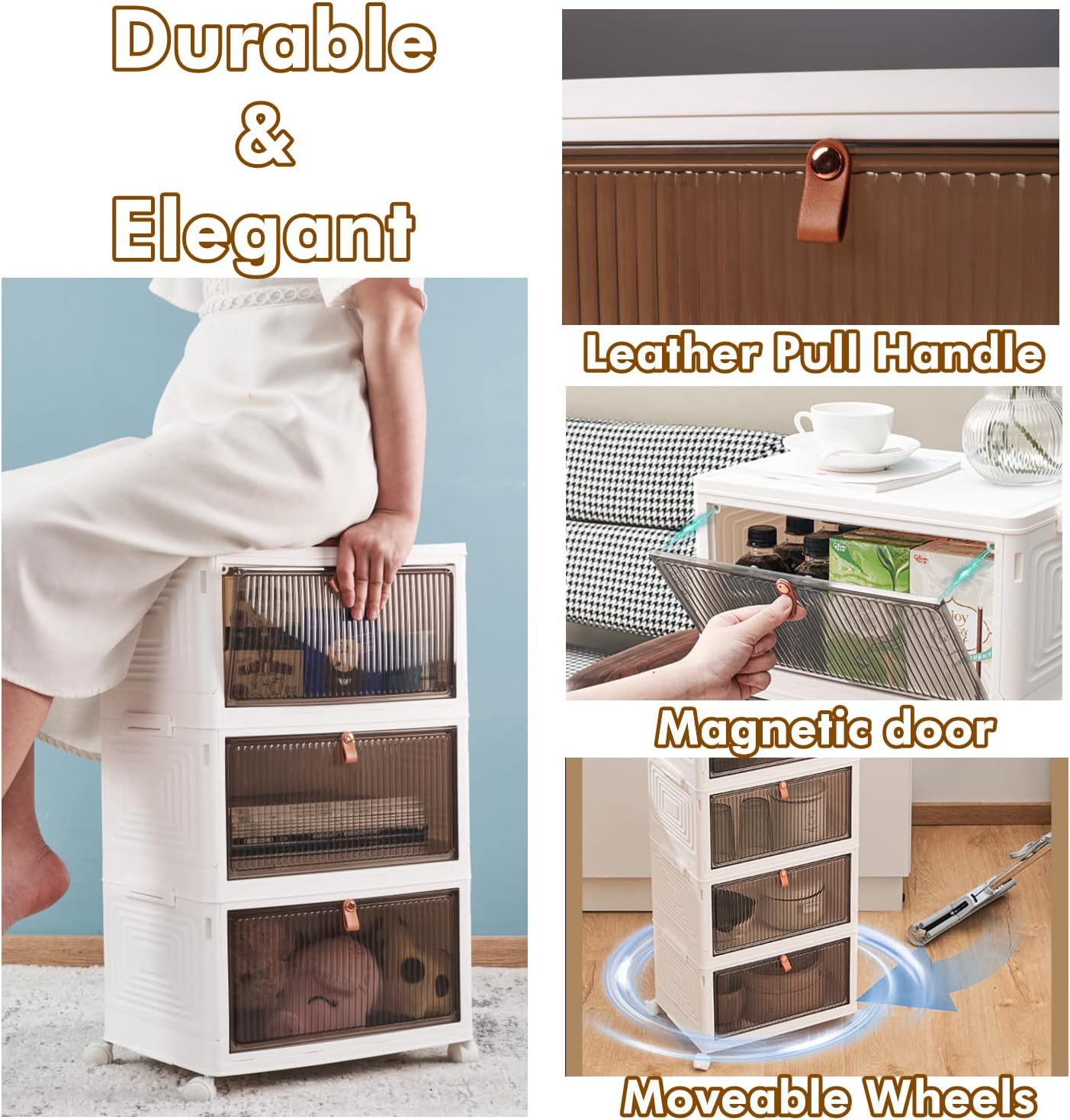 【Plegables y sin instalación】Los contenedores de almacenamiento MUMUPACK con tapas son un contenedor de almacenamiento plegable y sin instalación. Se puede montar sin el uso de herramientas o instrucciones. Cuando no está en uso, también se puede plegar fácilmente Fácil pero eficaz. Solo una tapa por producto, 【Móvil y capacidad máxima de 69 cuartos de galón】Las cajas de almacenamiento con cuatro ruedas en la parte inferior hacen que sea flexible para moverse a donde quieras moverte, incluso si está llena de cosas. Cada producto tiene una sola tapa. Este es un ahorro de espacio para una familia, un almacenamiento de ropa de armario para mantener tu hogar ordenado., Apilables y duraderos: los contenedores de almacenamiento plegables de plástico están hechos de material plástico de alta calidad, tienen paneles más gruesos y fuertes, durarán muchos años. Puede soportar hasta 110 libras de peso., Mira claramente lo que necesitas: la caja de almacenamiento plegable con potente puerta de interruptor magnético, abre la puerta sin esfuerzo y ciérrala firmemente. El diseño de panel translúcido hace que sea fácil identificar los artículos en el interior sin parecer desordenados. La puerta translúcida marrón y el carro de cuero lo convierten en un mueble de almacenamiento hermoso y elegante., Multifunción: los contenedores de almacenamiento son versátiles que se pueden utilizar como organizador de baño, organización de cocina, organizador de armario, contenedor de almacenamiento de alimentos para perros, contenedores de almacenamiento de alimentos, organización de lavandería, organizador de automóvil, almacenamiento de dormitorio, organizador de aperitivos, contenedores de libros, almacenamiento de sombreros.