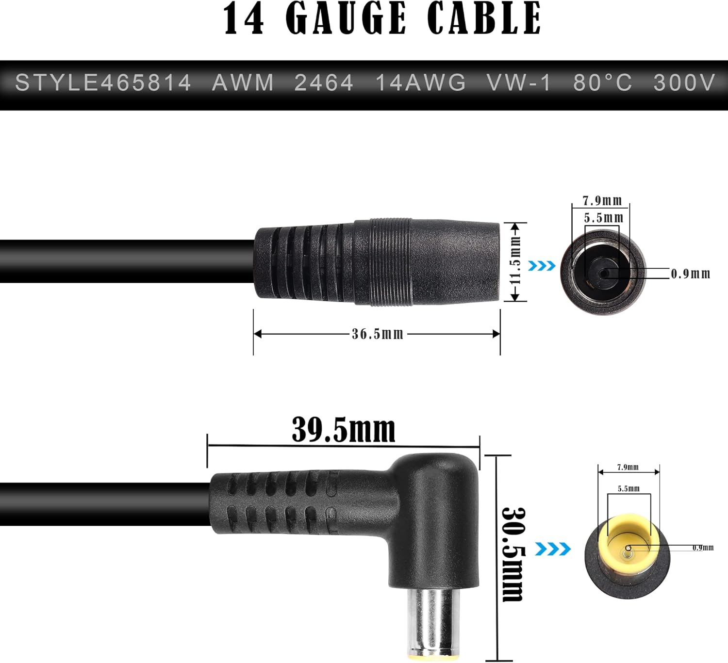 GINTOOYUN 2 cables de alimentación DC7909 de 14AWG DC7.0.354 inx0.035 in en ángulo recto 90 grados macho a CC 0.311 inx0.035 in hembra cable de