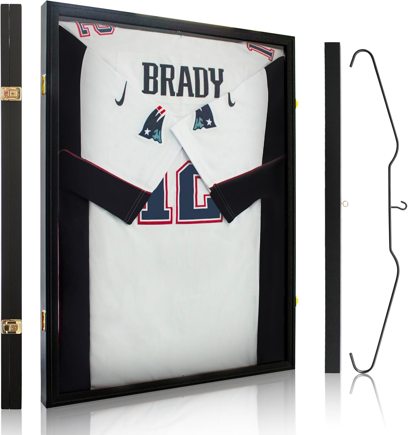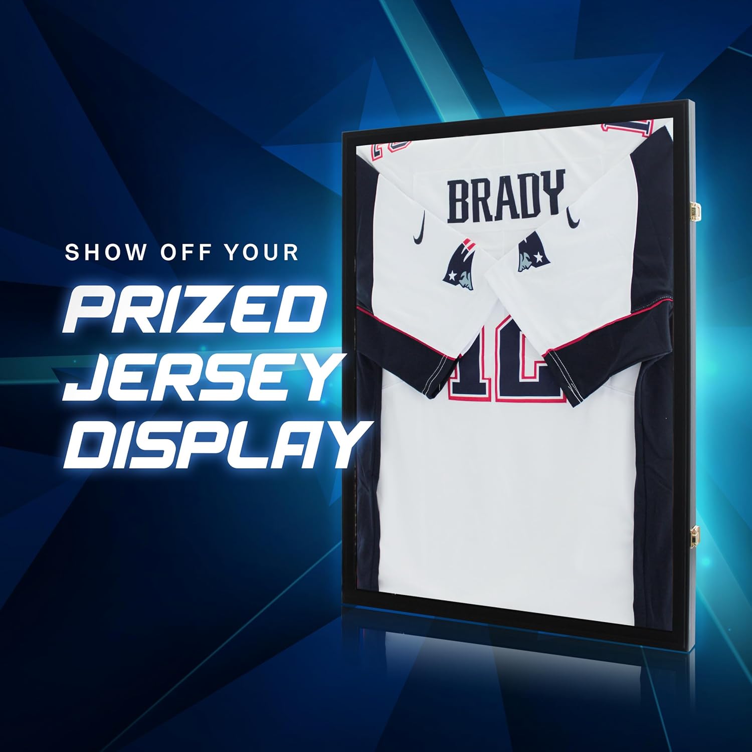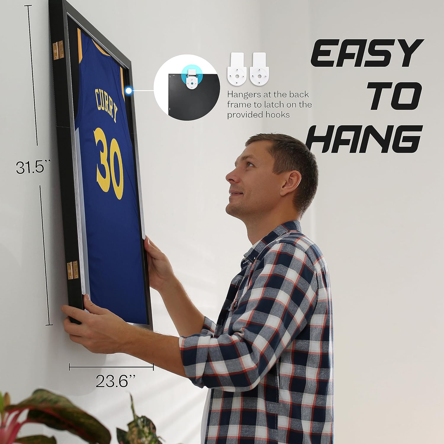 Durabilidad excepcional: fabricada con madera de alta calidad y con 98% de protección UV y 92% acrílico de transparencia, esta vitrina con marco de jersey (31.25 x 23.25 x 1.5 pulgadas) garantiza que tus preciados recuerdos permanezcan protegidos y en perfectas condiciones durante años, Ajuste universal: diseñado para adaptarse a camisetas de todos los tamaños, desde jóvenes hasta adultos, nuestro marco de exhibición proporciona el escaparate perfecto para baloncesto, hockey, caja de sombra para jersey, por lo que es ideal para fanáticos de todas las edades, Opciones de visualización versátiles: elige entre tres métodos de visualización versátiles: el clásico colgador de madera, el elegante colgador de metal o la opción de tablero de pines, para mostrar sin esfuerzo tus camisetas favoritas dentro del marco de la caja de sombra de jersey, añadiendo un toque personalizado a tu sala de deportes, oficina o cueva de hombre, Regalo perfecto para los entusiastas del deporte: ya sea que estés comprando para ti o para un compañero fanático de los deportes, esta camiseta famosa por exhibir en la pared es un regalo inolvidable. Celebra momentos especiales y crea recuerdos duraderos con este maravilloso y visualmente impresionante regalo, Fácil instalación: con los accesorios de montaje incluidos e instrucciones paso a paso (idioma español no garantizado), configurar tu vitrina de la NFL es muy fácil. Transforma cualquier pared en una galería de recuerdos deportivos de forma rápida y sin complicaciones, lo que te permite disfrutar de tus preciadas camisetas en poco tiempo