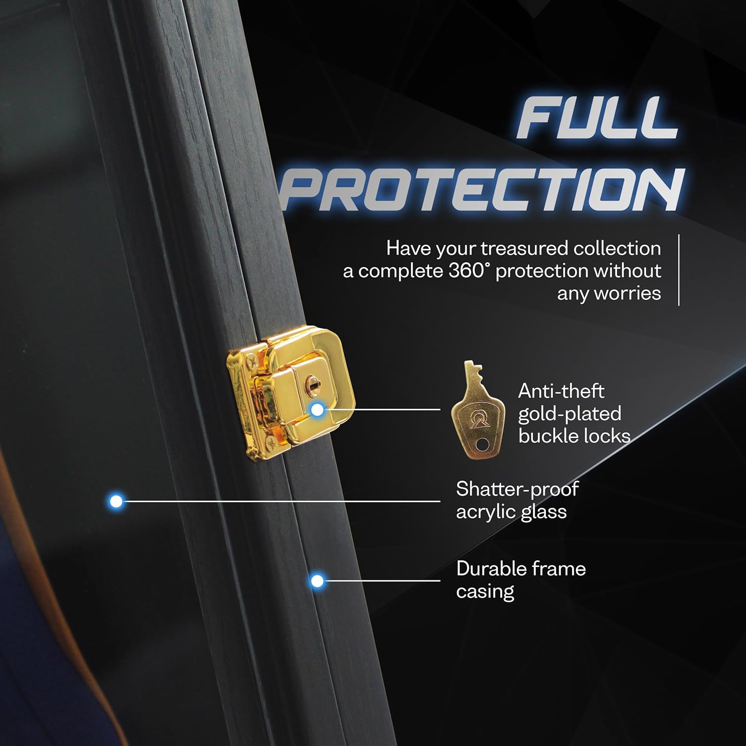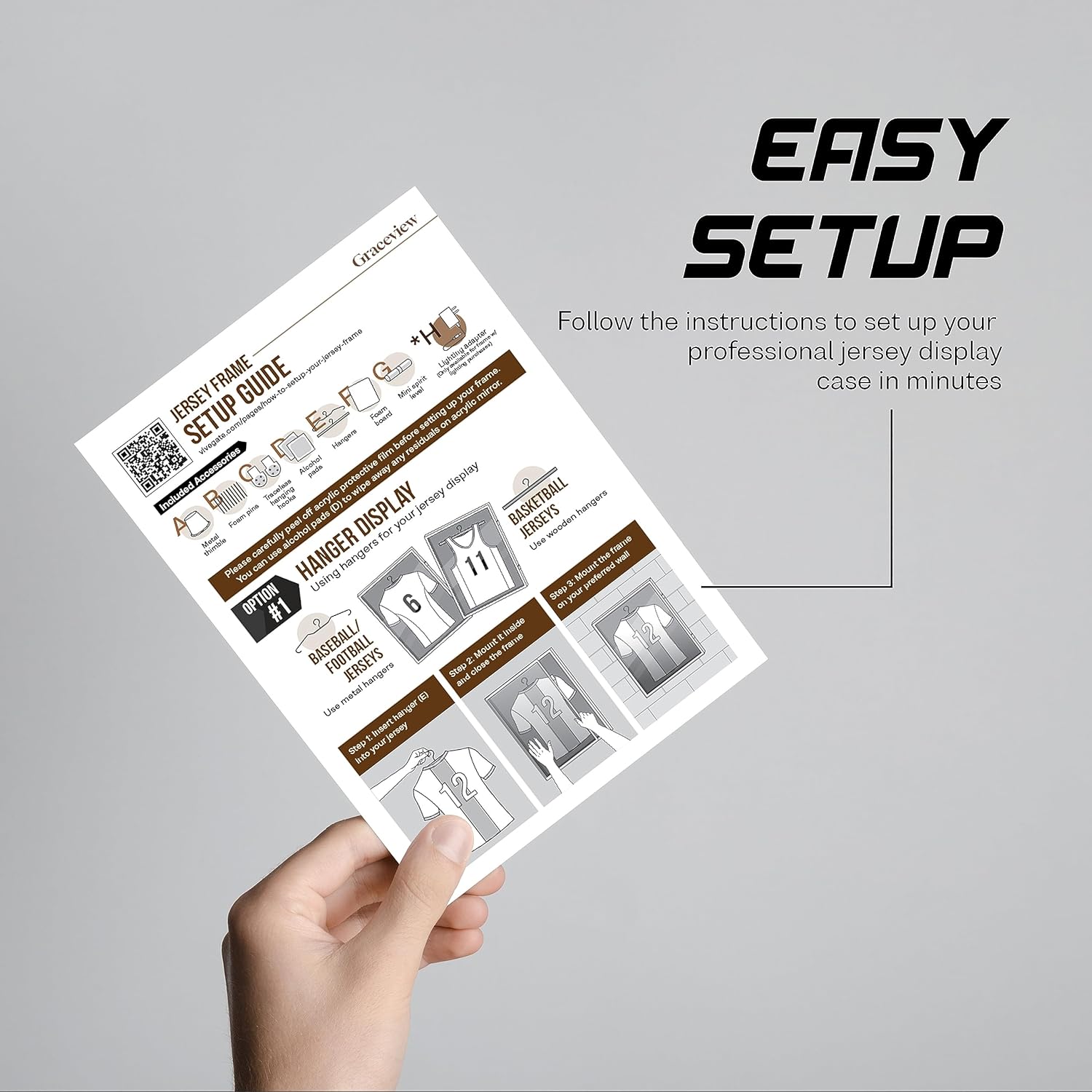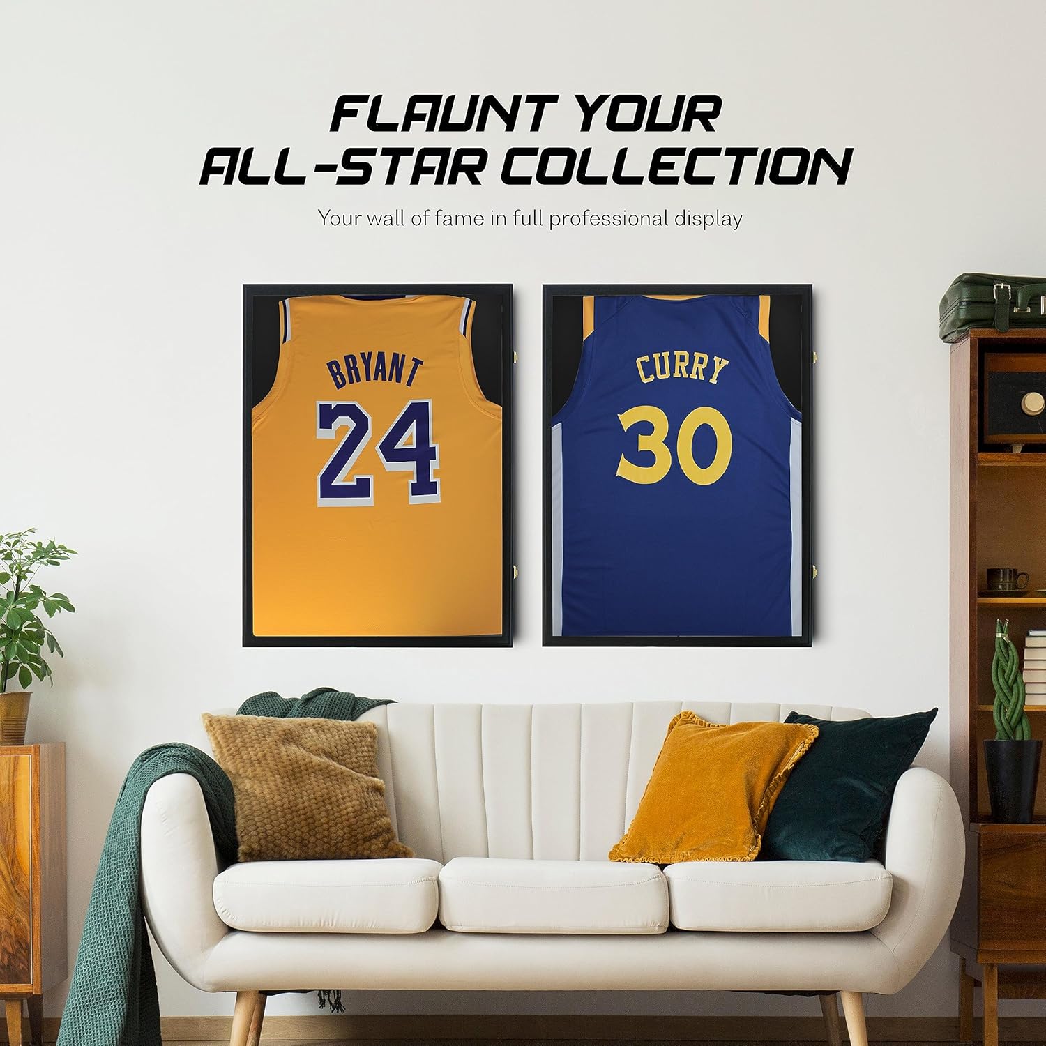 Durabilidad excepcional: fabricada con madera de alta calidad y con 98% de protección UV y 92% acrílico de transparencia, esta vitrina con marco de jersey (31.25 x 23.25 x 1.5 pulgadas) garantiza que tus preciados recuerdos permanezcan protegidos y en perfectas condiciones durante años, Ajuste universal: diseñado para adaptarse a camisetas de todos los tamaños, desde jóvenes hasta adultos, nuestro marco de exhibición proporciona el escaparate perfecto para baloncesto, hockey, caja de sombra para jersey, por lo que es ideal para fanáticos de todas las edades, Opciones de visualización versátiles: elige entre tres métodos de visualización versátiles: el clásico colgador de madera, el elegante colgador de metal o la opción de tablero de pines, para mostrar sin esfuerzo tus camisetas favoritas dentro del marco de la caja de sombra de jersey, añadiendo un toque personalizado a tu sala de deportes, oficina o cueva de hombre, Regalo perfecto para los entusiastas del deporte: ya sea que estés comprando para ti o para un compañero fanático de los deportes, esta camiseta famosa por exhibir en la pared es un regalo inolvidable. Celebra momentos especiales y crea recuerdos duraderos con este maravilloso y visualmente impresionante regalo, Fácil instalación: con los accesorios de montaje incluidos e instrucciones paso a paso (idioma español no garantizado), configurar tu vitrina de la NFL es muy fácil. Transforma cualquier pared en una galería de recuerdos deportivos de forma rápida y sin complicaciones, lo que te permite disfrutar de tus preciadas camisetas en poco tiempo