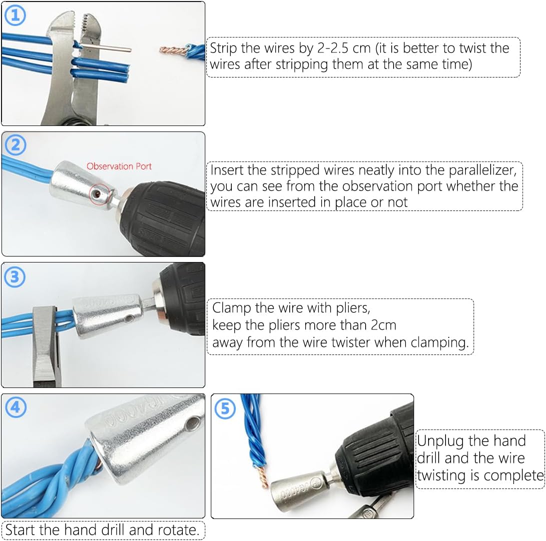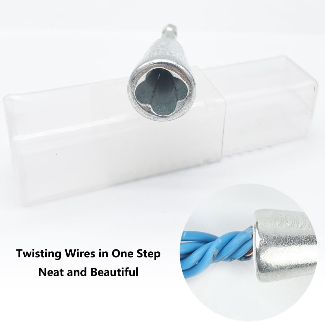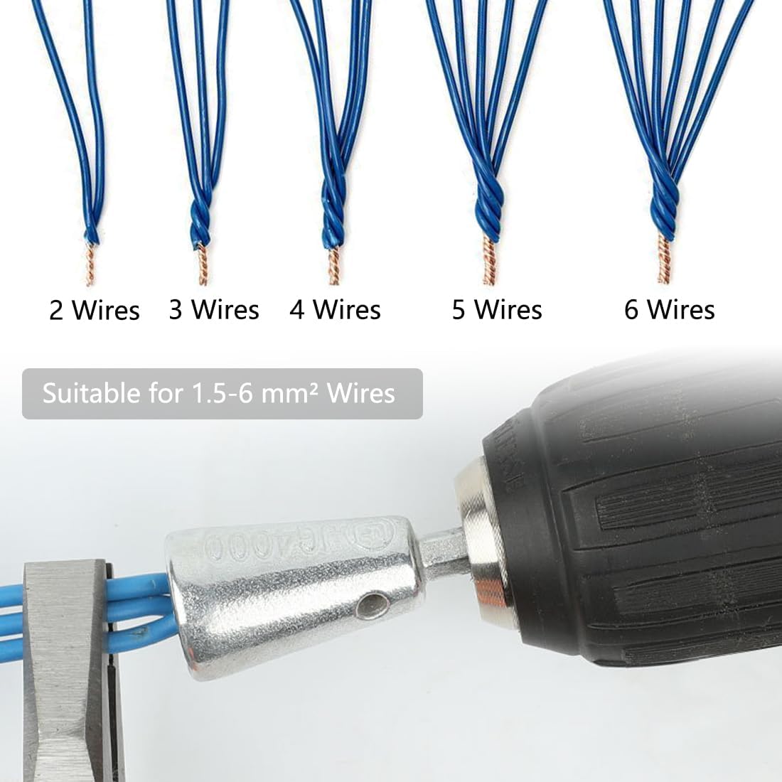 Especializado para electricistas que giran la herramienta para cables de 1,5/2,5/4/0.236 in cuadrados. Puede conectar cables de 2 a 6 vías a la vez, línea de conexión muy conveniente, segura y eficiente. El tornado de alambre está hecho de acero inoxidable de alta dureza con enfriamiento a alta temperatura para una alta dureza y resistencia al desgaste. Vida útil más larga y se puede conectar más de 20000 veces Tuerca de alambre Twister con un vástago hexagonal de 1/4 de pulgada, se puede conducir fácilmente con un taladro con cable o inalámbrico sin ningún equipo o accesorios adicionales. Puede quitar espontáneamente el aislamiento del cable antes de torcerlos. Haz el trabajo en la menor cantidad de pasos. La herramienta de torsión de cables puede girar y envolver el cable al mismo tiempo; puede ayudar a aumentar la productividad y evitar dañar los dedos y aliviar la fatiga. Fácil de operar: Todo lo que necesita hacer es instalar la herramienta de torsión de alambre en el taladro eléctrico, iniciar el taladro eléctrico, luego puede terminar el trabajo fácilmente. Al iniciar el taladro eléctrico, la velocidad del taladro eléctrico no puede ser demasiado rápida, el taladro eléctrico de arranque no debe retroceder, sino empujarlo ligeramente en la dirección de los alicates. En cuestión de segundos, tu trabajo estará perfectamente hecho.